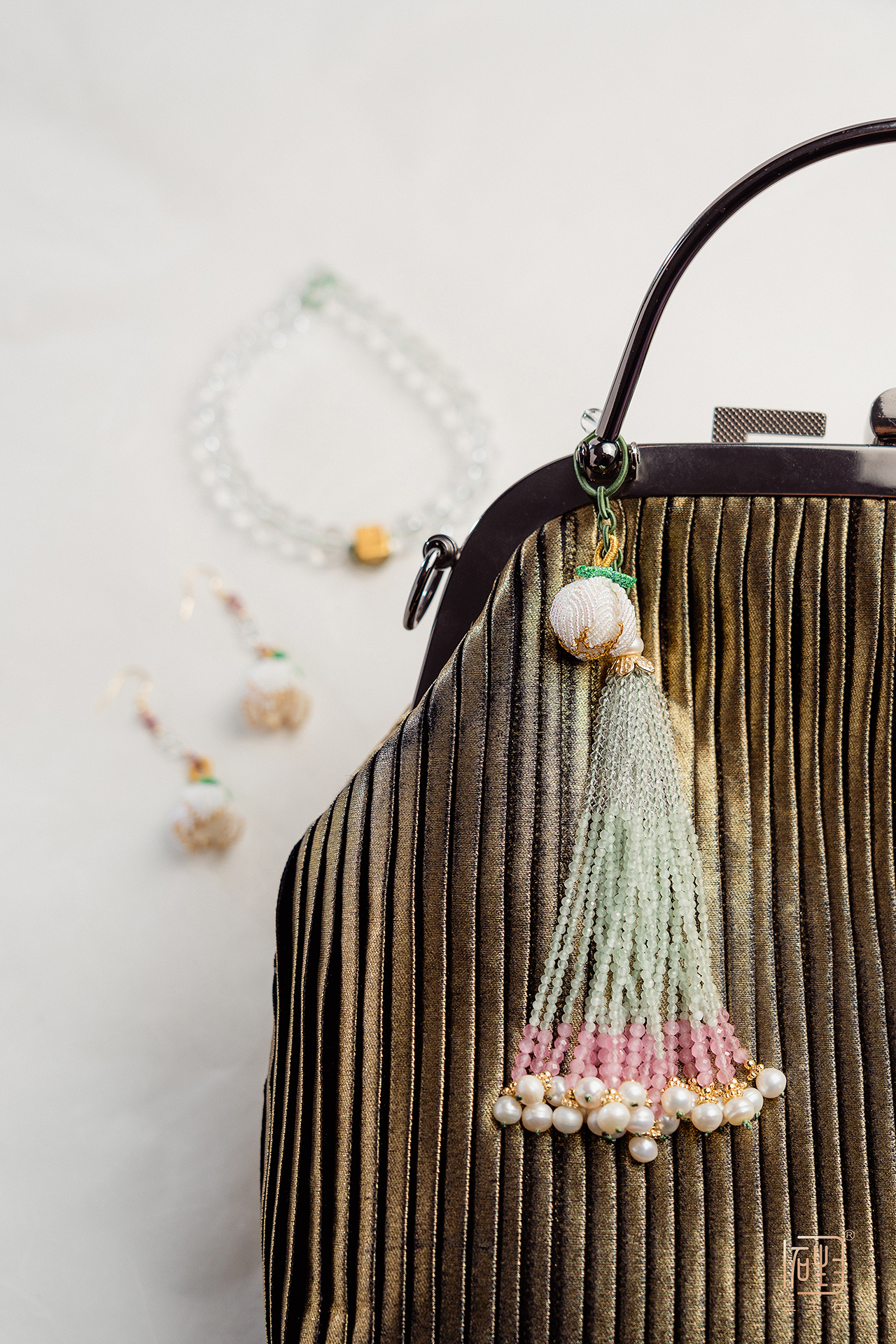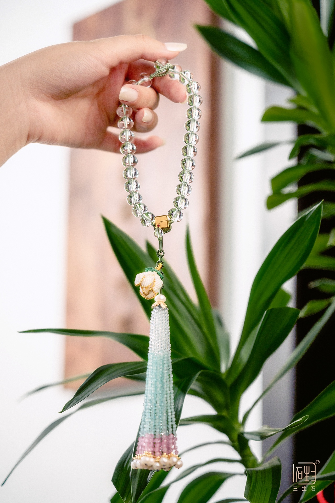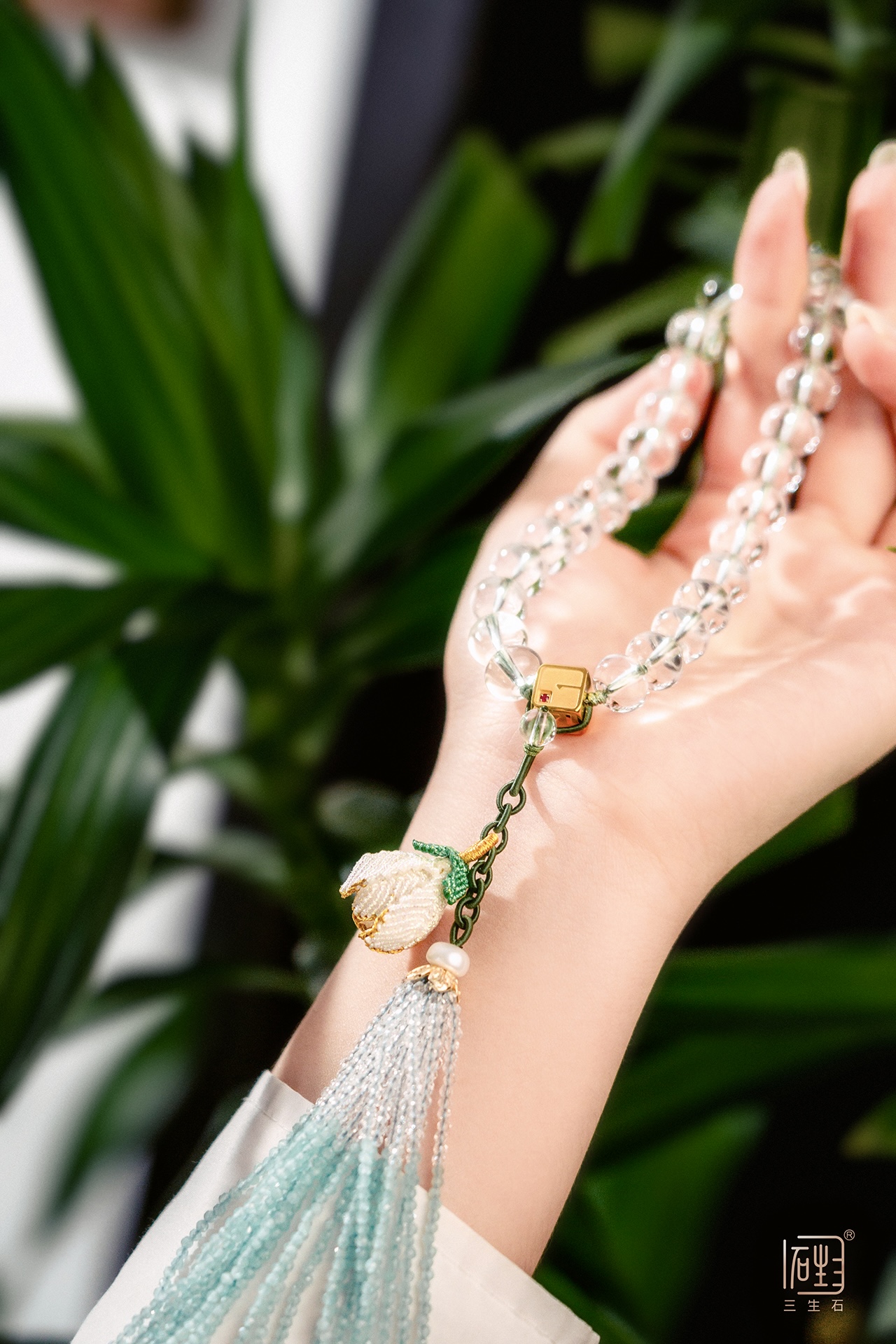 流苏部分为天然晶石彩宝,可单独拆卸做挂饰