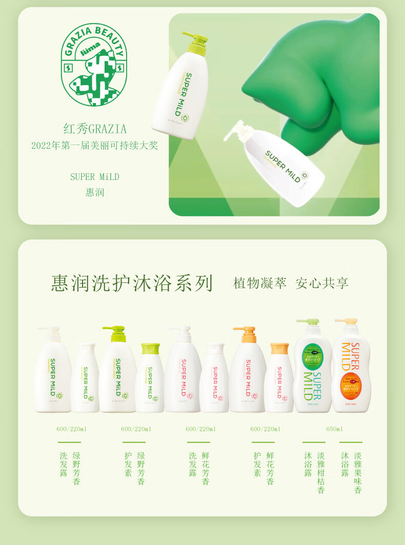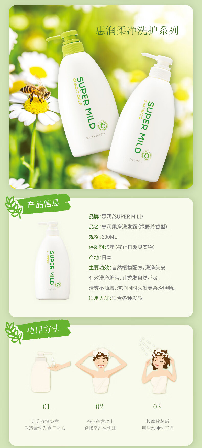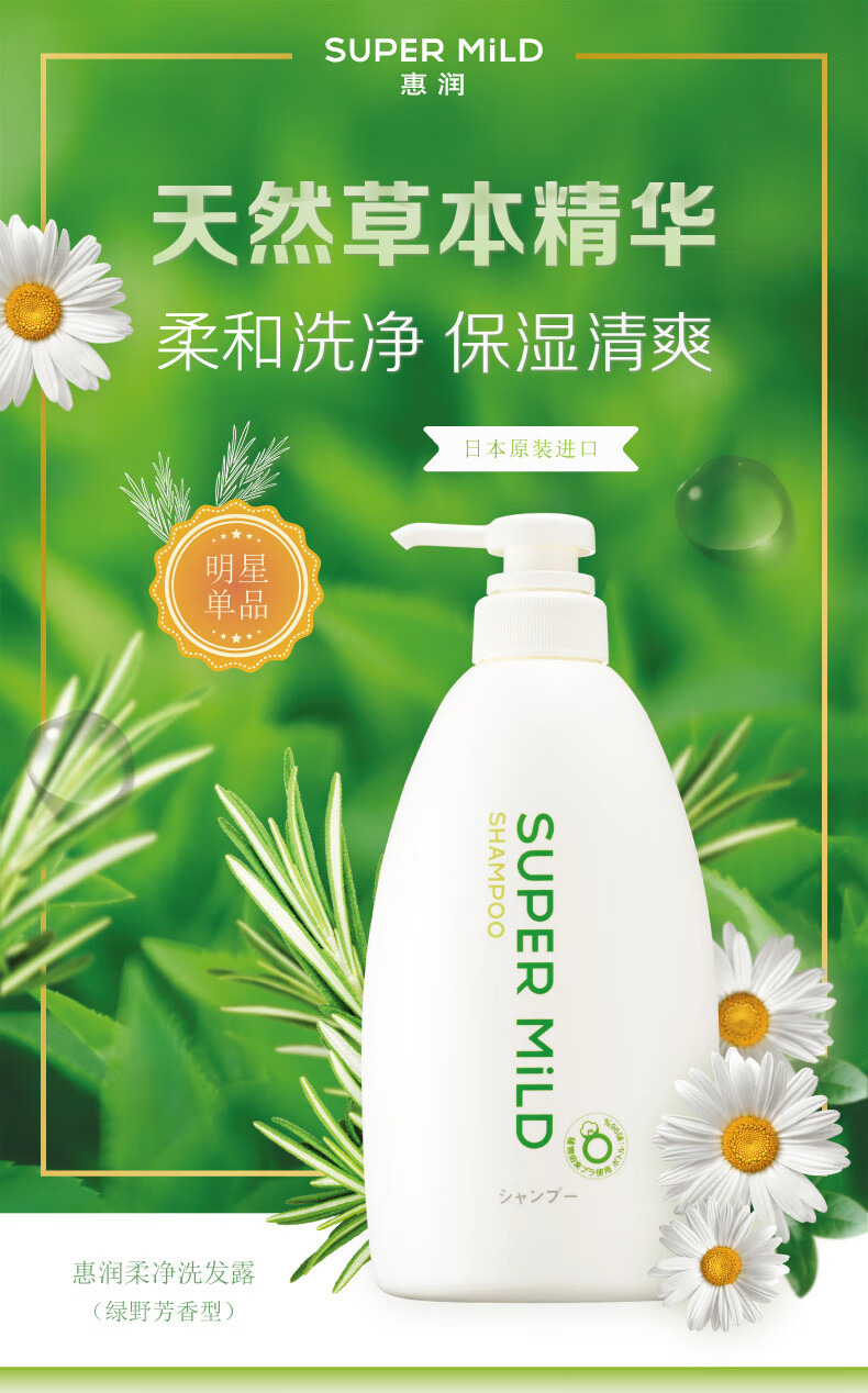 惠润(SUPER MiLD)洗发水绿野香氛柔顺洗发露600ml草本配方洗头膏蓬松洗发乳
