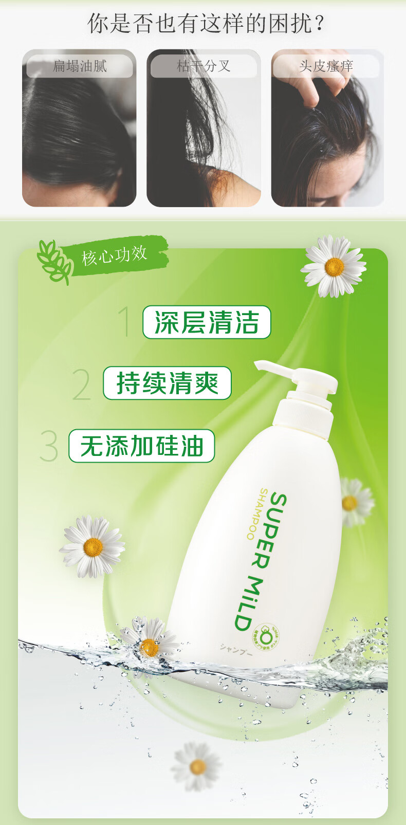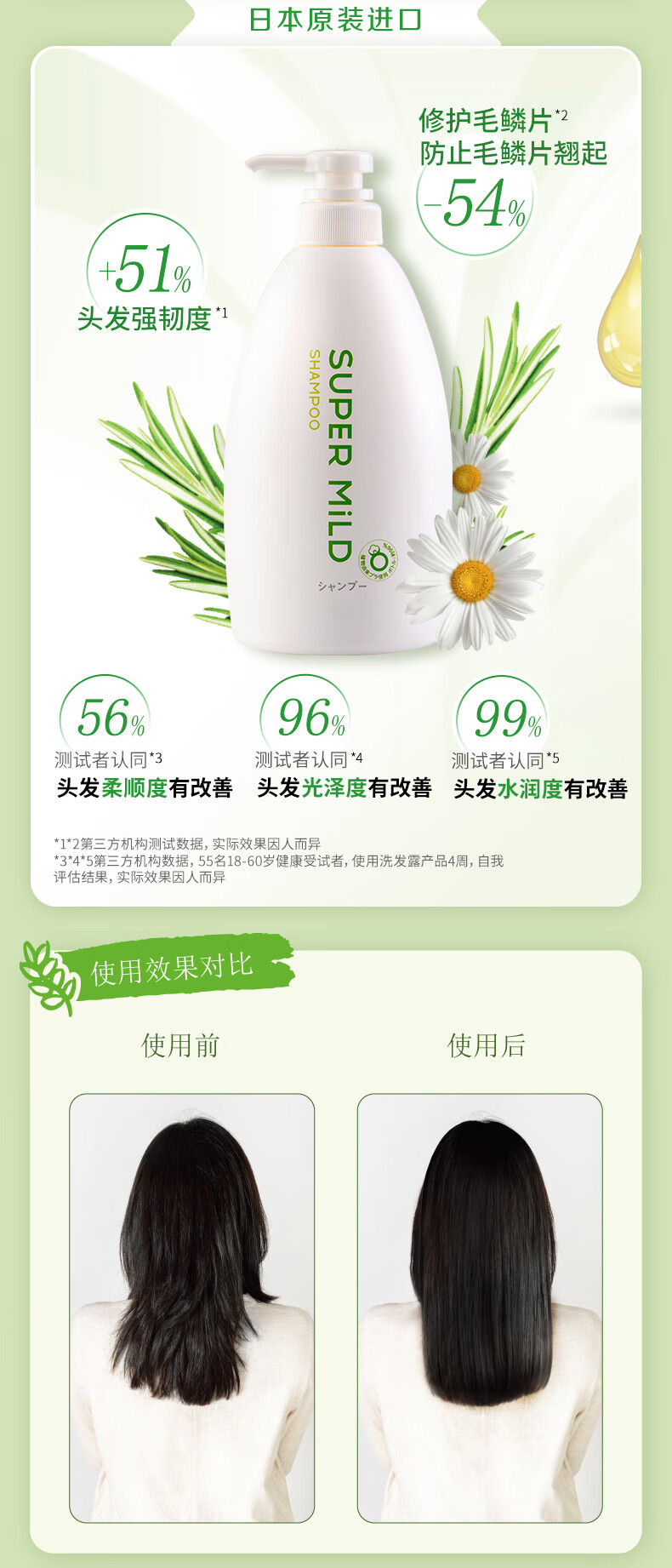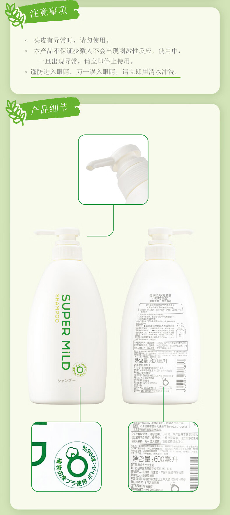 惠润(SUPER MiLD)洗发水绿野香氛柔顺洗发露600ml草本配方洗头膏蓬松洗发乳