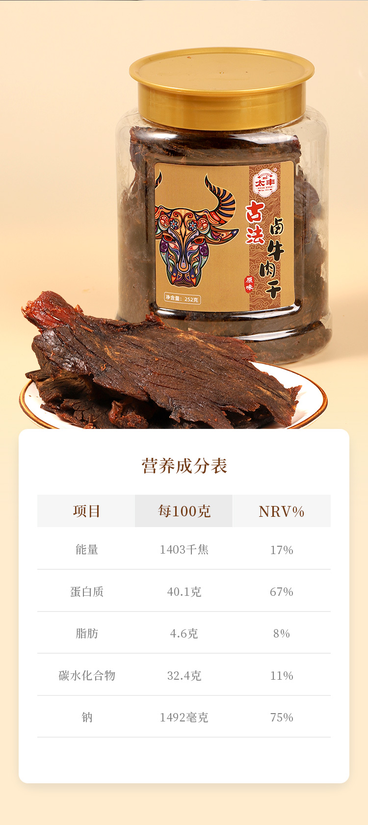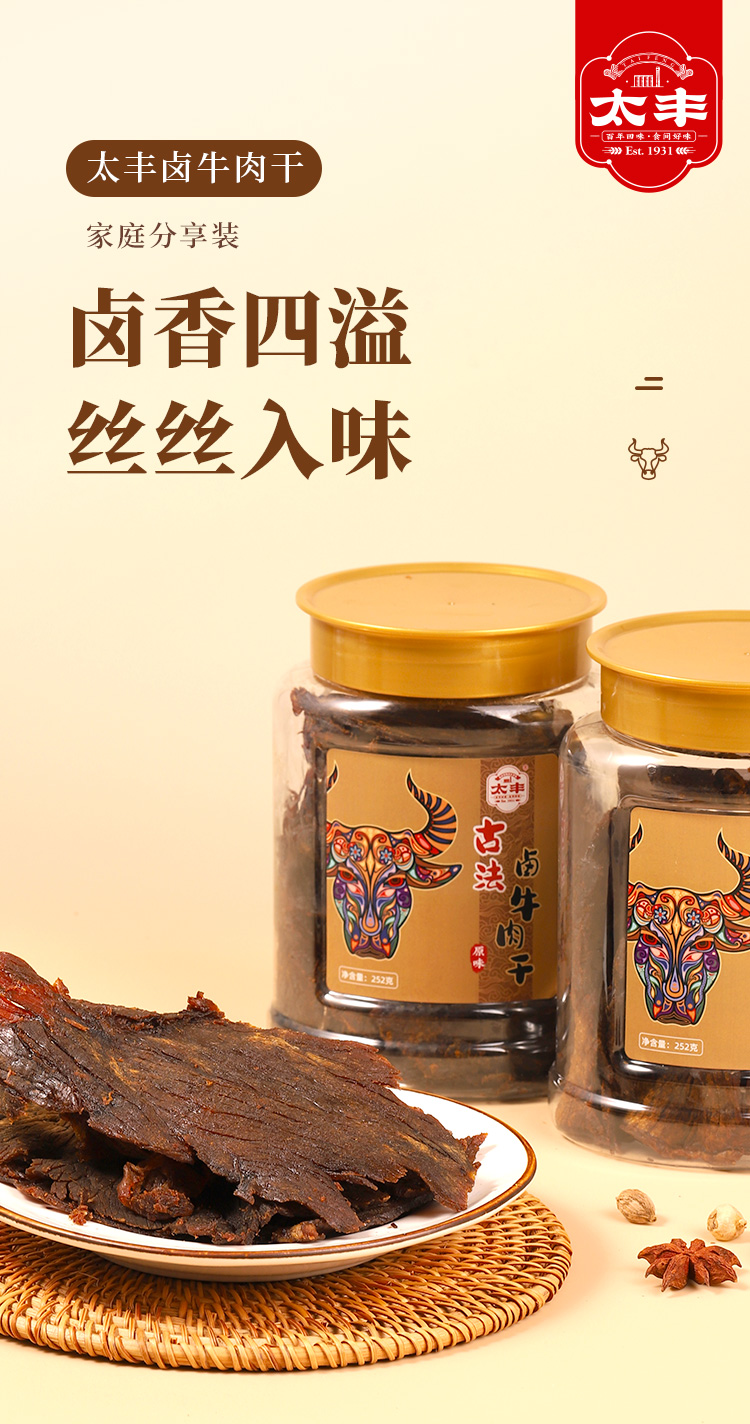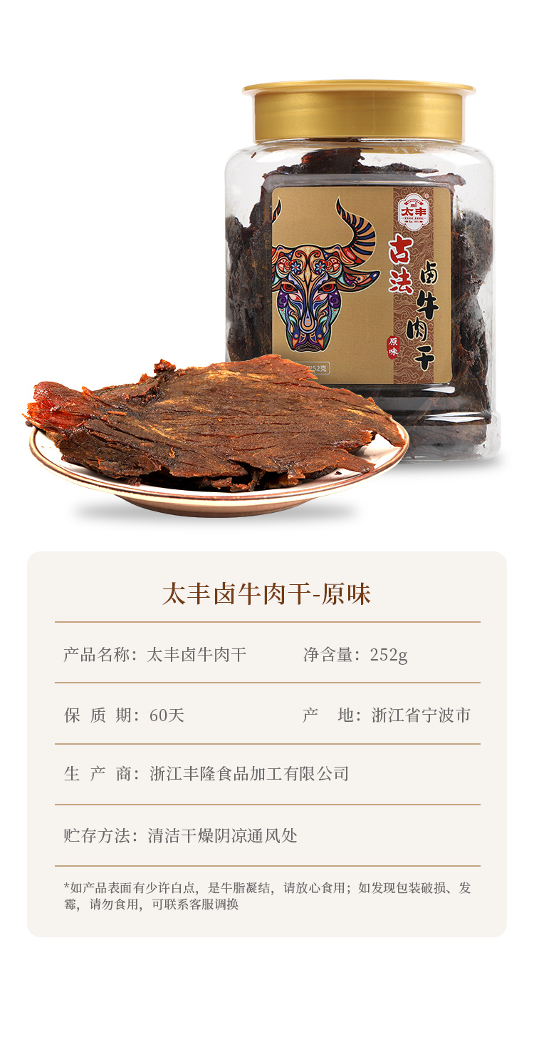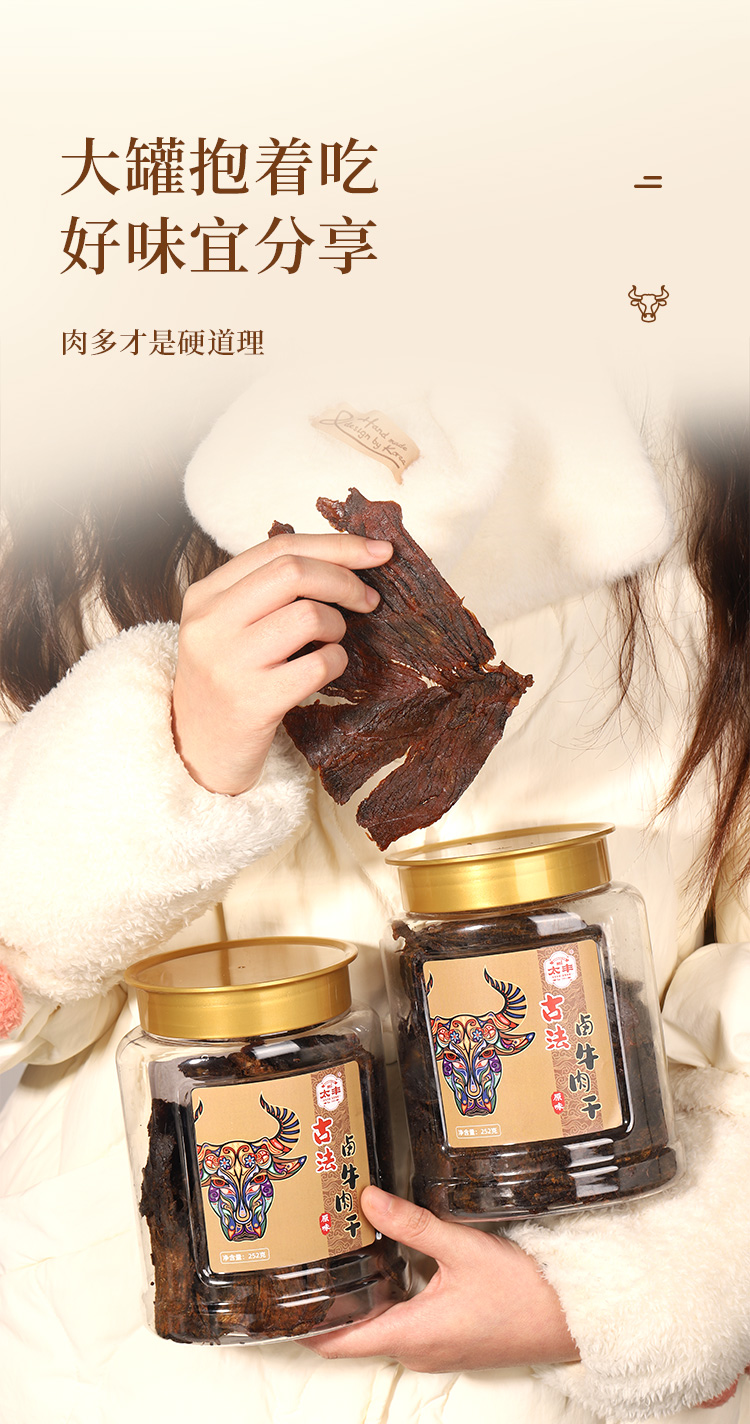 太丰食品 罐装牛肉干252g 手撕古法卤味牛肉干即食