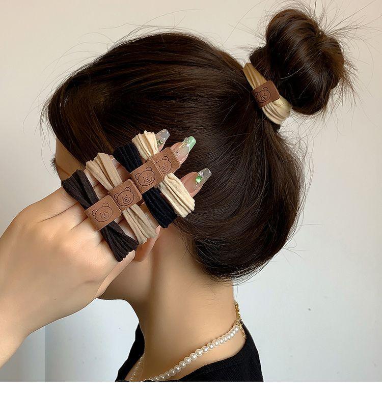 「9.9到手10条装!数色可选」简约高弹力无接缝小熊头绳皮筋女粗款发圈耐用高马尾发绳皮套时尚饰品