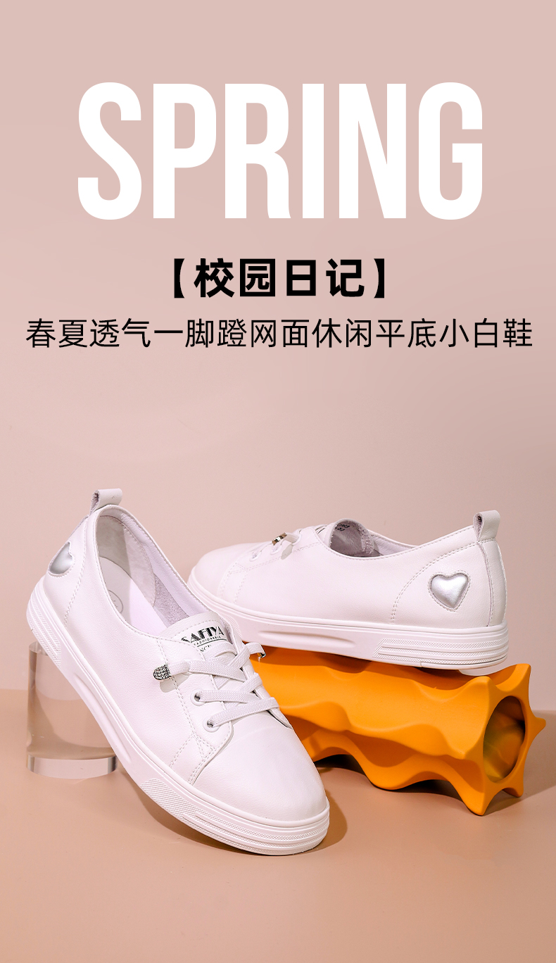 Safiya/索菲娅 春夏透气一脚蹬2023年春季新款网面休闲平底小白鞋 SF31112063