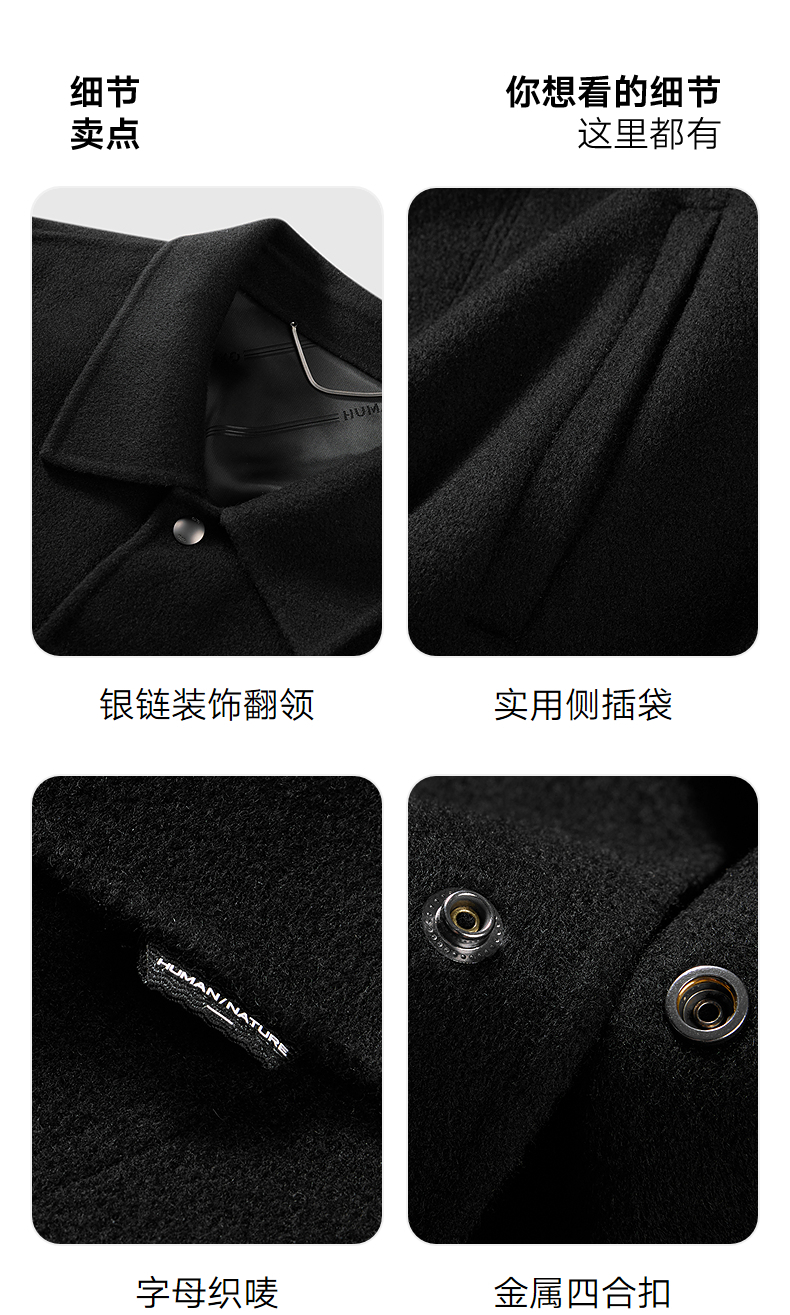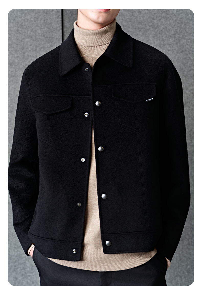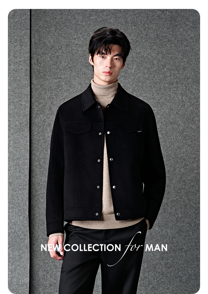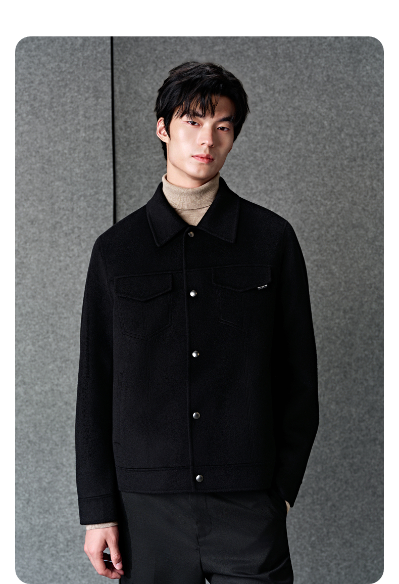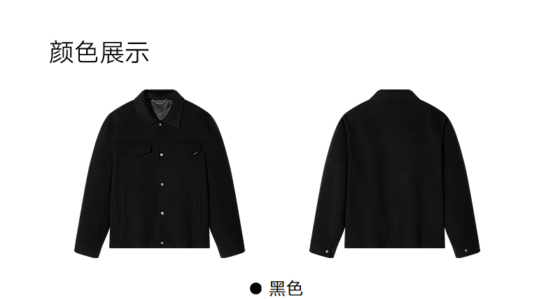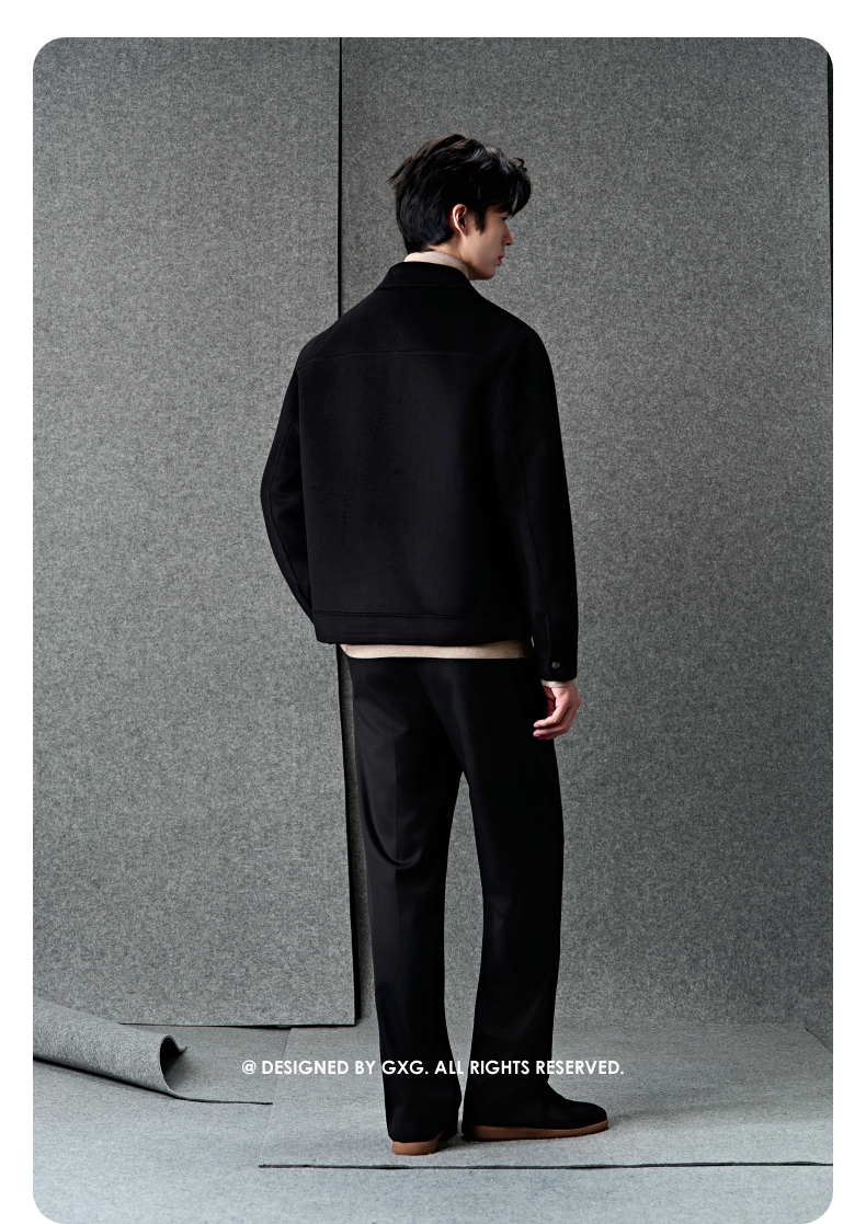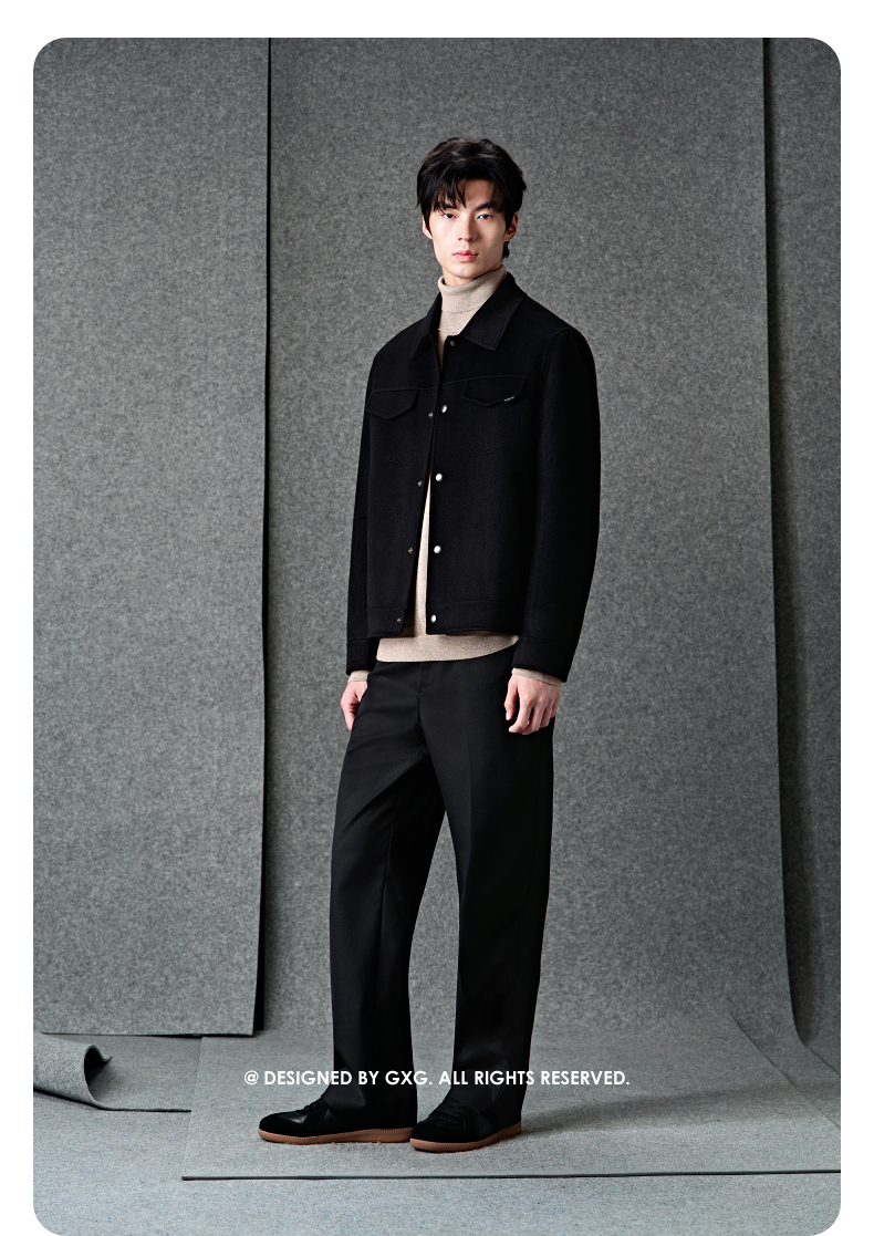 GXG男装 黑色全羊毛通勤短款大衣 冬季热卖大衣G24X064023