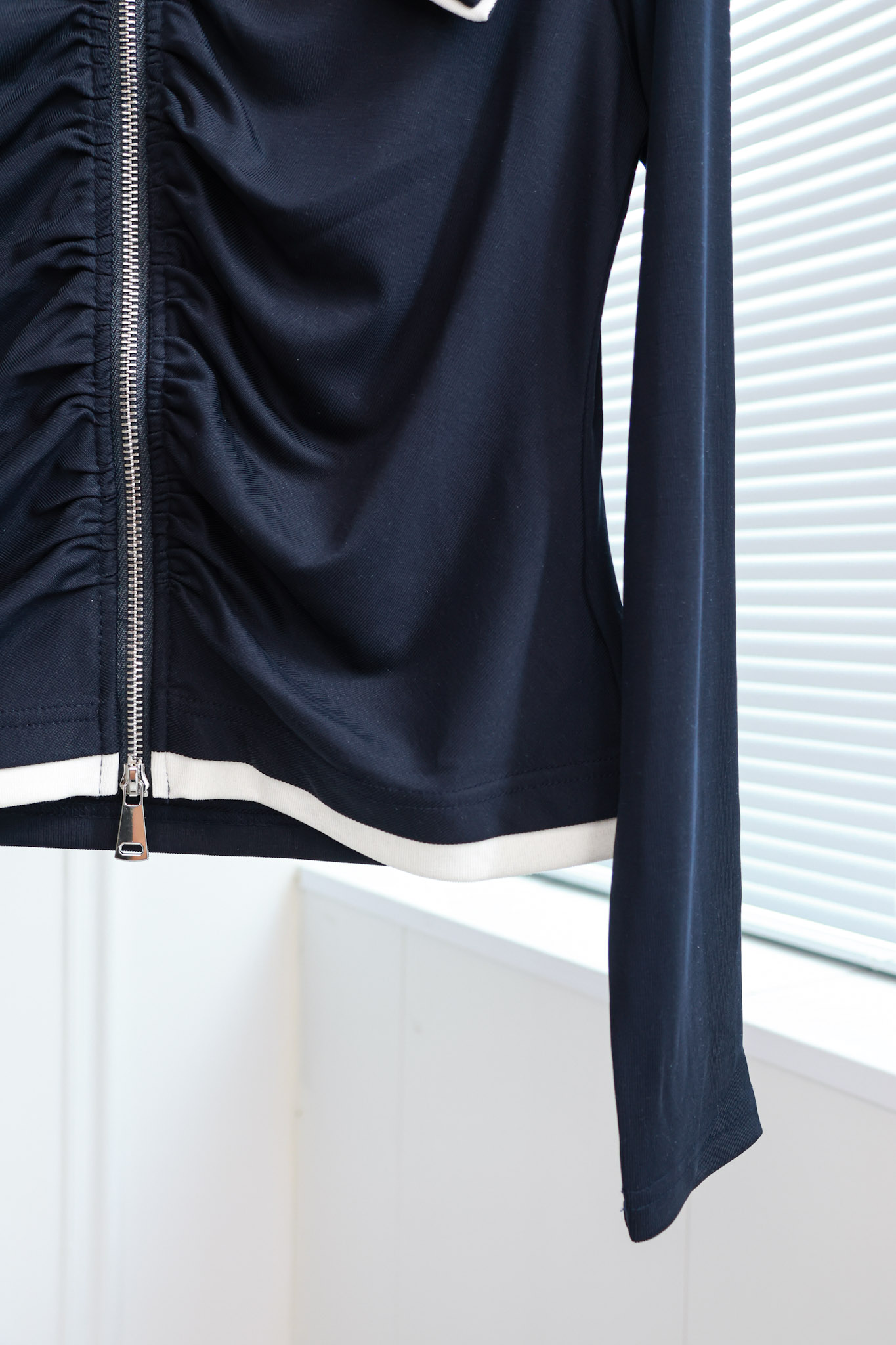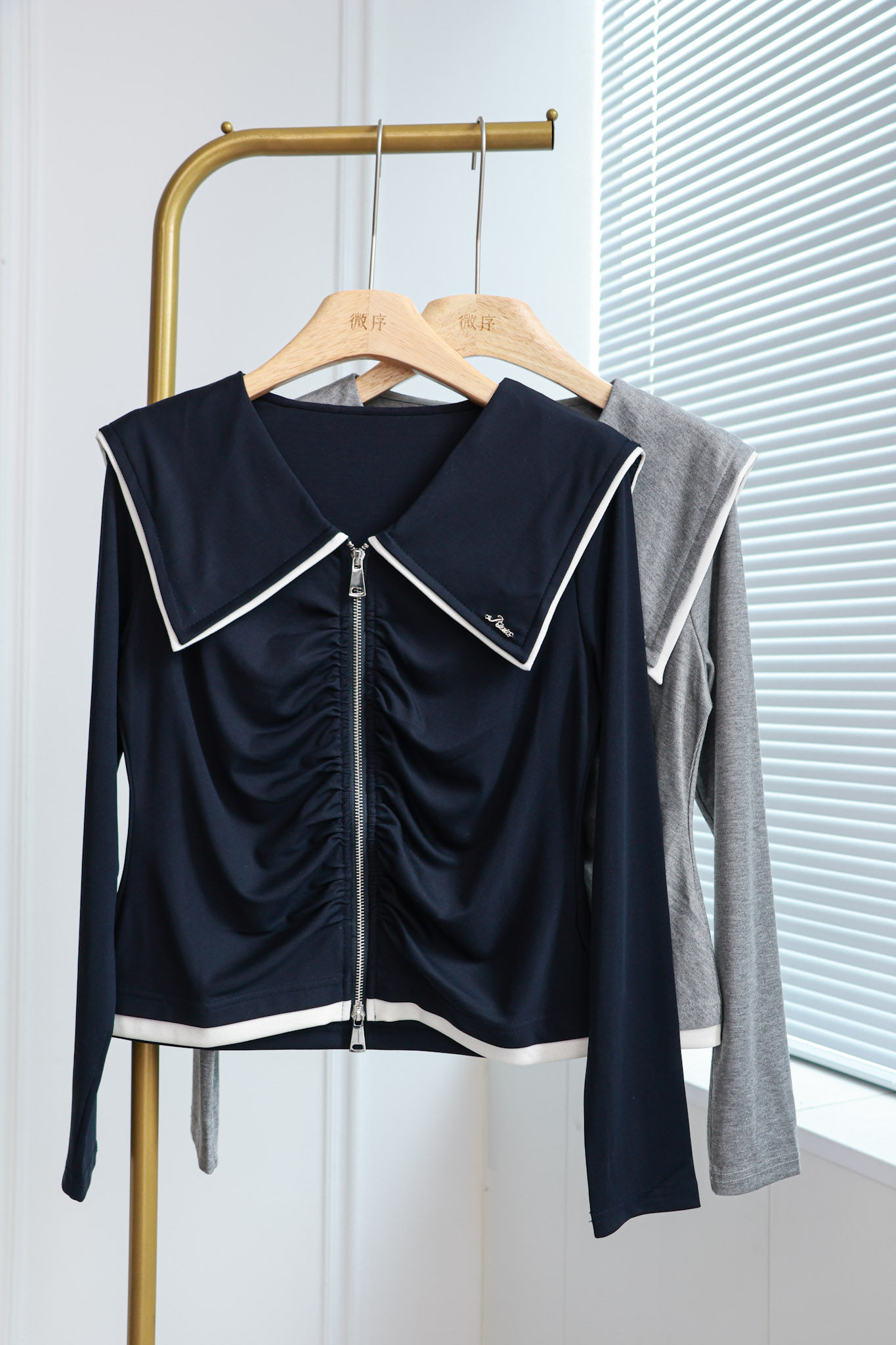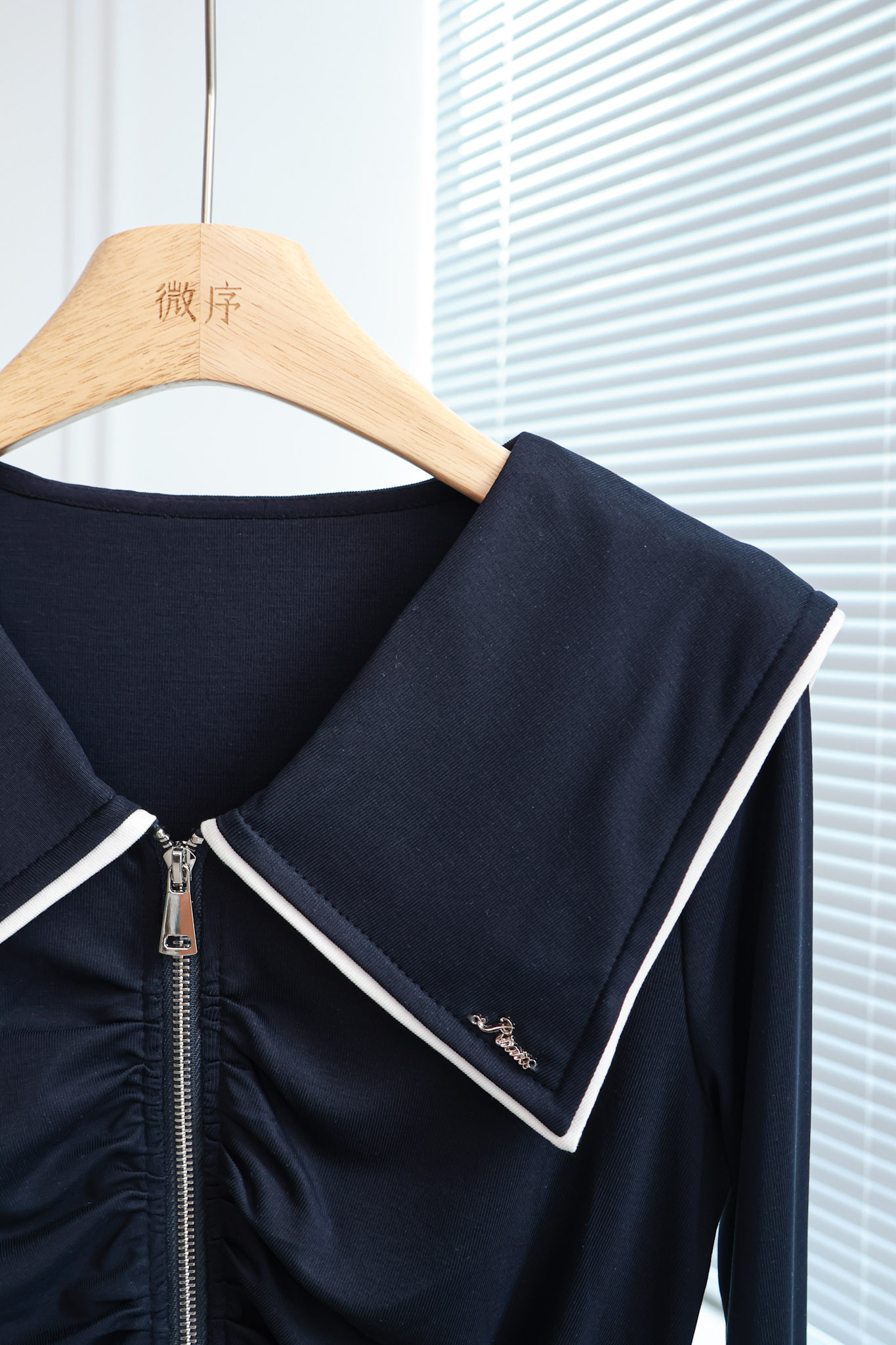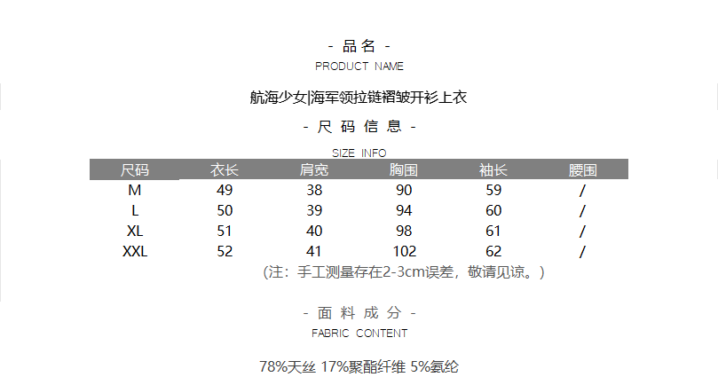 航海少女|海军领拉链褶皱开衫上衣