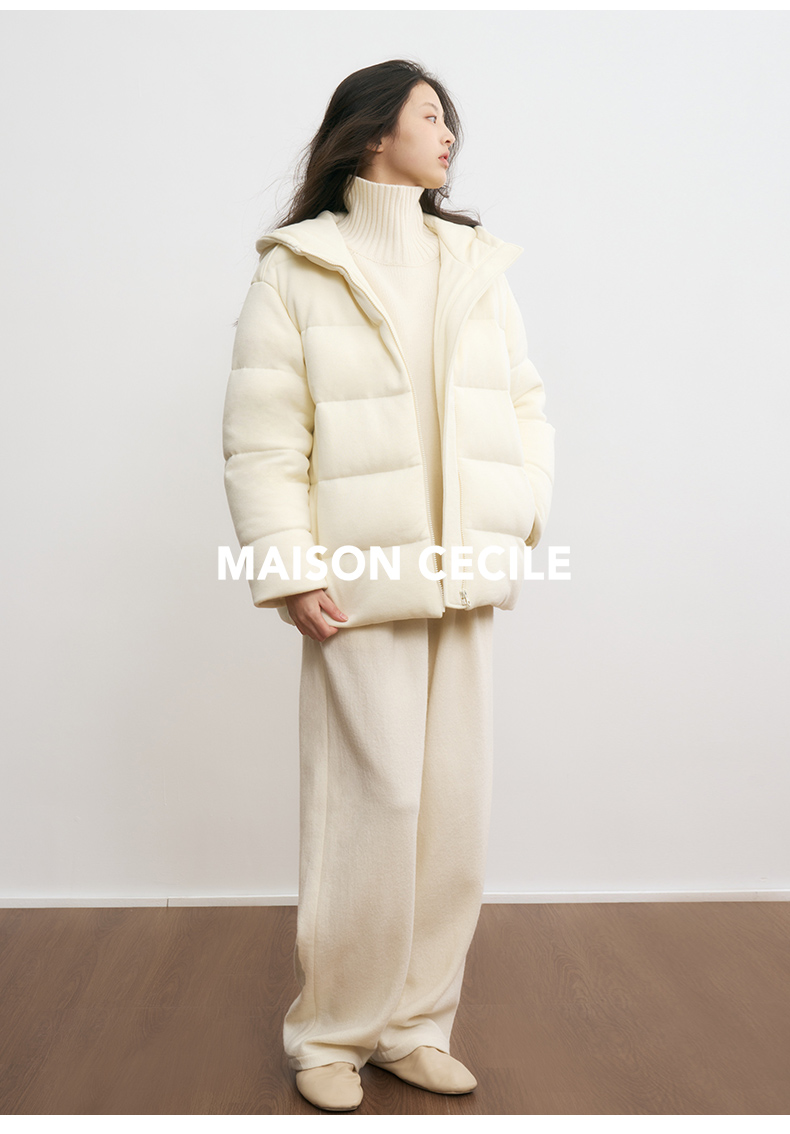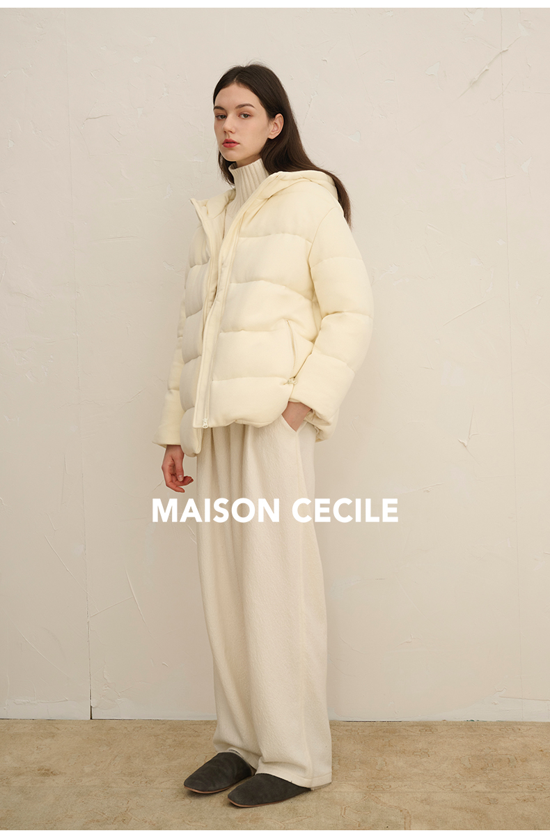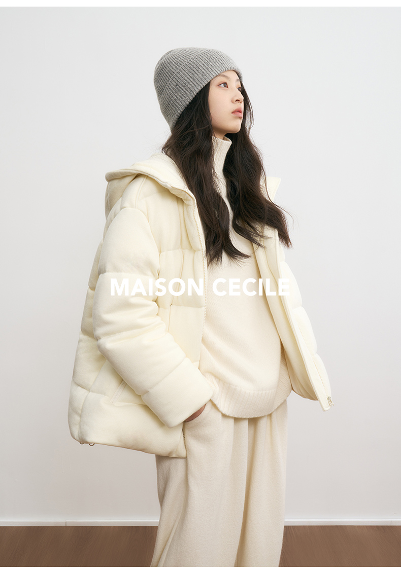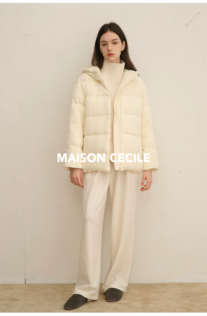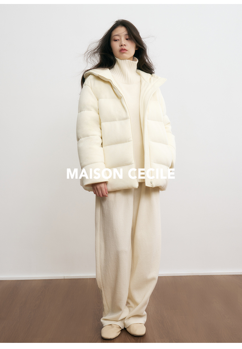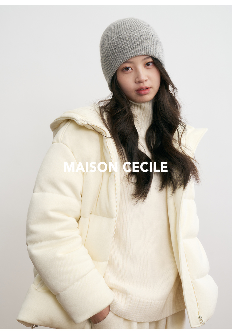 MAISON CECILE羊毛针织白鹅绒面包厚实戴帽羽绒服