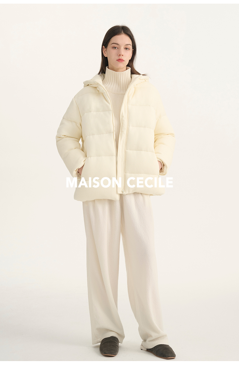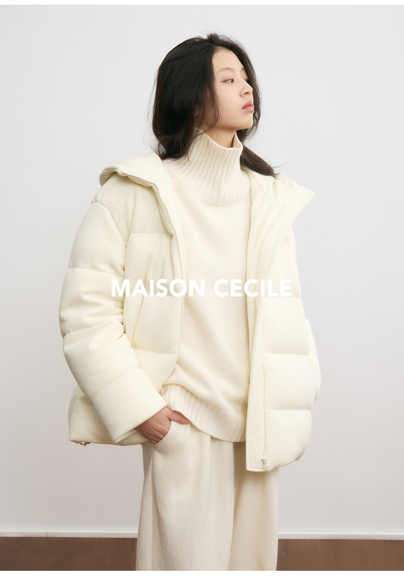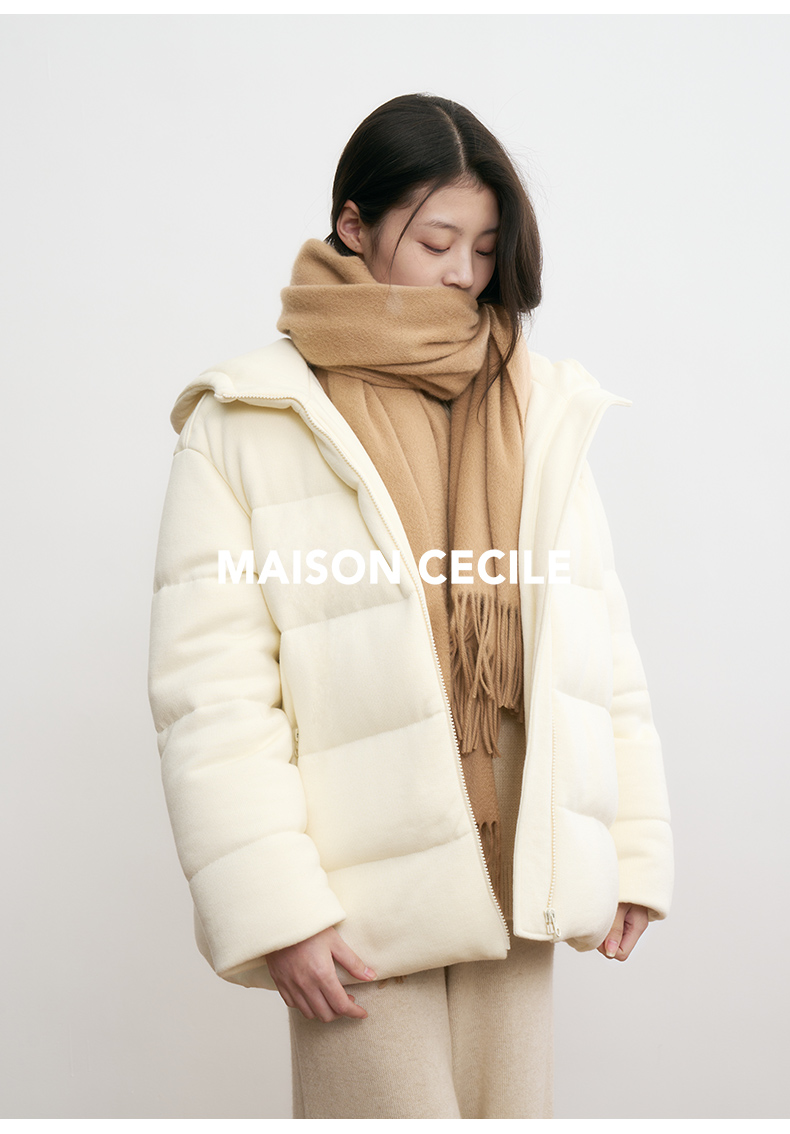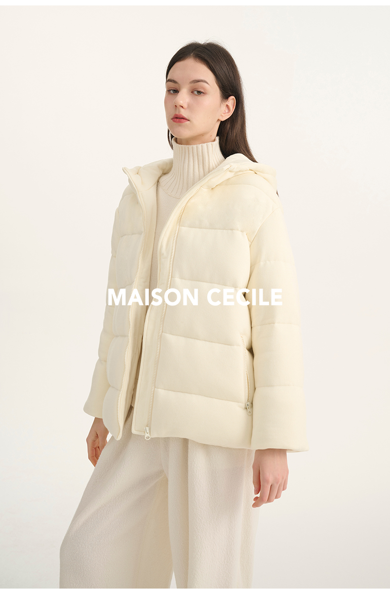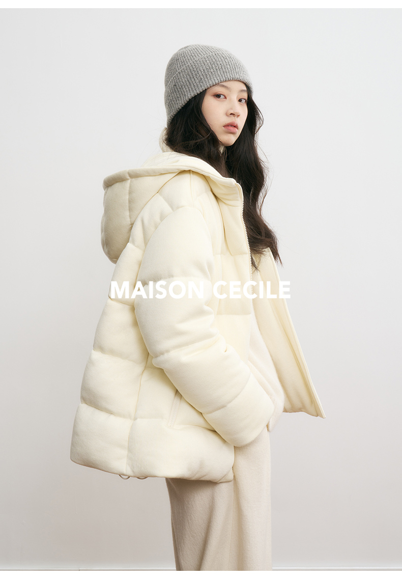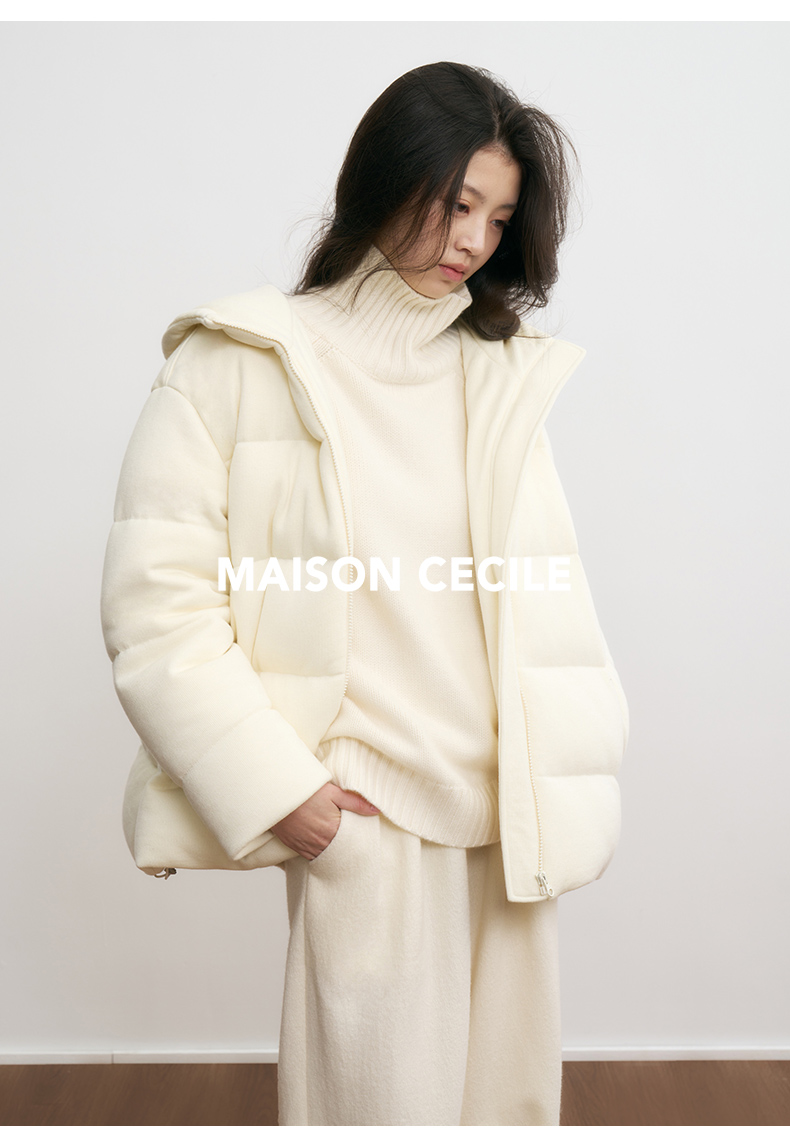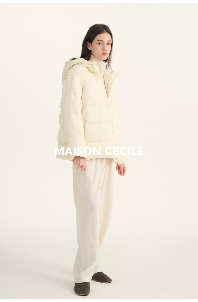 MAISON CECILE羊毛针织白鹅绒面包厚实戴帽羽绒服
