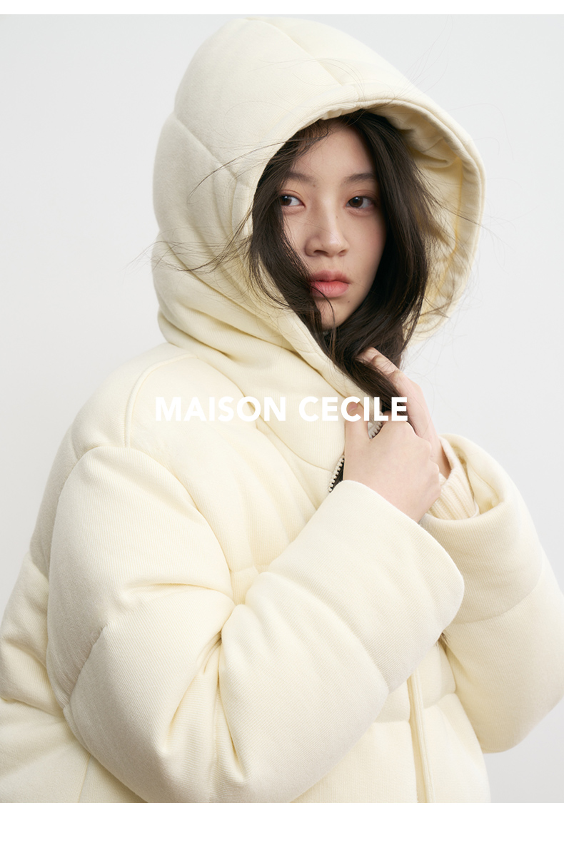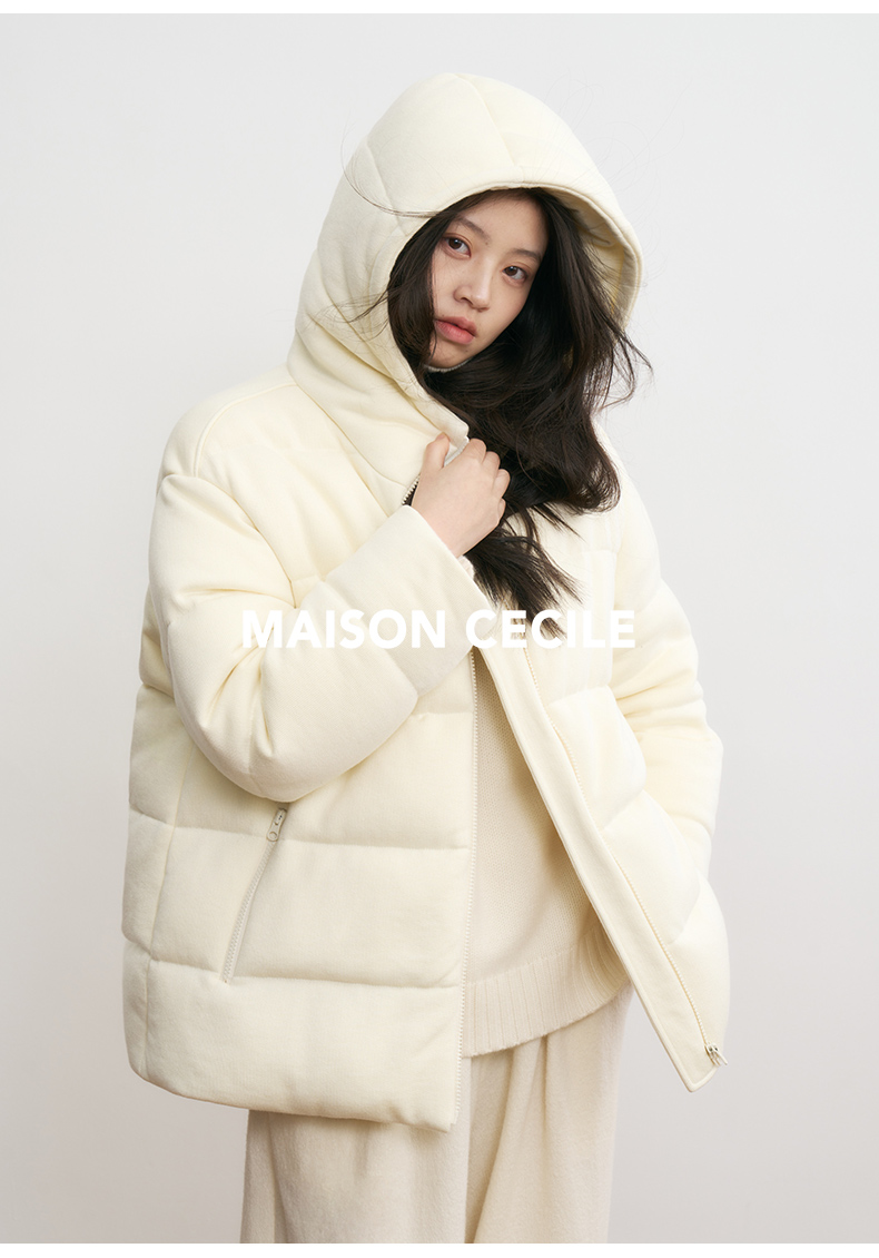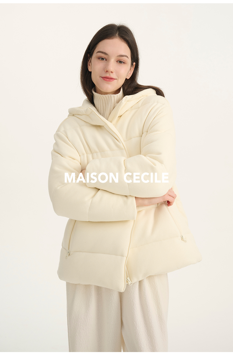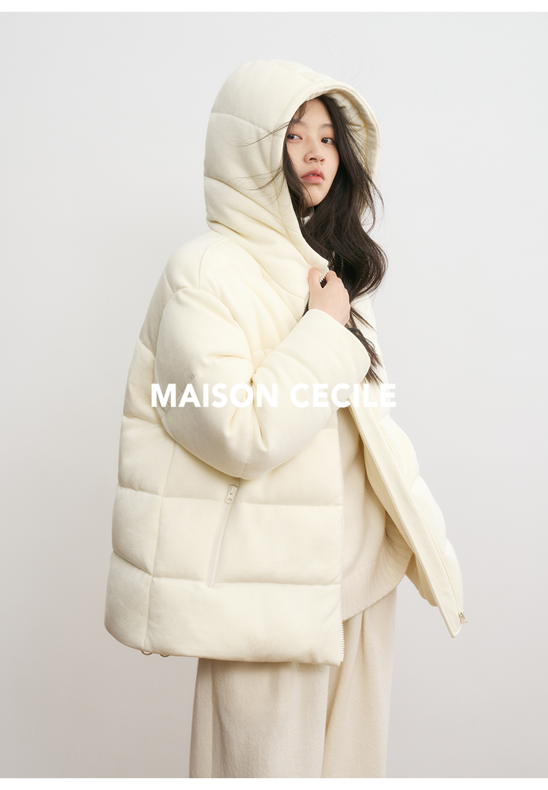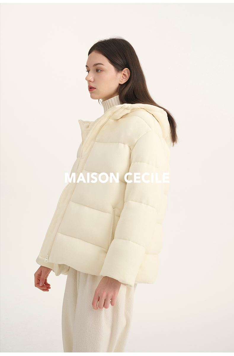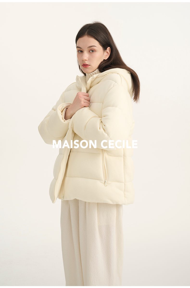 MAISON CECILE羊毛针织白鹅绒面包厚实戴帽羽绒服