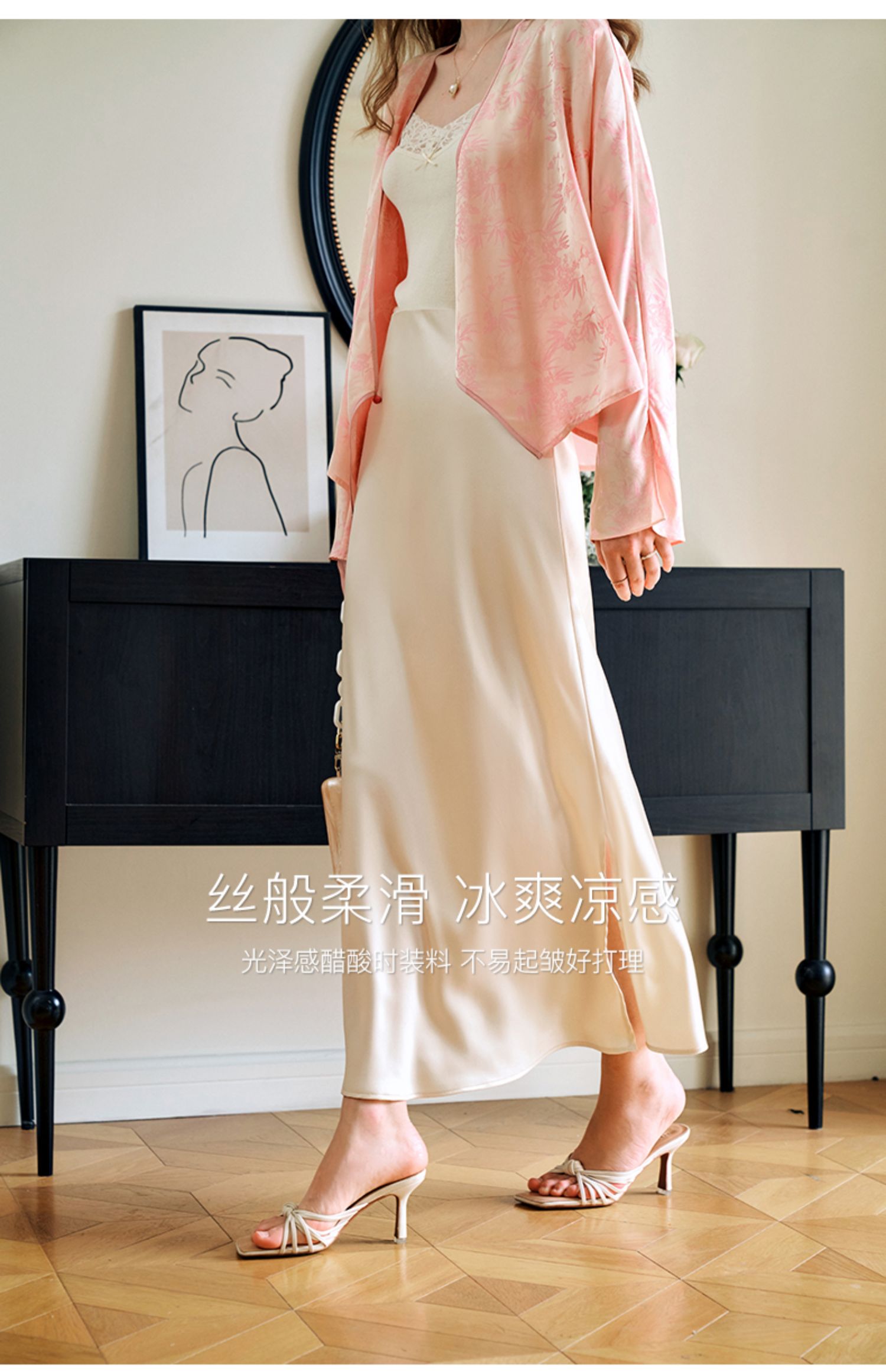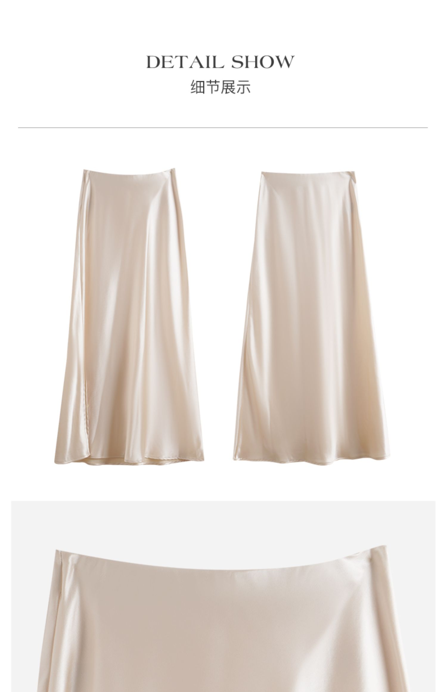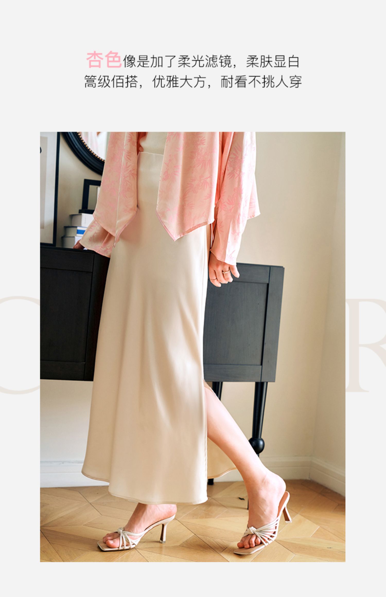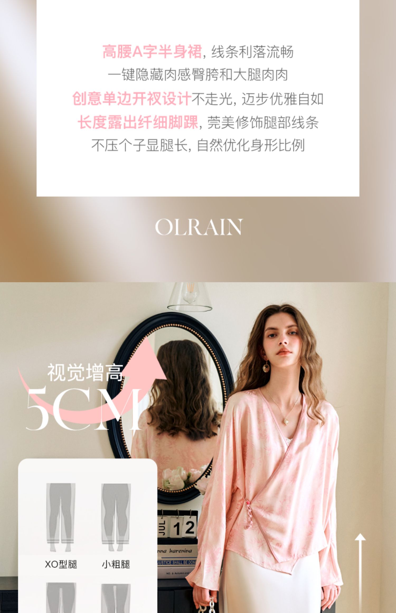 OLrain欧芮儿法式杏色半身裙女夏季2024年新款高腰气质开叉A字裙