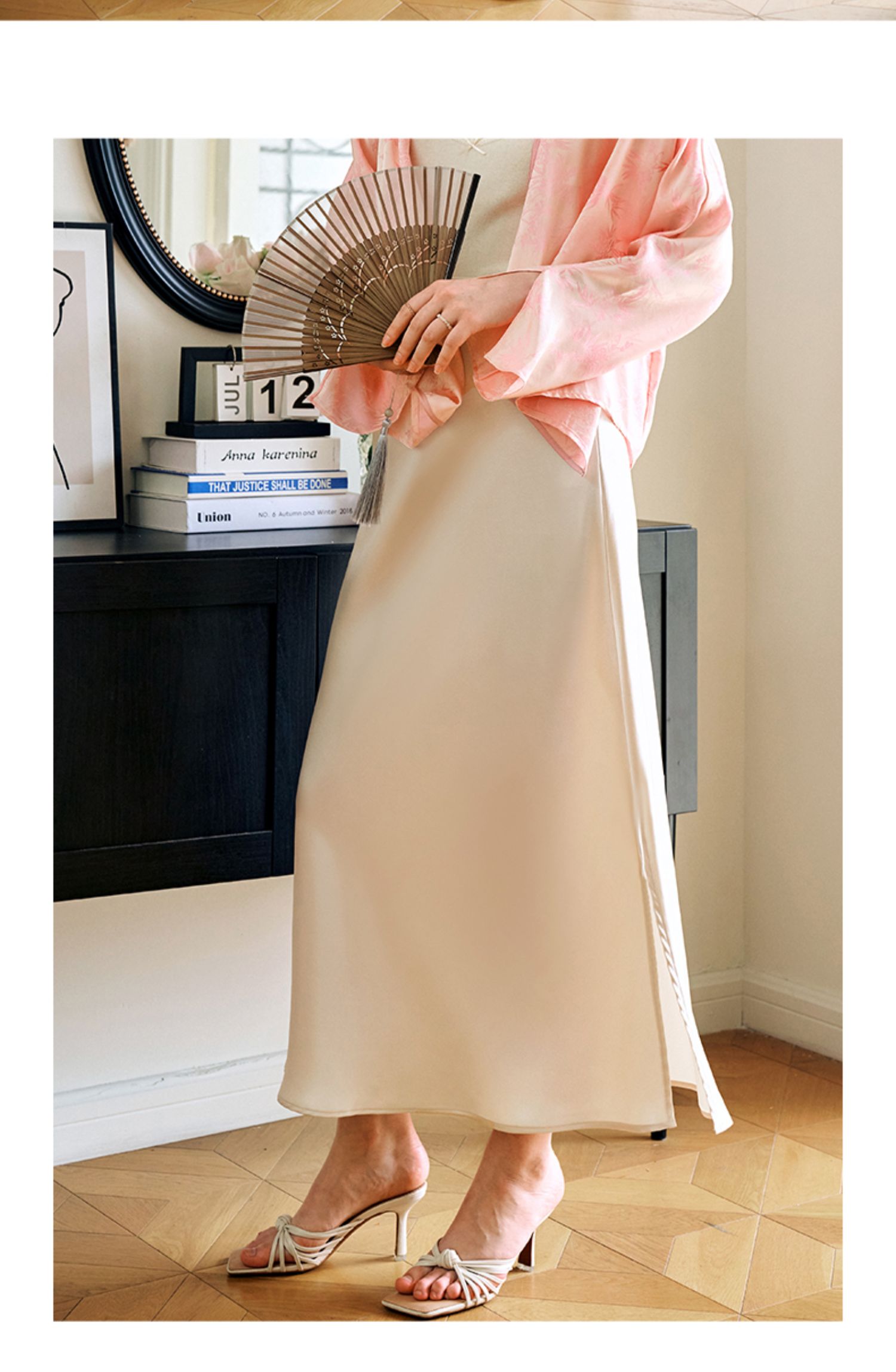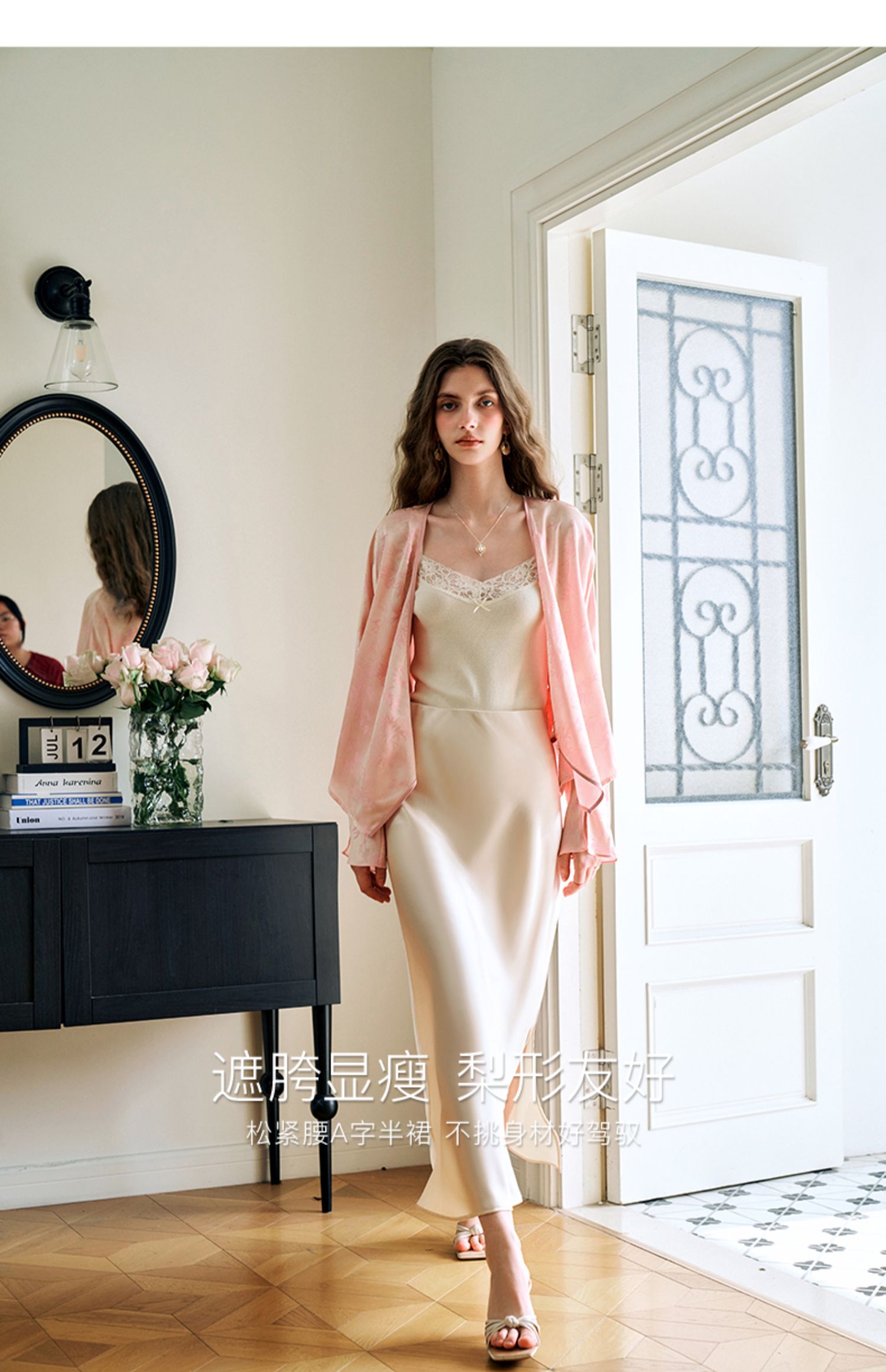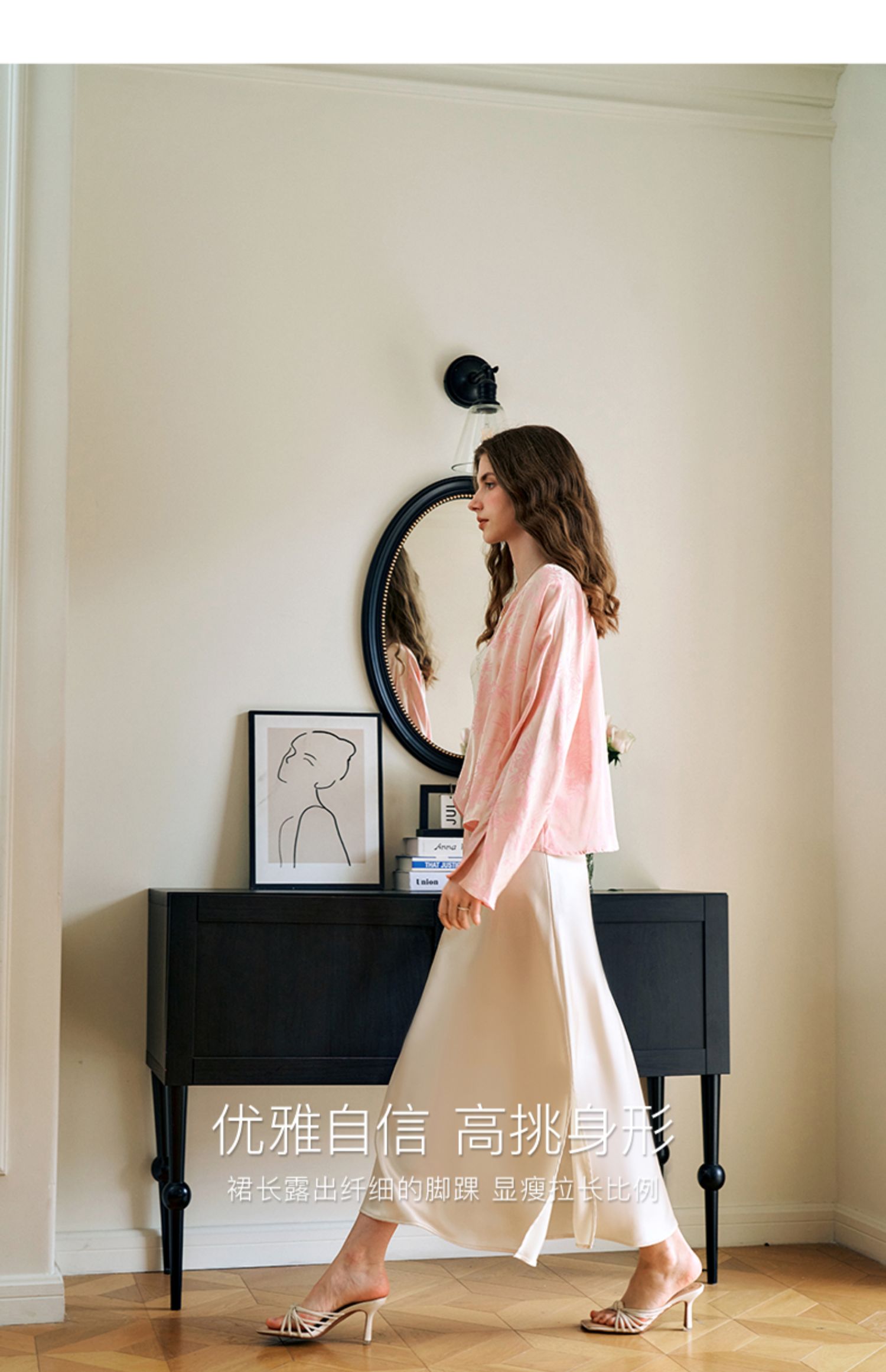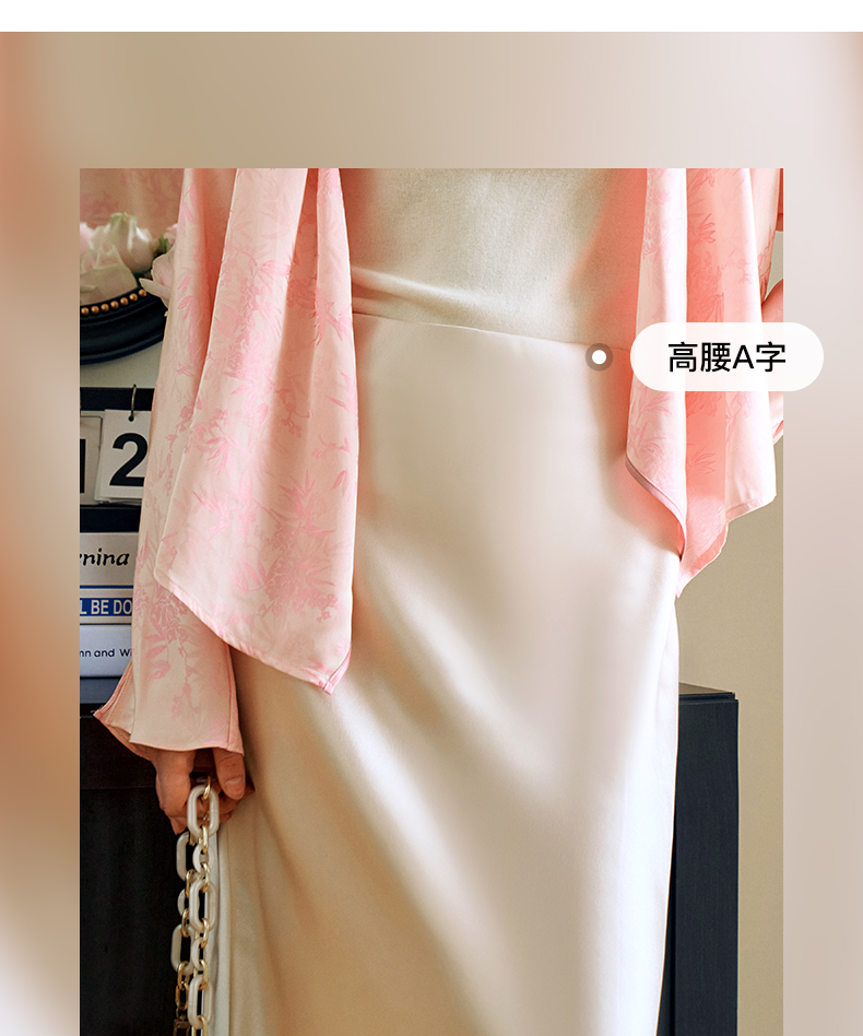 OLrain欧芮儿法式杏色半身裙女夏季2024年新款高腰气质开叉A字裙
