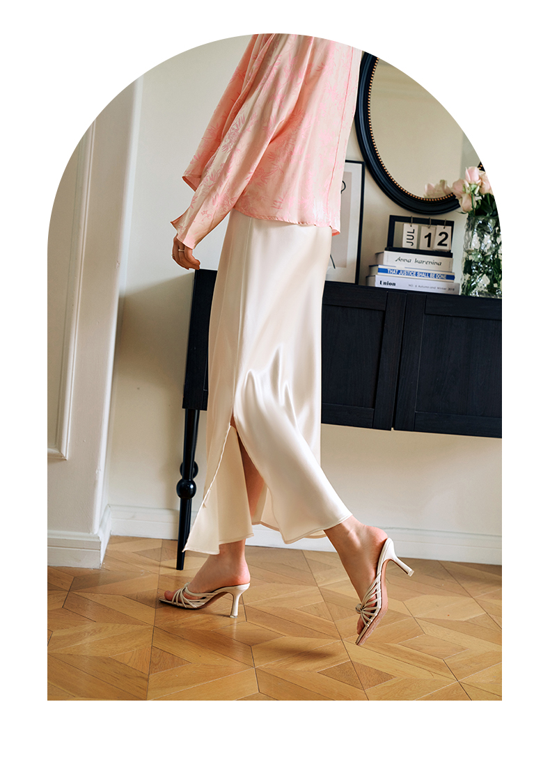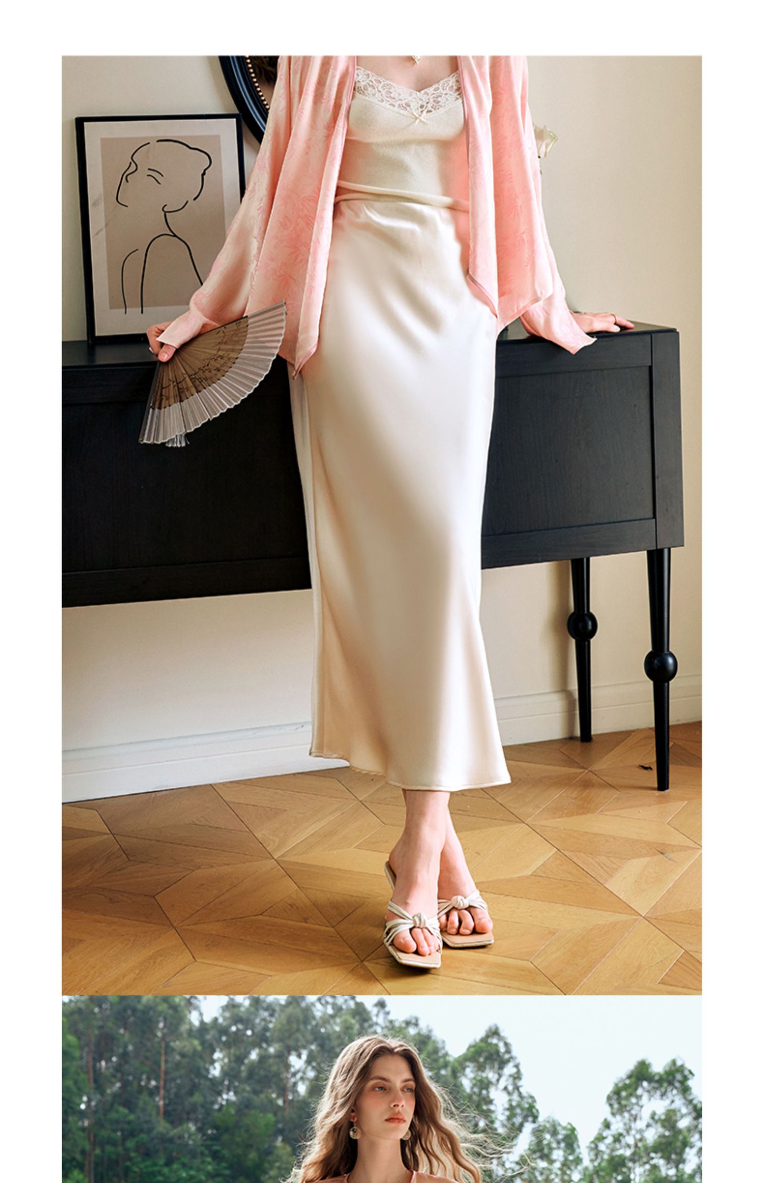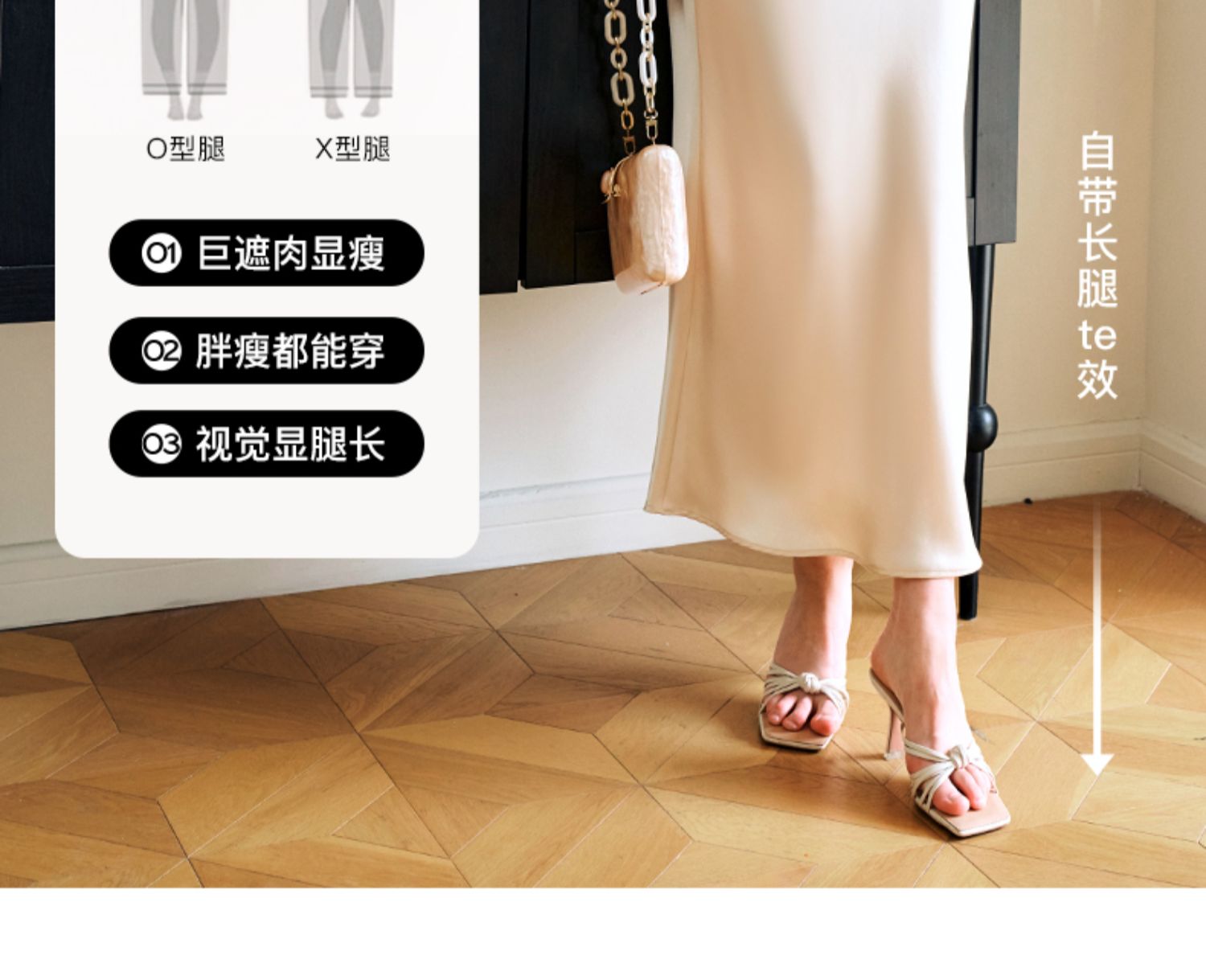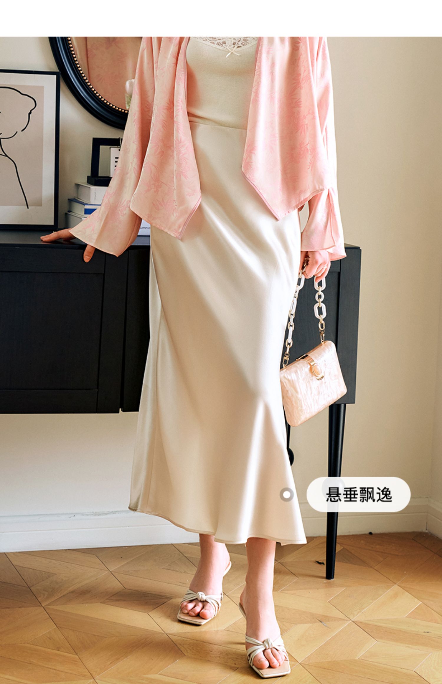 OLrain欧芮儿法式杏色半身裙女夏季2024年新款高腰气质开叉A字裙