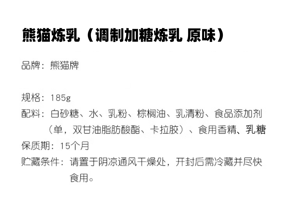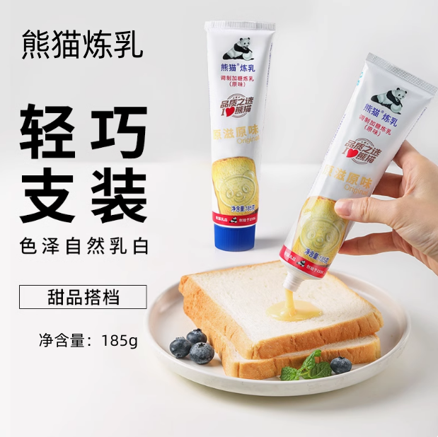 熊猫支装炼乳 185g 蛋挞咖啡奶茶原料 调制加糖炼乳炼奶原味