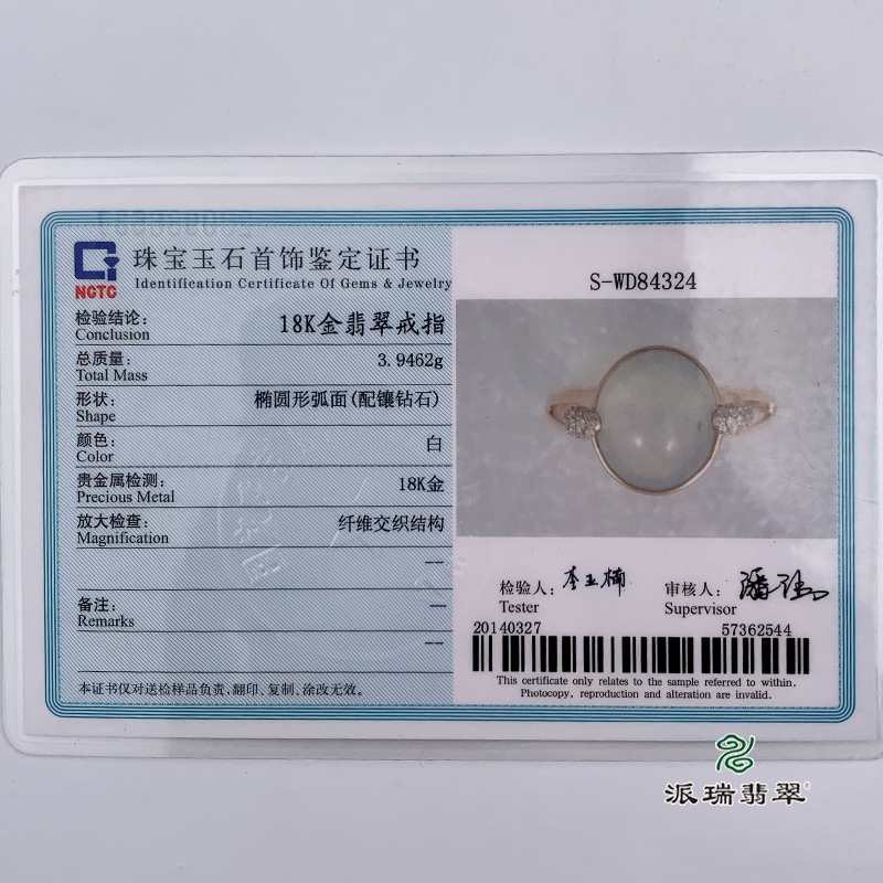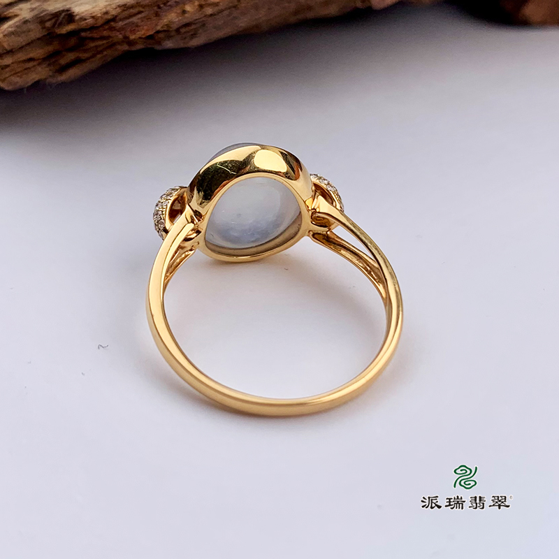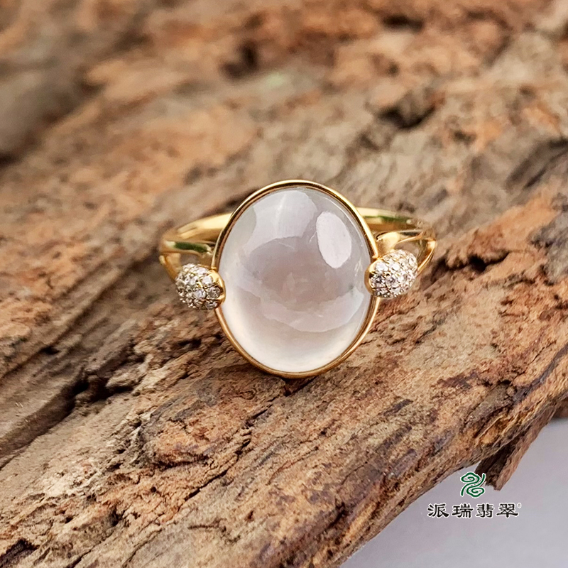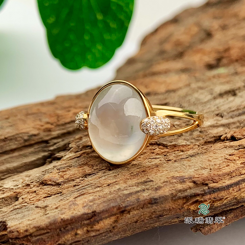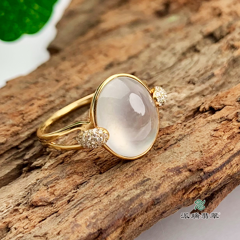 派瑞翡翠 18k金翡翠戒指 冰种 无色