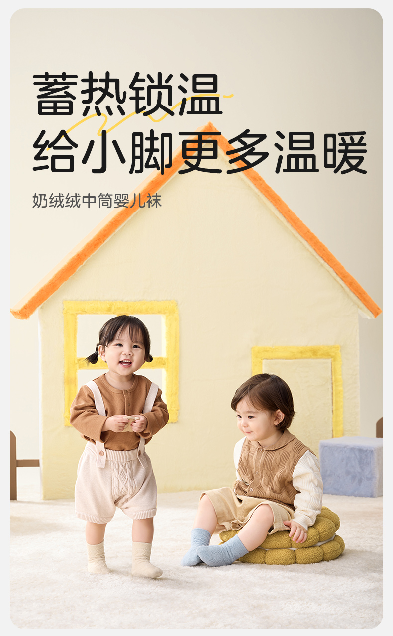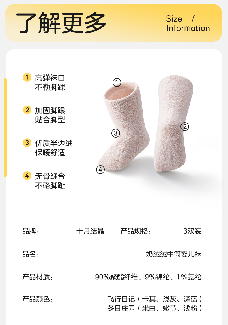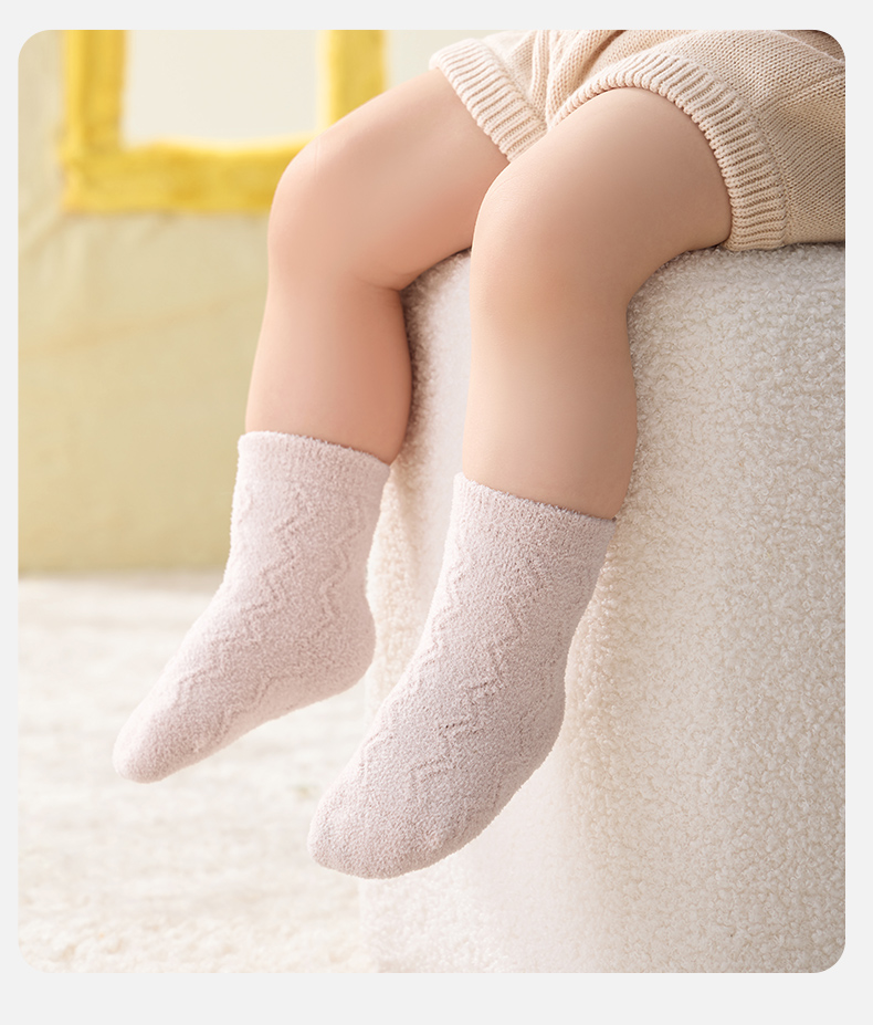 婴儿秋冬款加厚牛奶绒地板袜子 赠【婴儿洗衣皂3块】