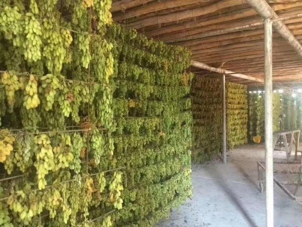 她以最常见的葡萄干举例:“在吐鲁番,葡萄干不是晒出来的,是‘吹’出来的。”当地特有的镂空荫房就是自然的“风干车间”,成熟的葡萄整串悬挂其中,依靠盆地干热风缓慢“吹干”。这种方法避免了暴晒导致的色变和营养流失,最大程度保留了色泽与柔软口感。