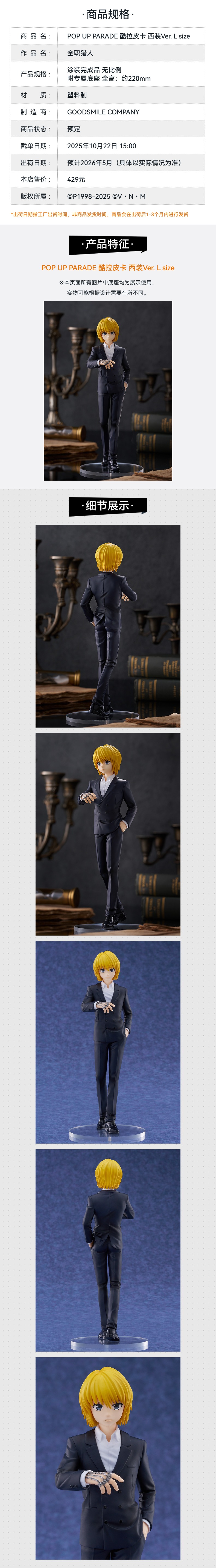 【GSC预售定金】POP UP PARADE 酷拉皮卡 西装Ver. L size