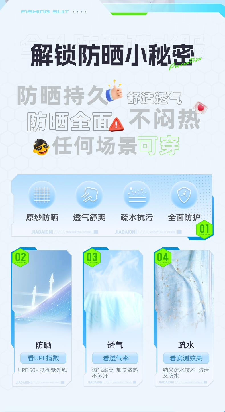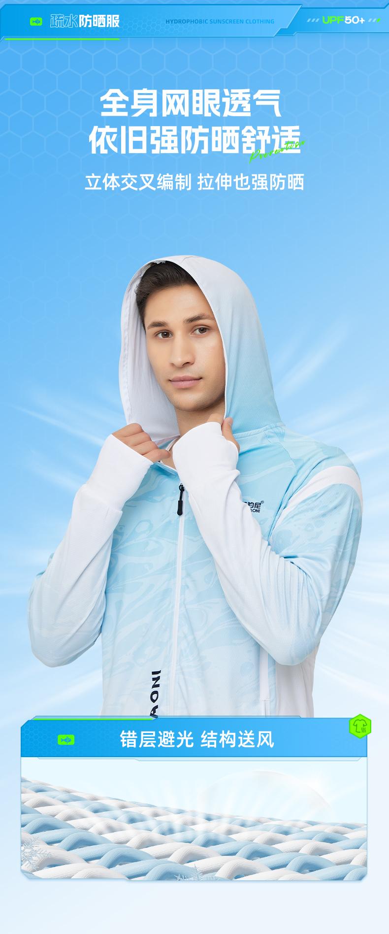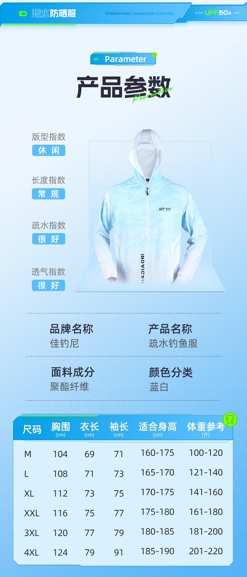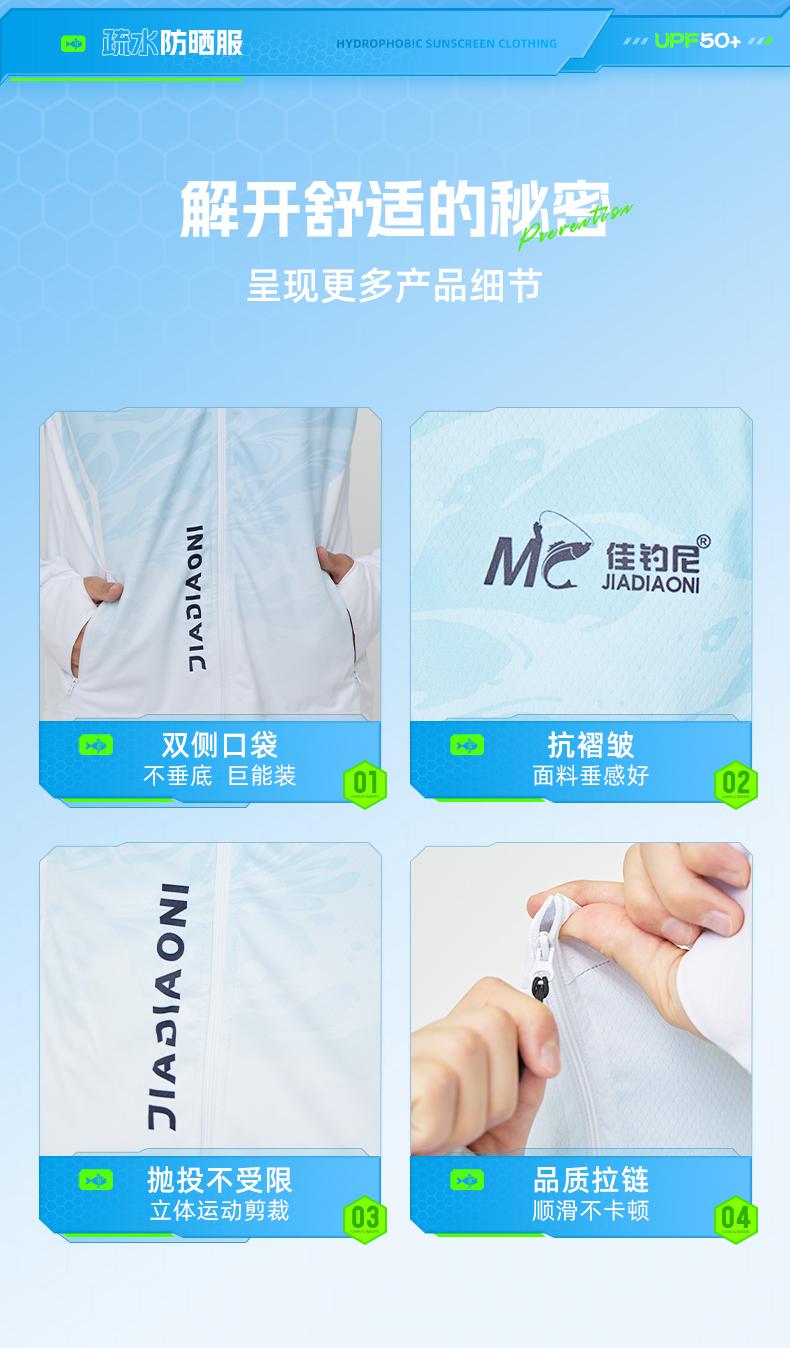 佳钓尼疏水钓鱼服透气薄款连帽防水轻薄防紫外线垂钓服防蚊男款