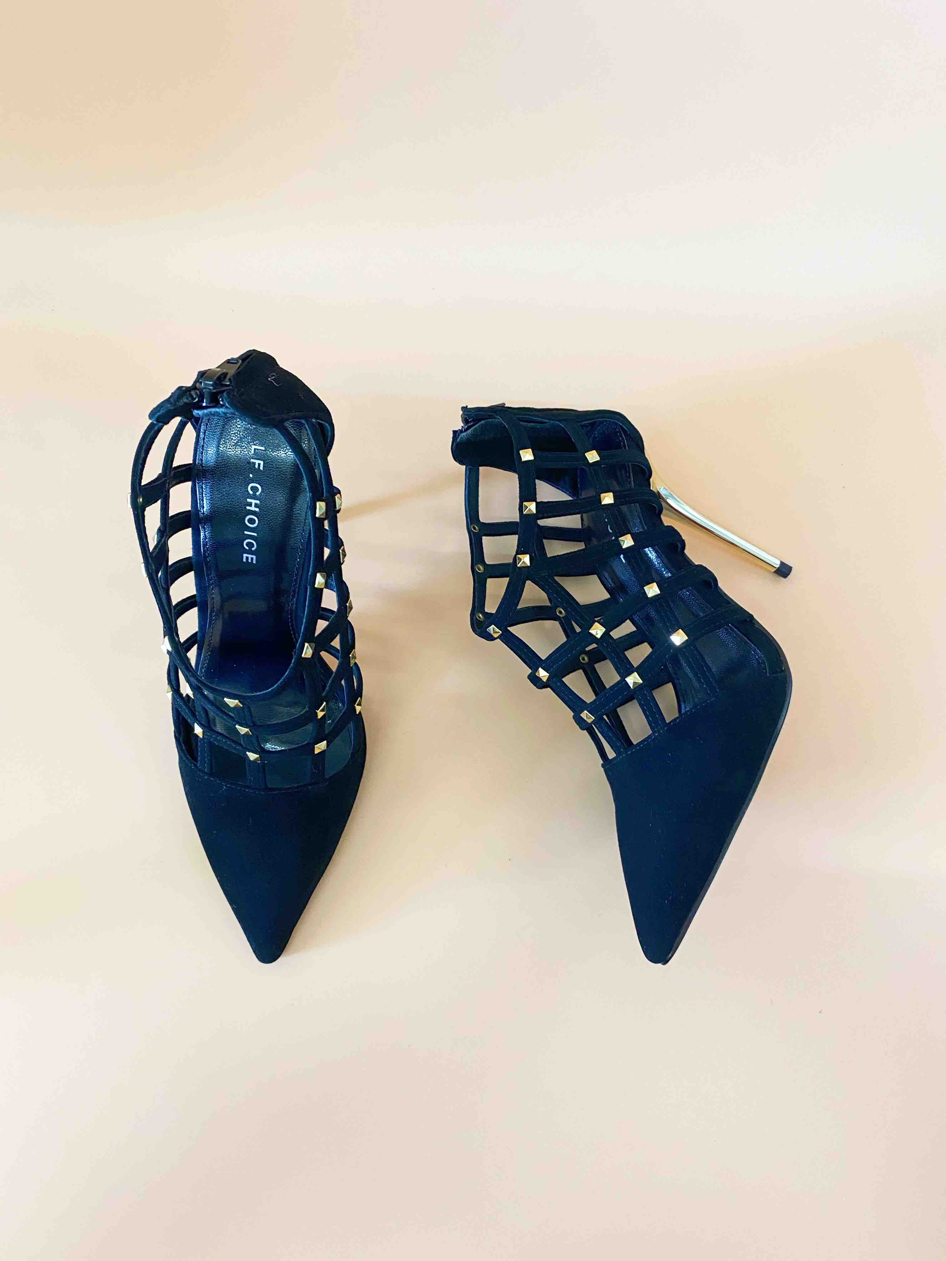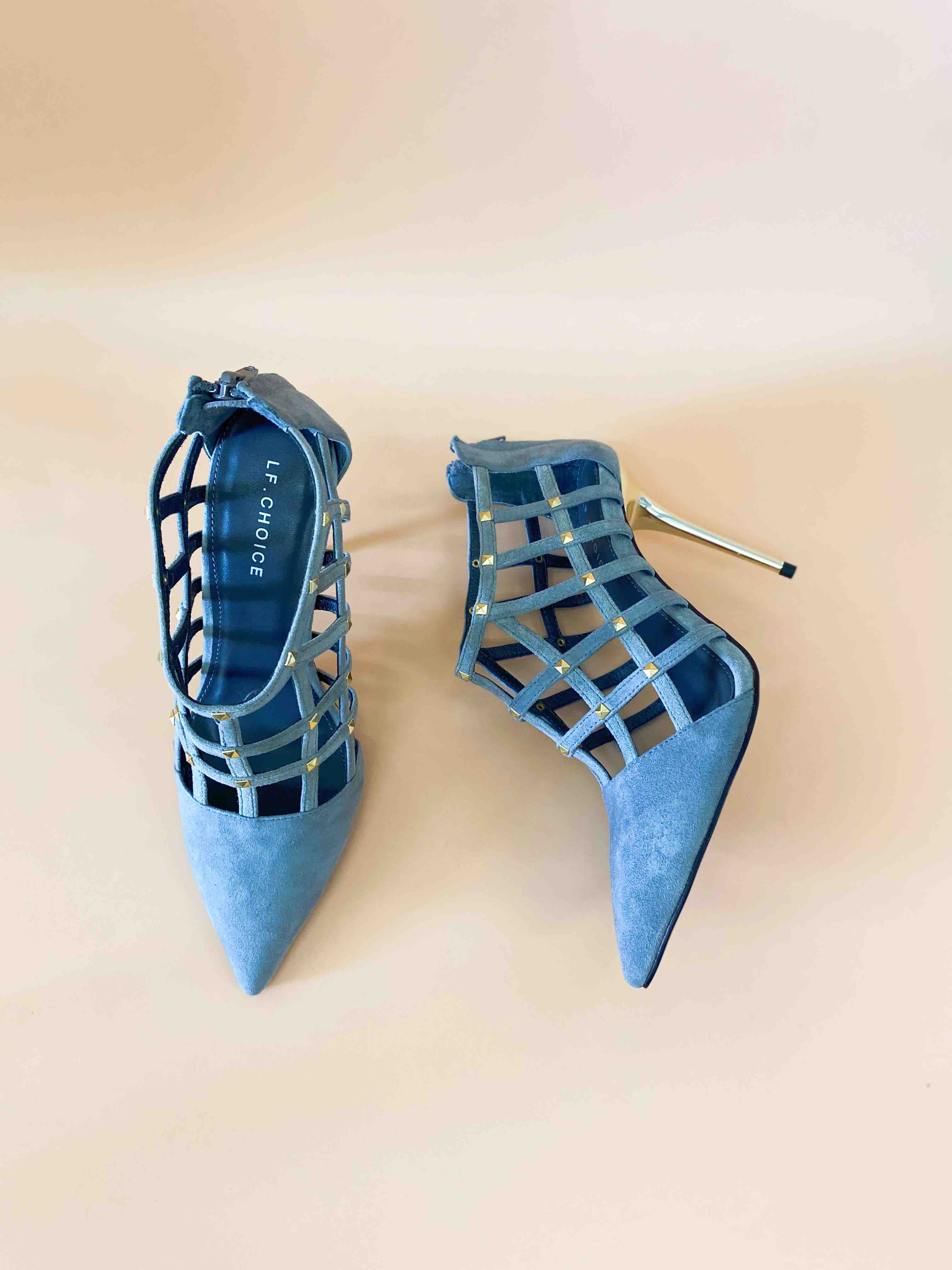 LF.CHOICE B503 夏季透气网格罗马性感凉靴女尖头高跟鞋细跟拉链短靴