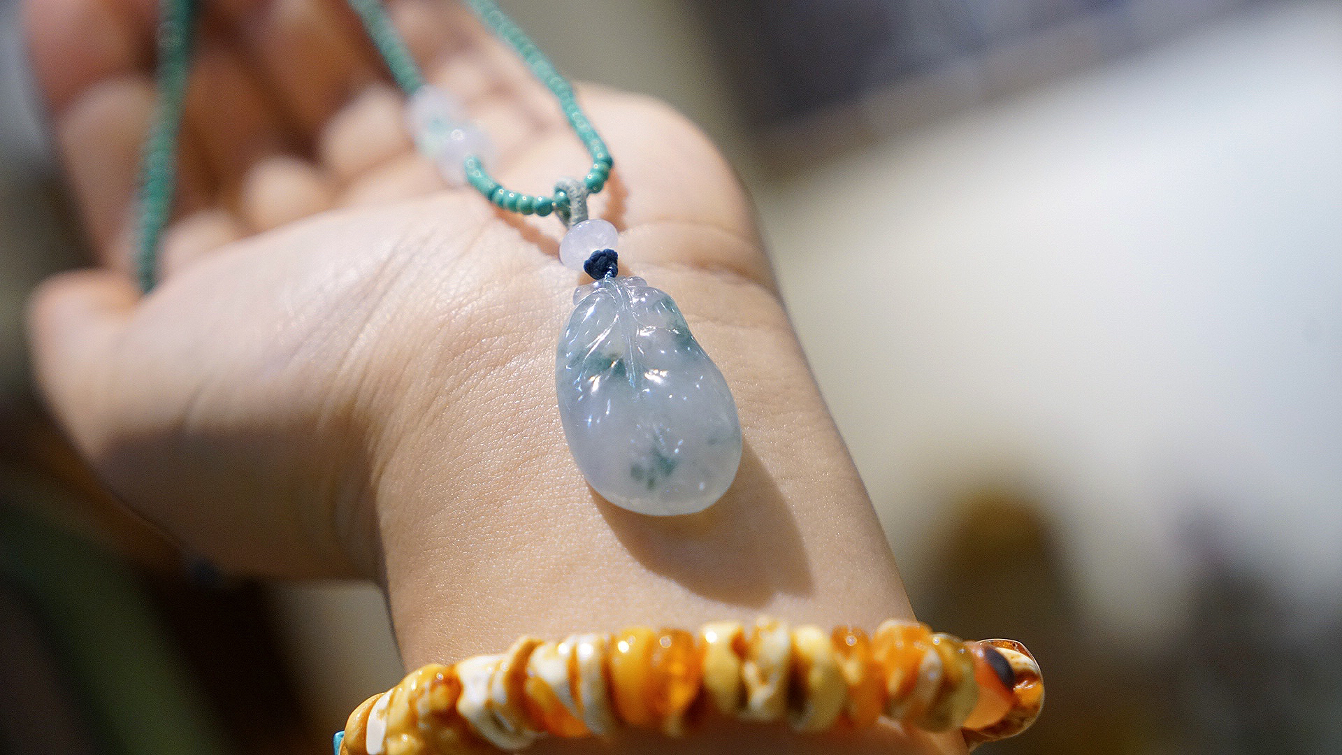 整体很Q弹,百搭,柔和,雅致。翡翠比较难拍,实物更有质感。这条性价比爆炸咯!