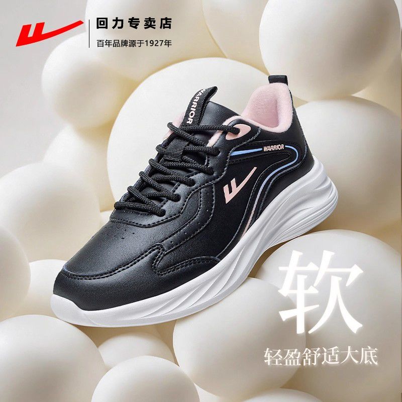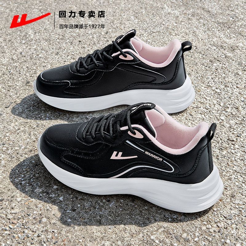 回力女鞋2025秋冬季新款加绒保暖软底黑色皮面防泼水运动鞋