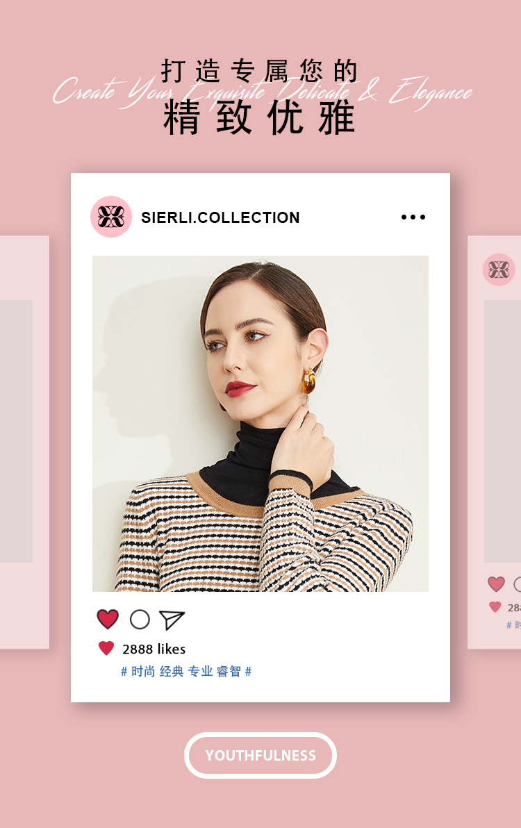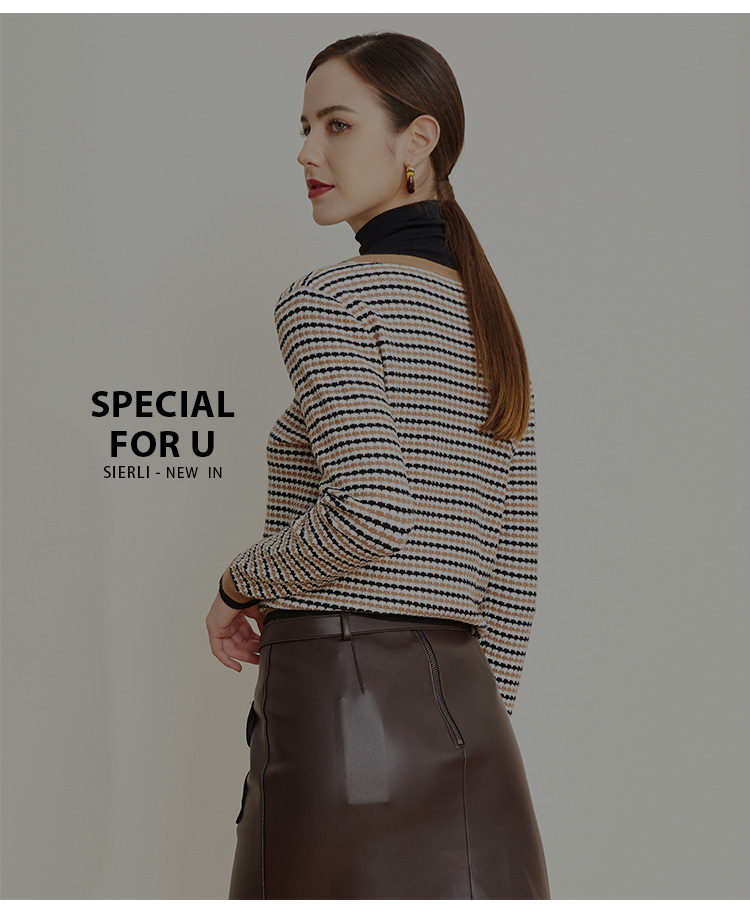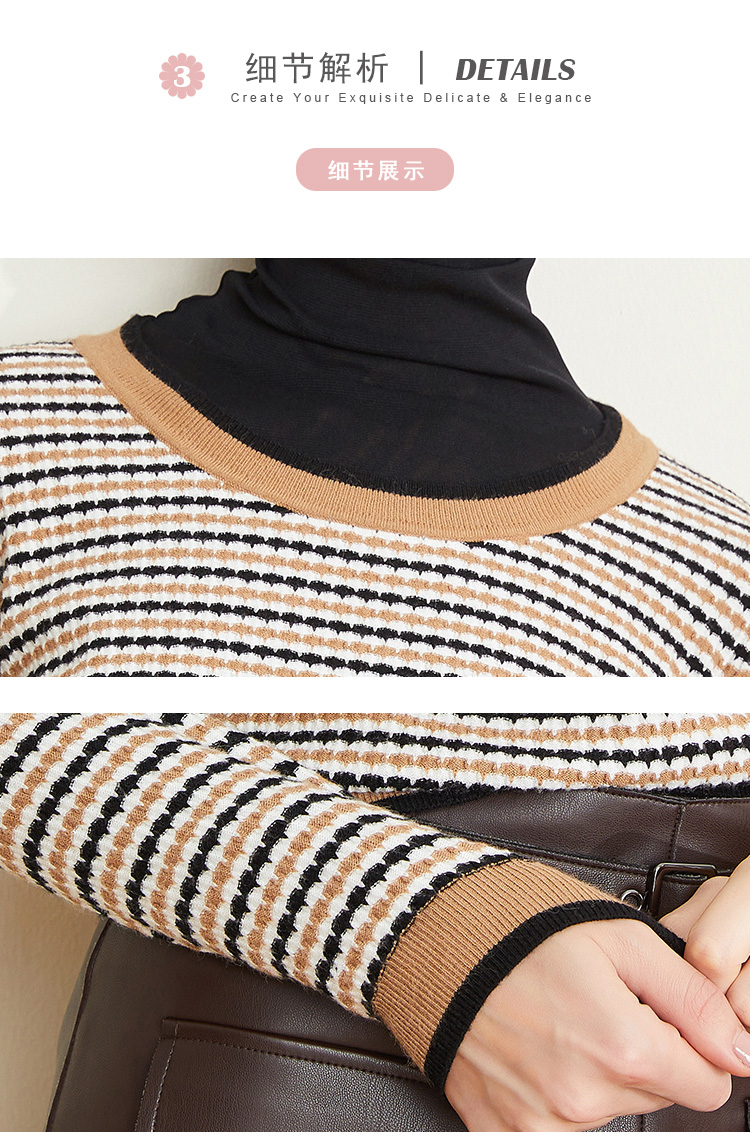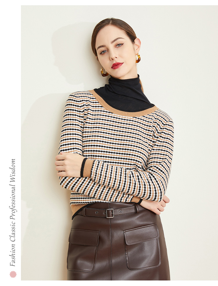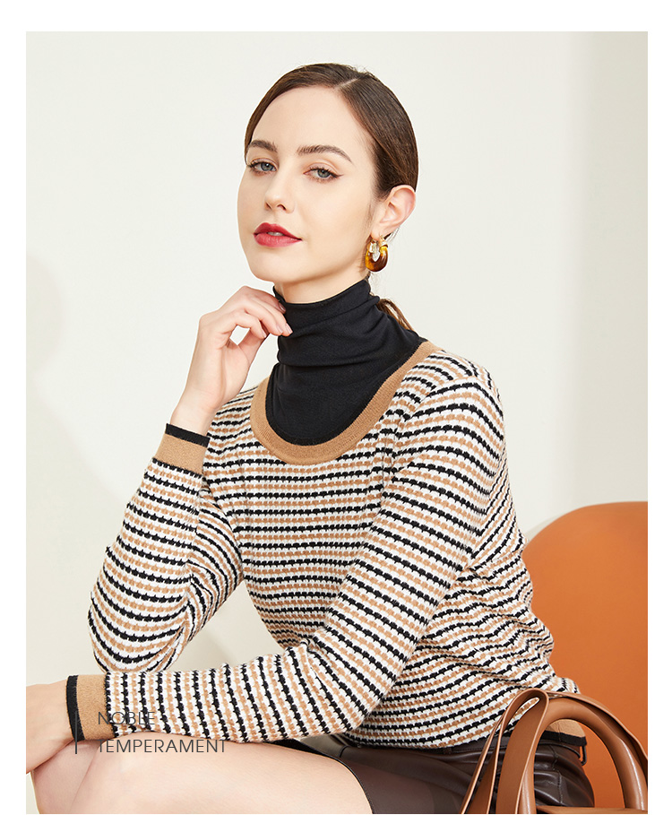 LD623瑟俪(斯尔丽高端)舒适柔软低圆领经典条纹毛衣针织衫