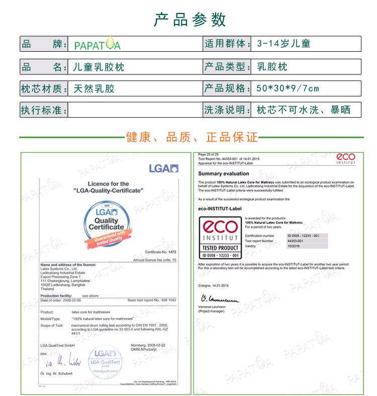 PAPATYA泰国原装进口儿童天然乳胶枕