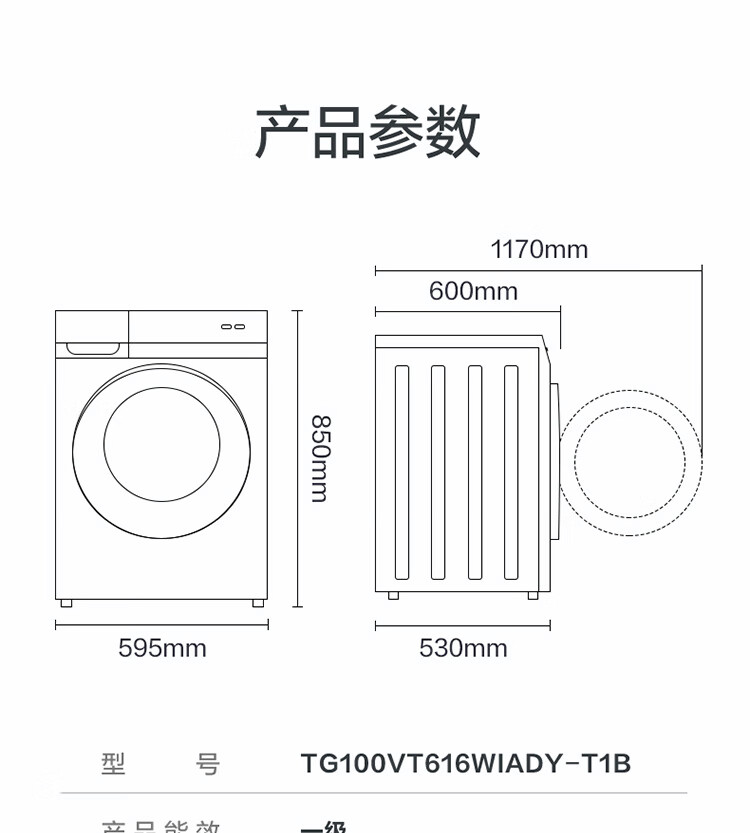 小天鹅(LittleSwan)滚筒10公斤洗衣机_TG100VT616WIADY-T1B