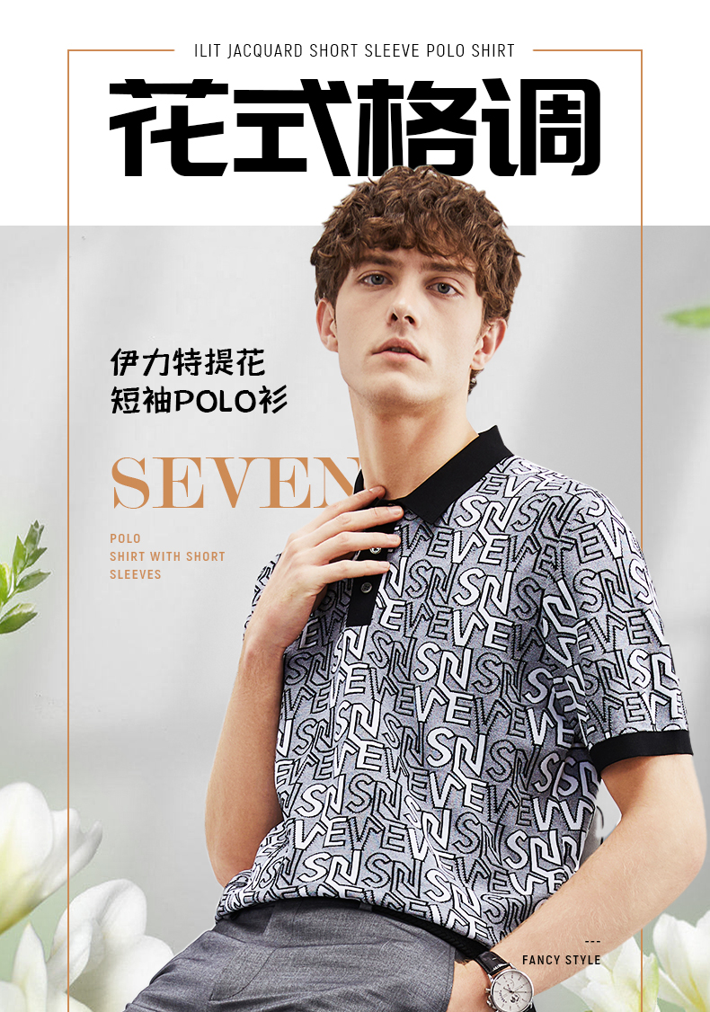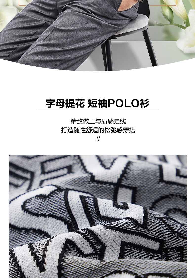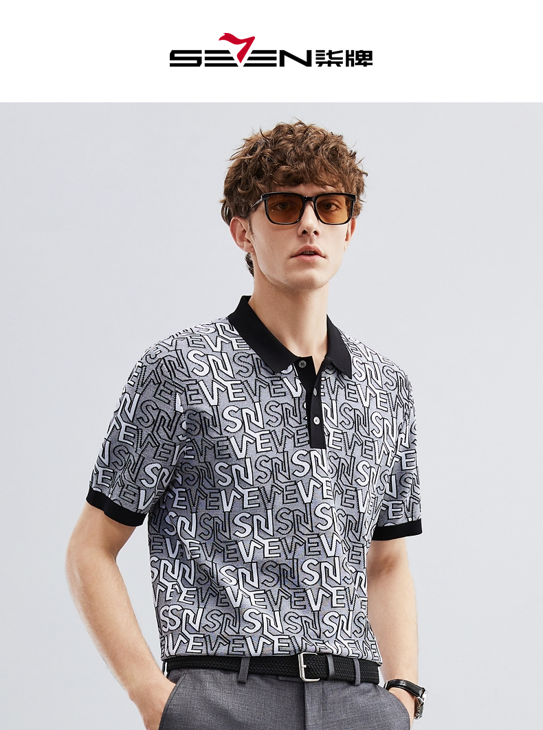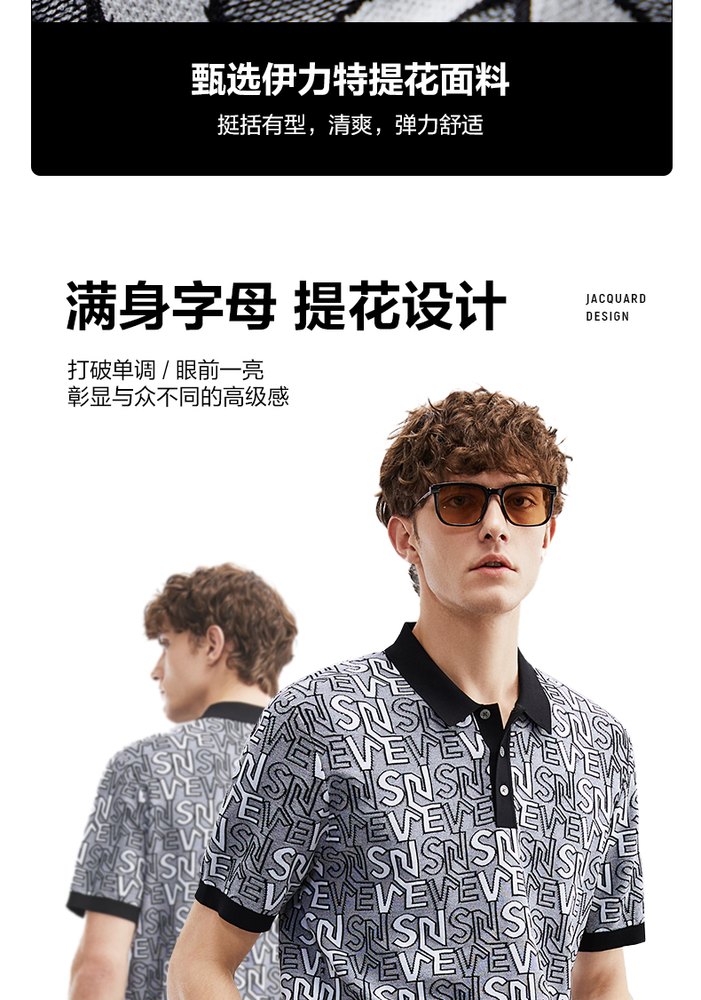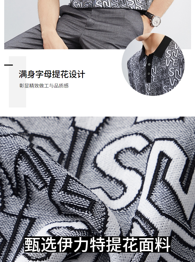 【伊力特】柒牌polo衫男士夏季新款时尚字母提花短袖T恤上衣 124T70860