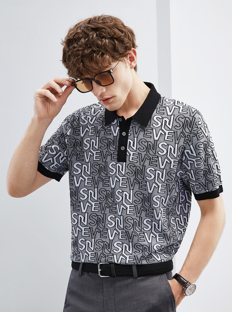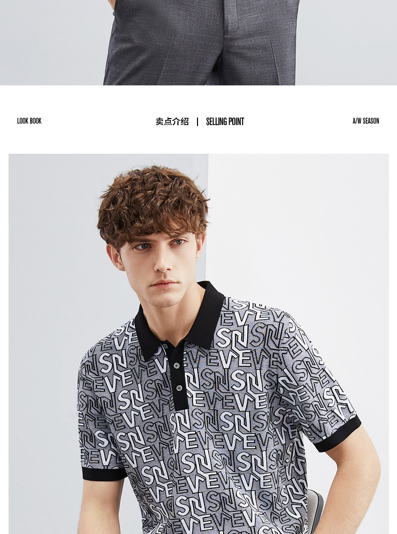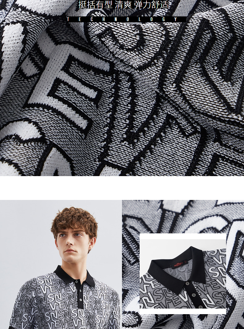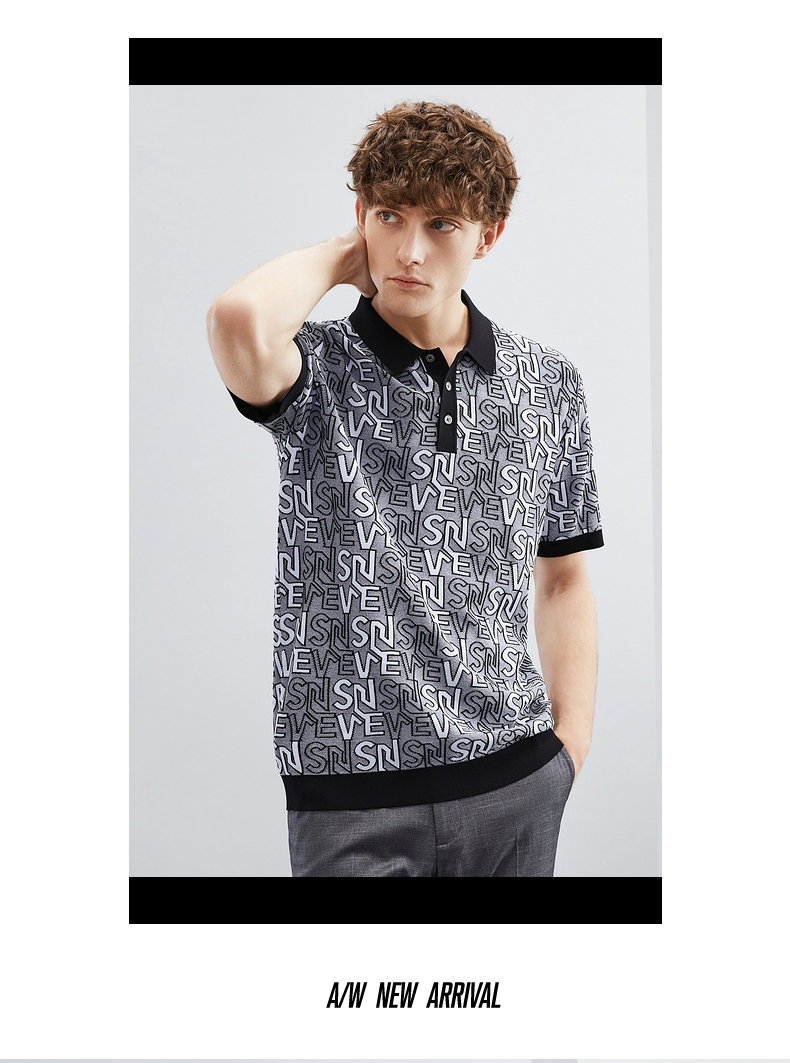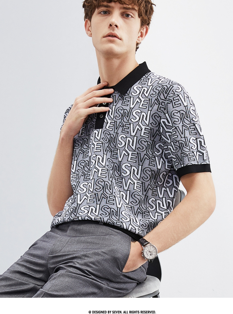 【伊力特】柒牌polo衫男士夏季新款时尚字母提花短袖T恤上衣 124T70860