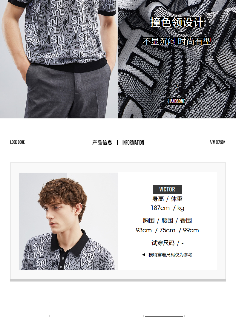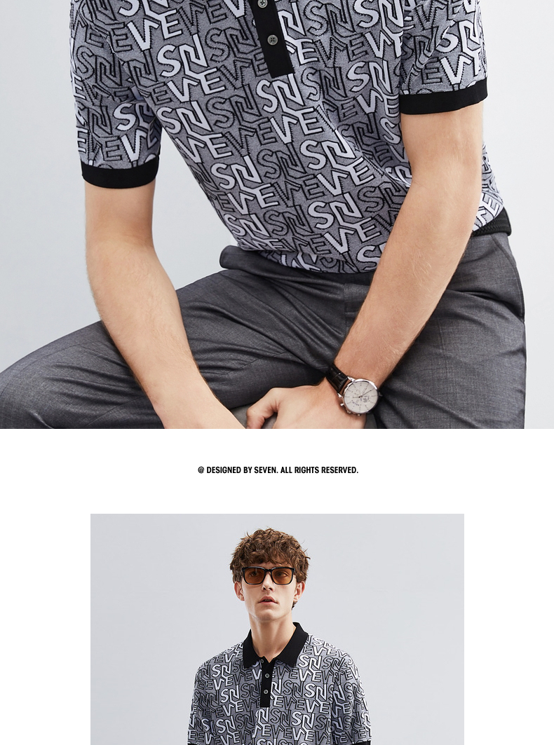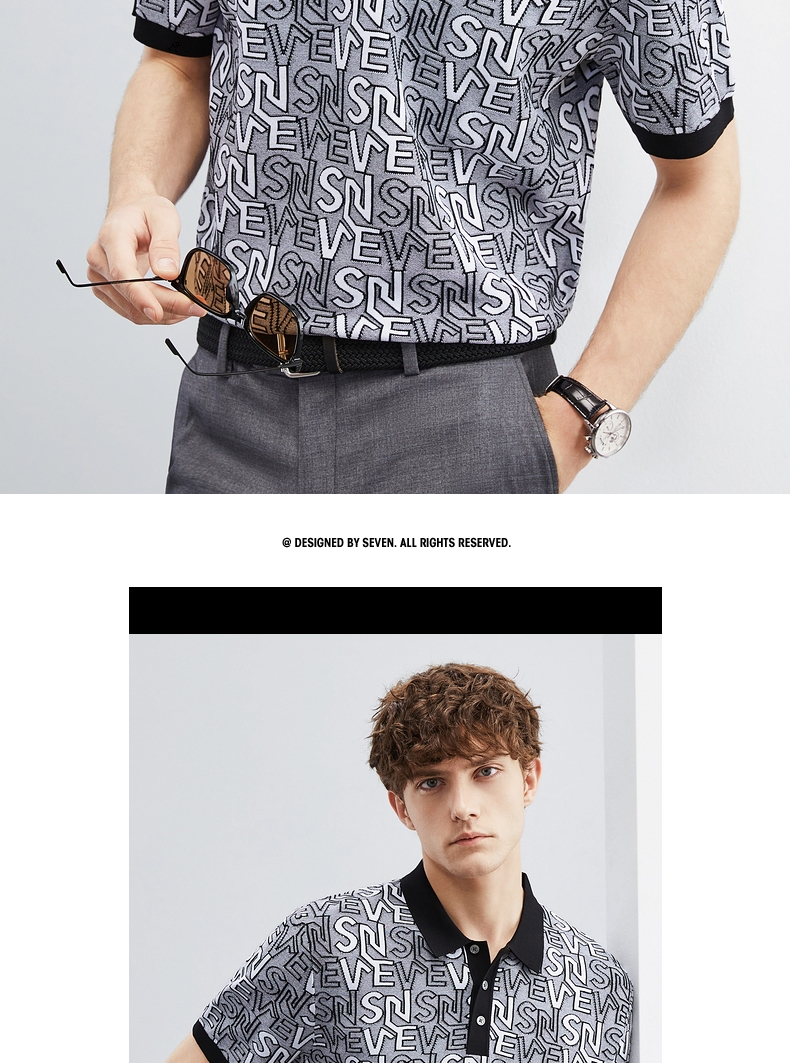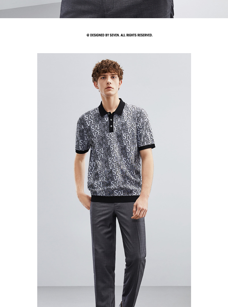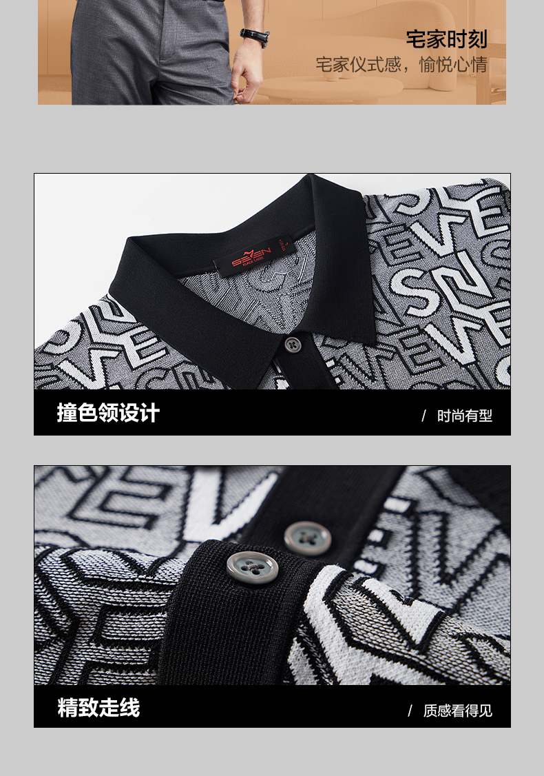 【伊力特】柒牌polo衫男士夏季新款时尚字母提花短袖T恤上衣 124T70860