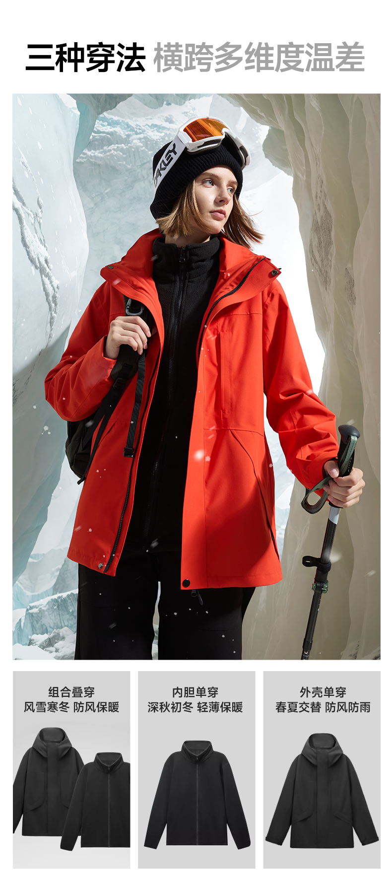 素湃Supield户外硬壳冲锋衣三合一男女秋冬外套防暴雨登山服徒步