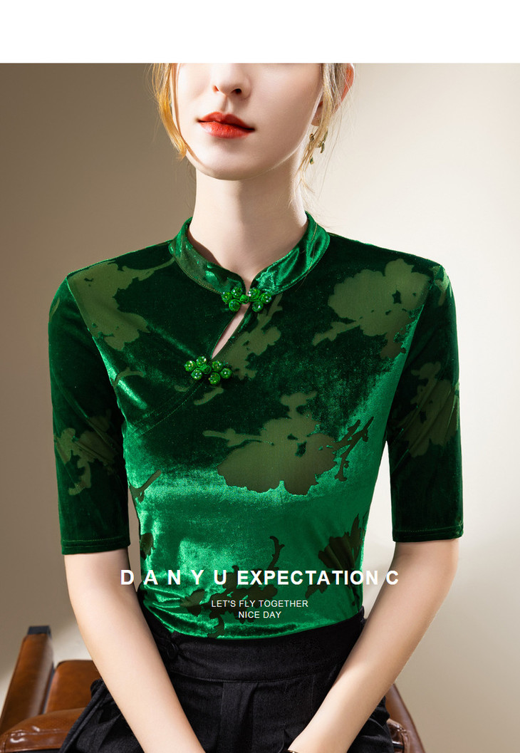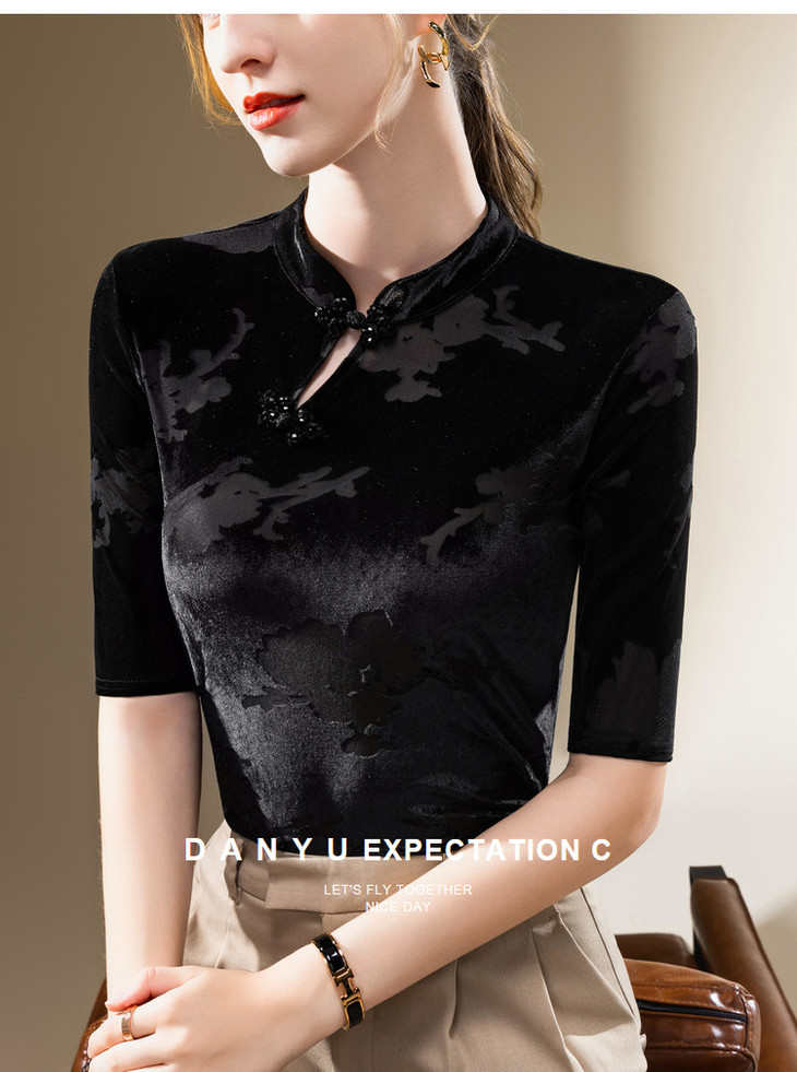 新中式中袖t恤盘扣丝绒洋气小衫XY-T3Q0653-CS