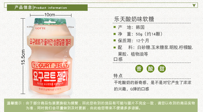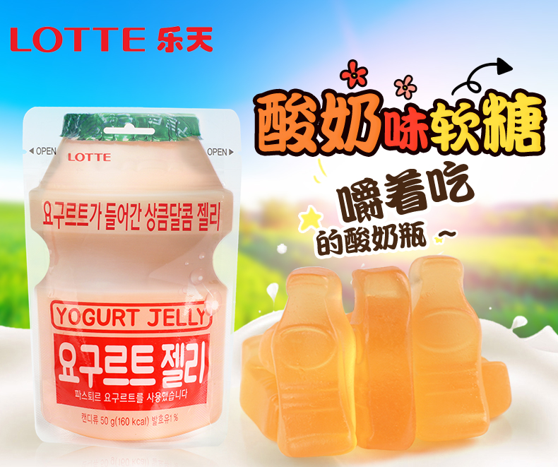 韩国乐天酸乳味软糖原味/芒果味50g 爽滑Q弹酸甜可口超萌外表 060095/064186