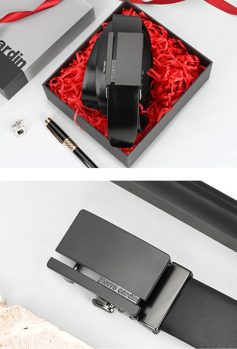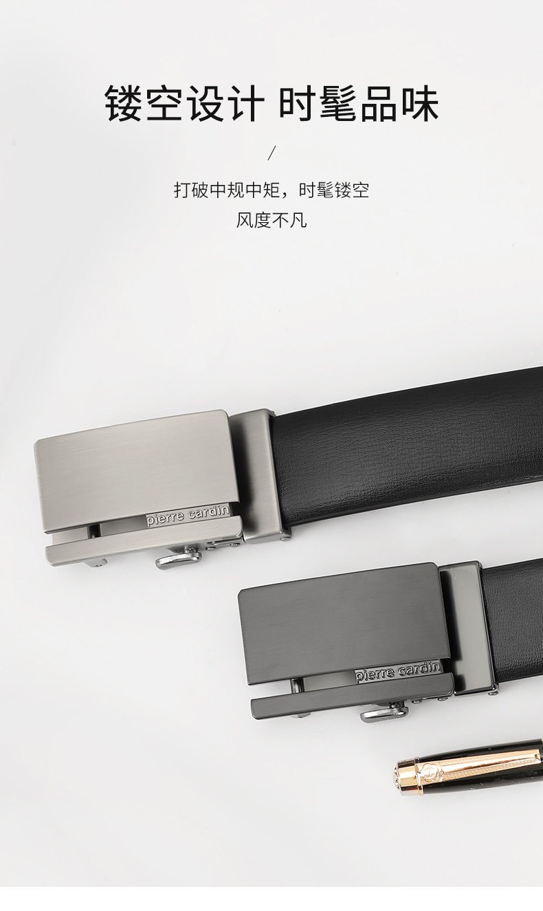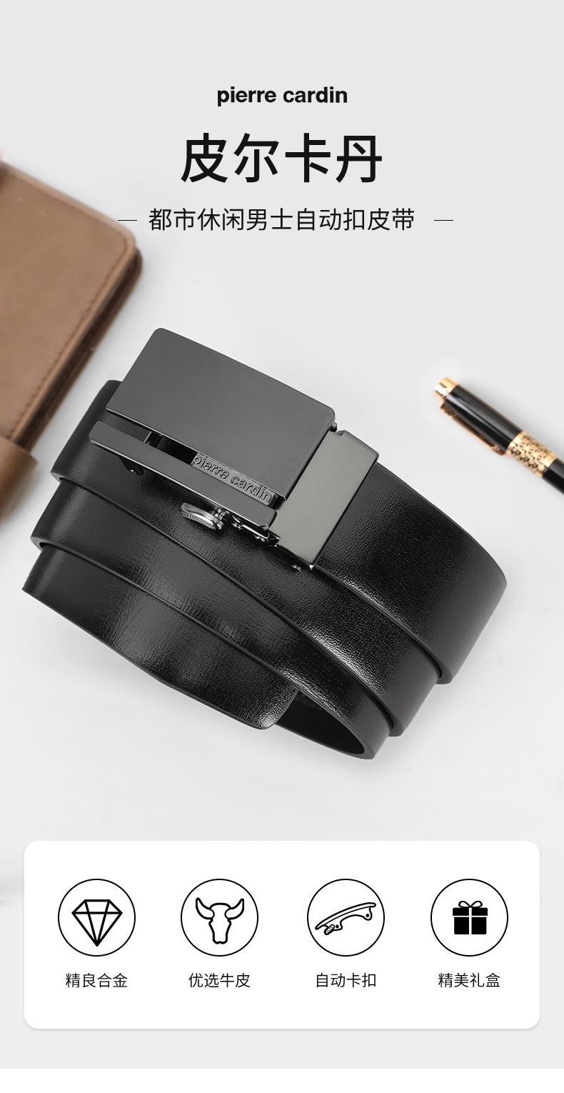 皮尔卡丹正品皮带男头层牛皮都市时尚腰带合金自动扣裤腰带商务牛皮裤带