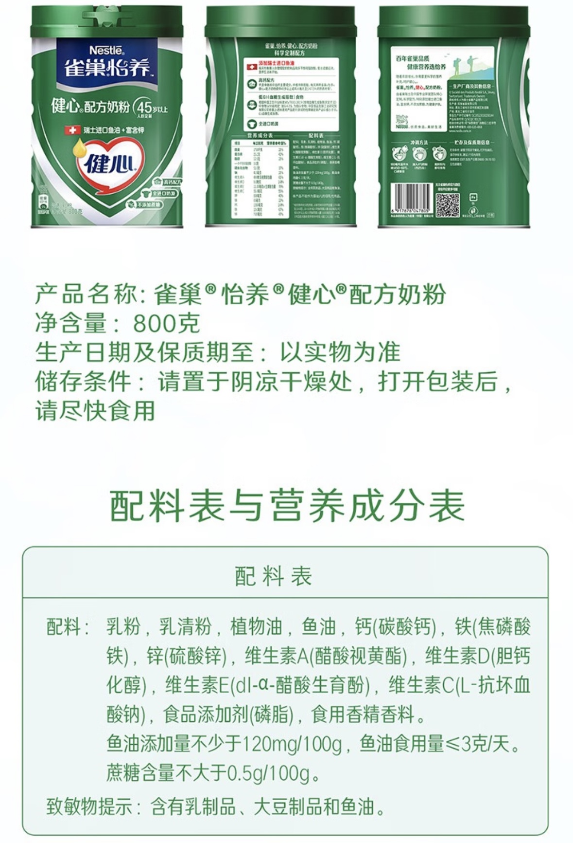 雀巢怡养健心中老年配方奶粉