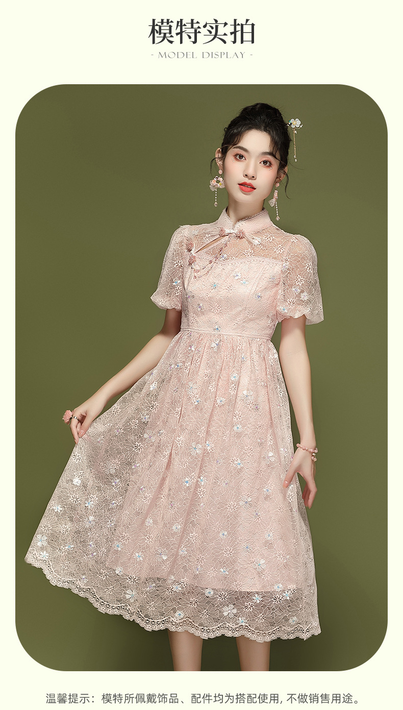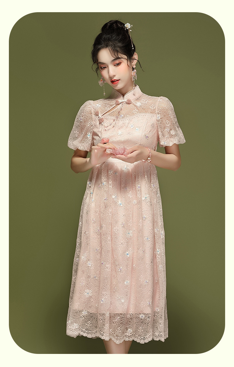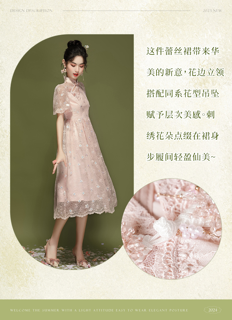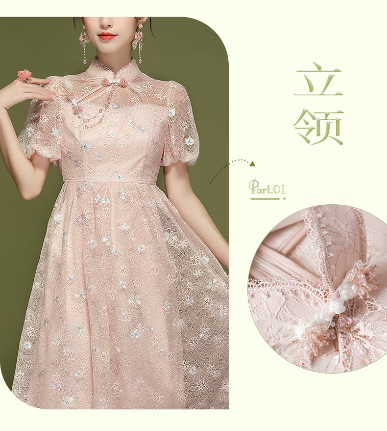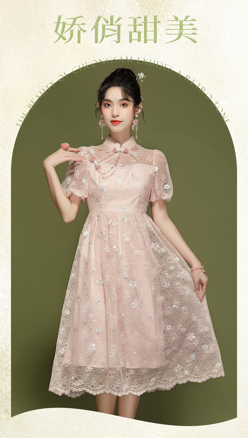 改良款旗袍,蕾丝灯笼袖连衣裙OY-24151