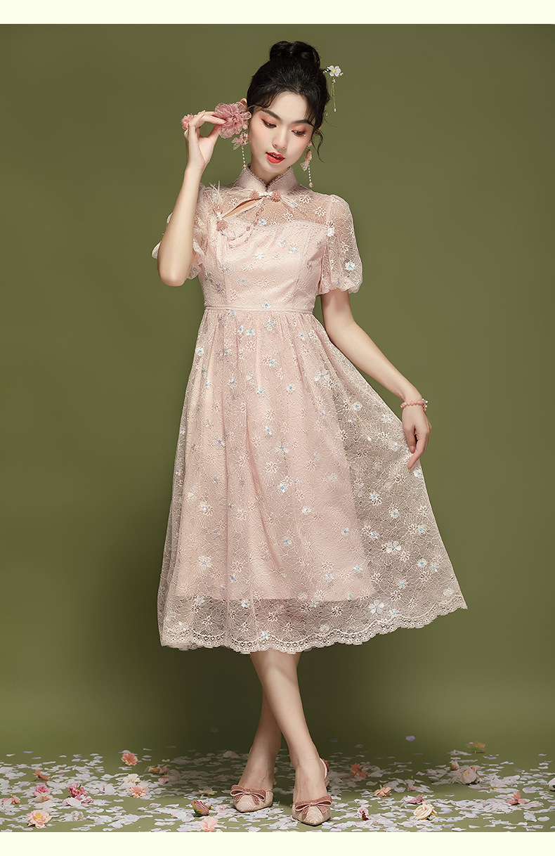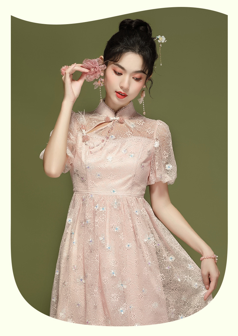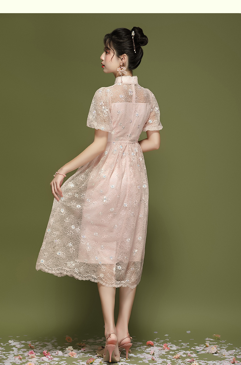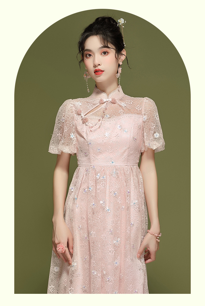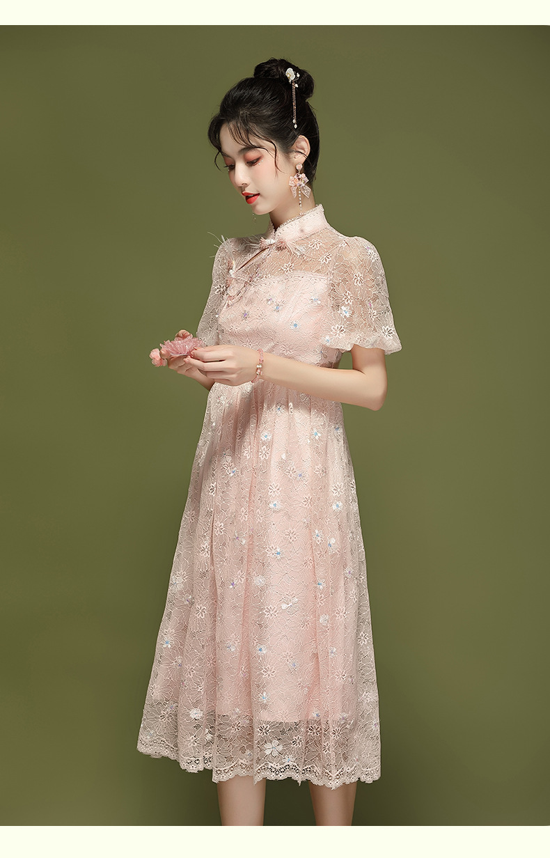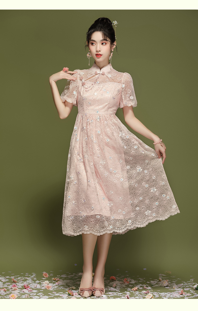 改良款旗袍,蕾丝灯笼袖连衣裙OY-24151