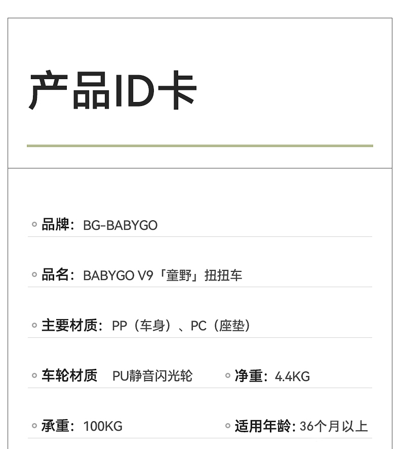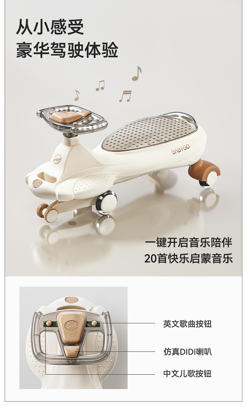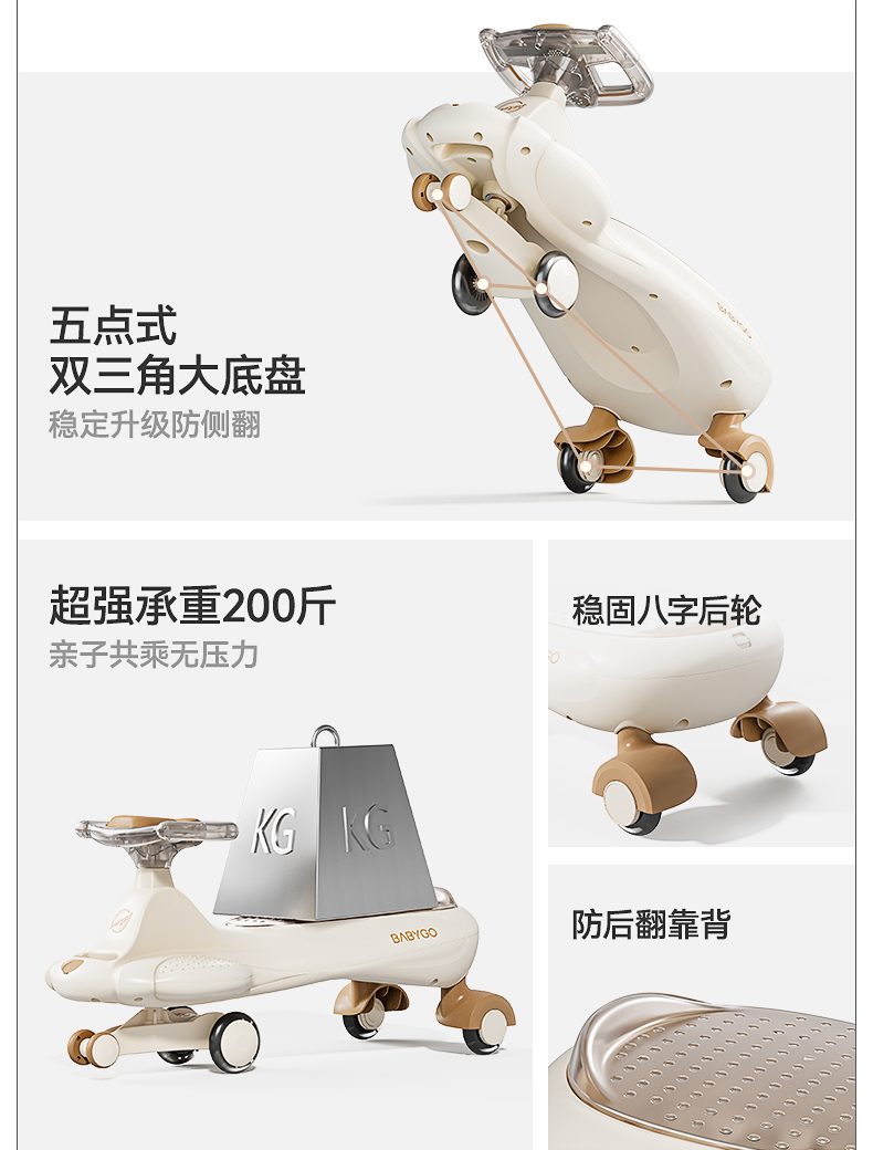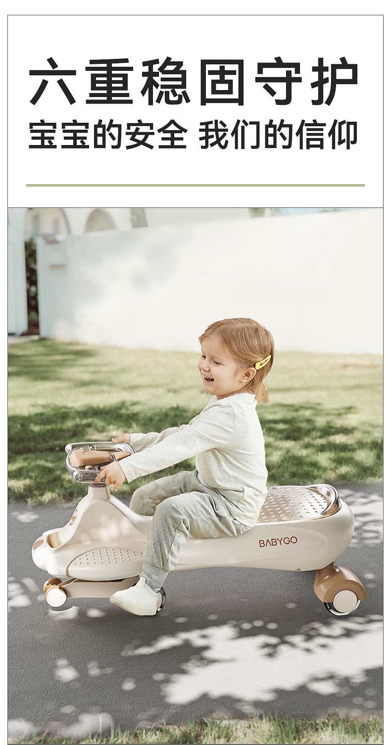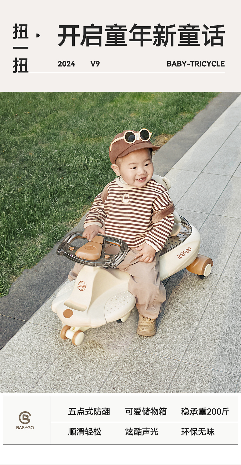 BABYGO V9童野扭扭车儿童溜溜车大人可坐防侧翻可收纳玩具