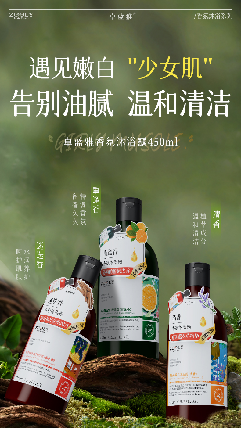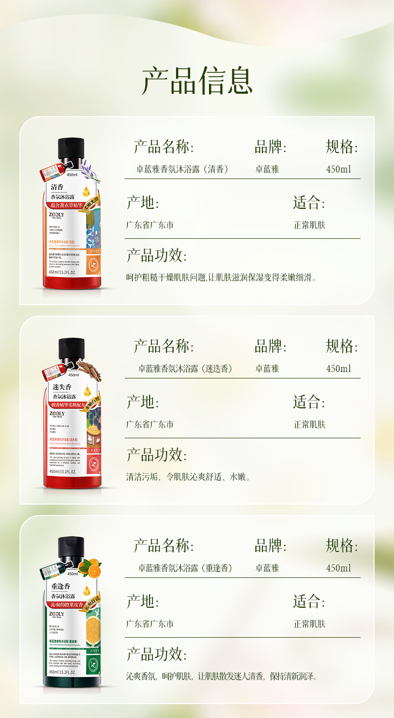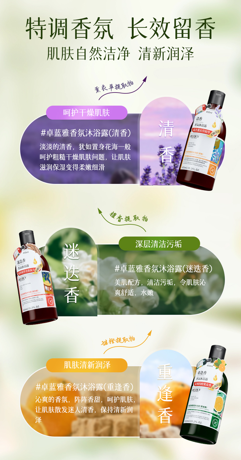 【积分兑换】卓蓝雅香氛沐浴露450ml(清香/迷迭香/重逢香)