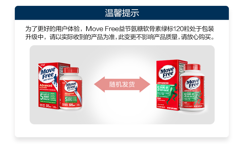 【运动保养 绿瓶120粒 】Movefree益节 氨糖软骨素钙片绿瓶120粒/瓶 维骨力MSM补氨糖