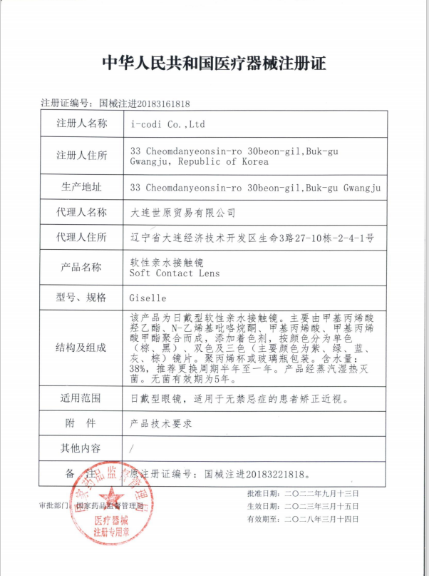 材质:水凝胶含有机硅+玻尿酸+MPC