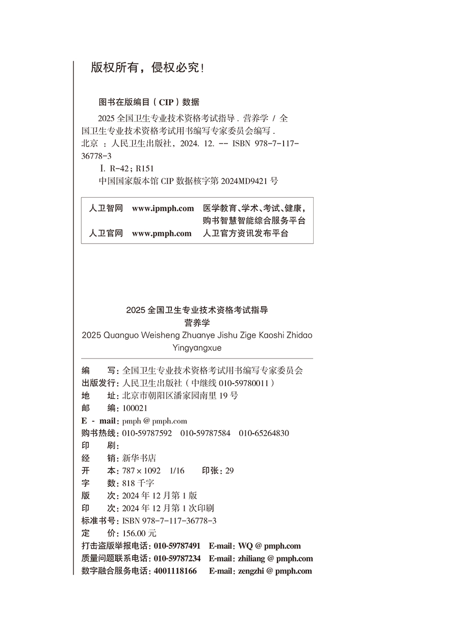 2025营养学 全国卫生专业技术资格考试指导 全国卫生专业技术资格考试用书编写专家委员会适用专业营养学士 师 中级9787117367783