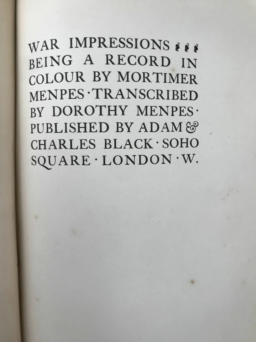 约20世纪早期 莫蒂默·曼培斯《战争印象》 99幅彩色插图 漆布精装大32开