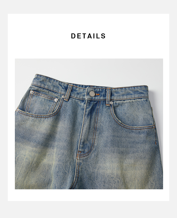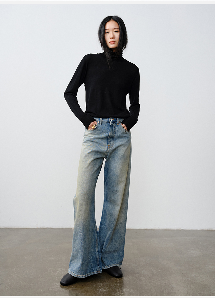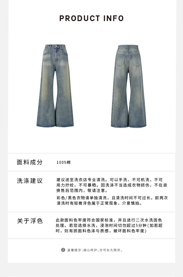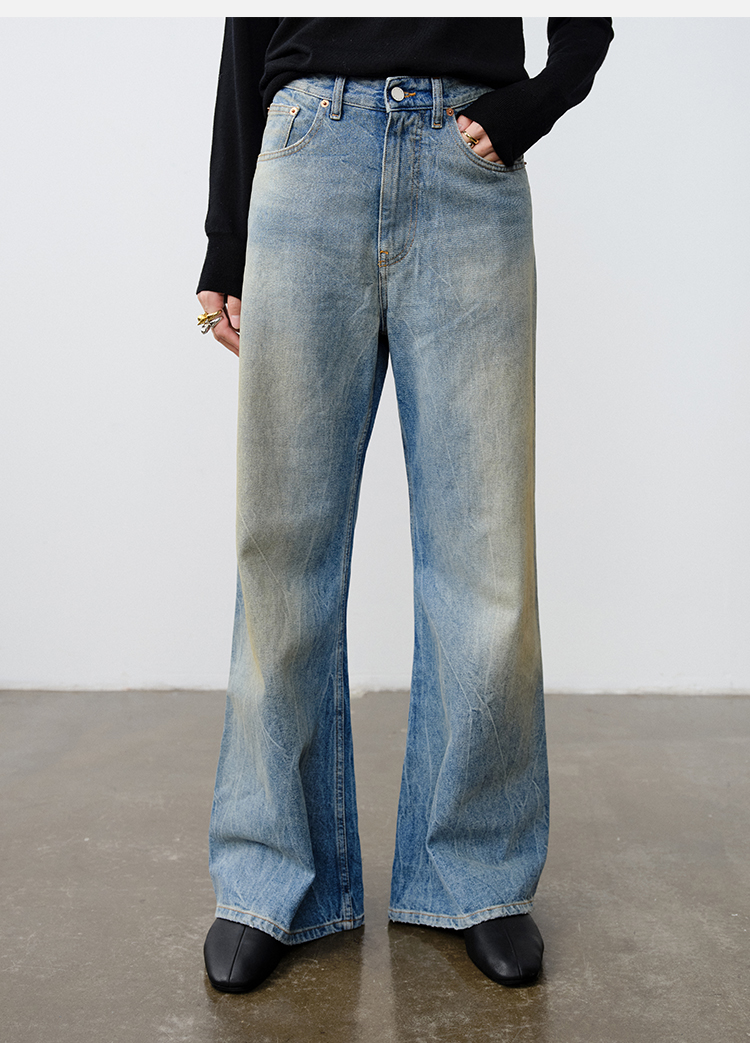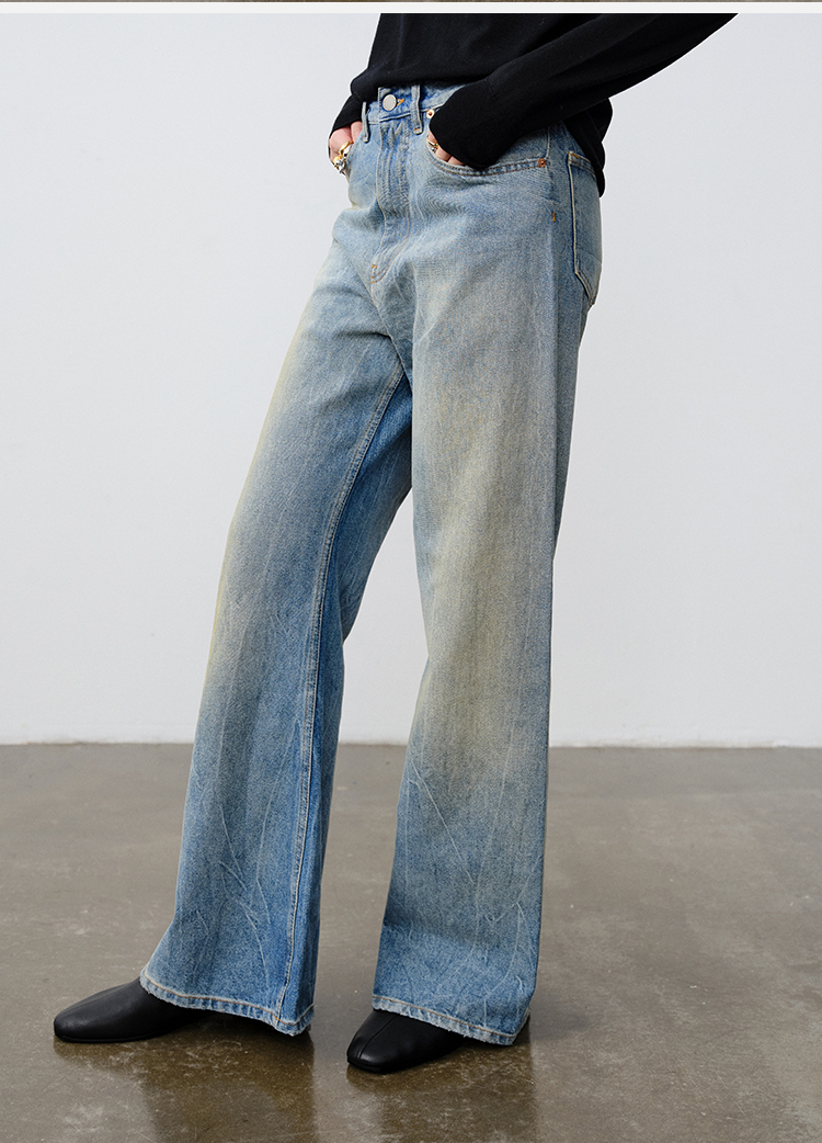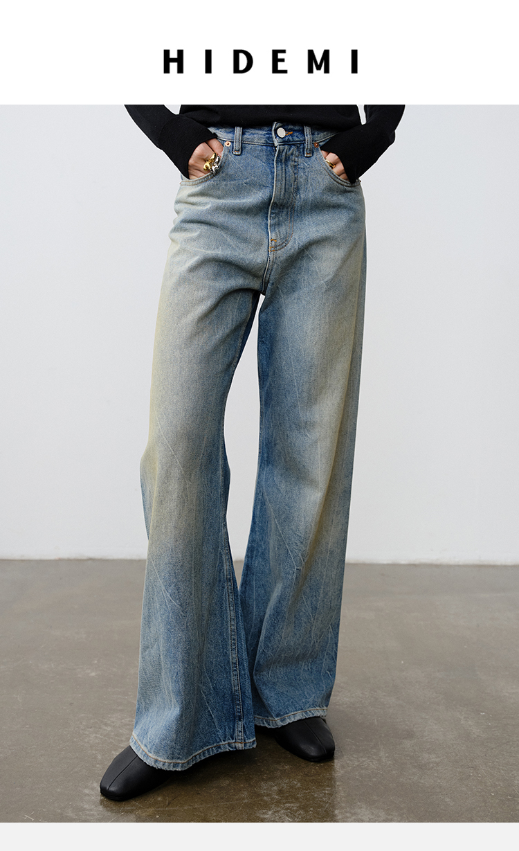 HIDEMI 【刘雯同款】复古多道水洗做旧感裂纹宽松喇叭直筒中低腰牛仔裤