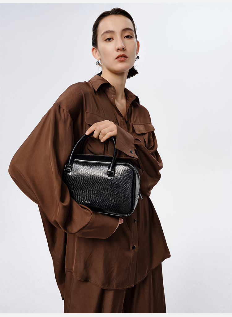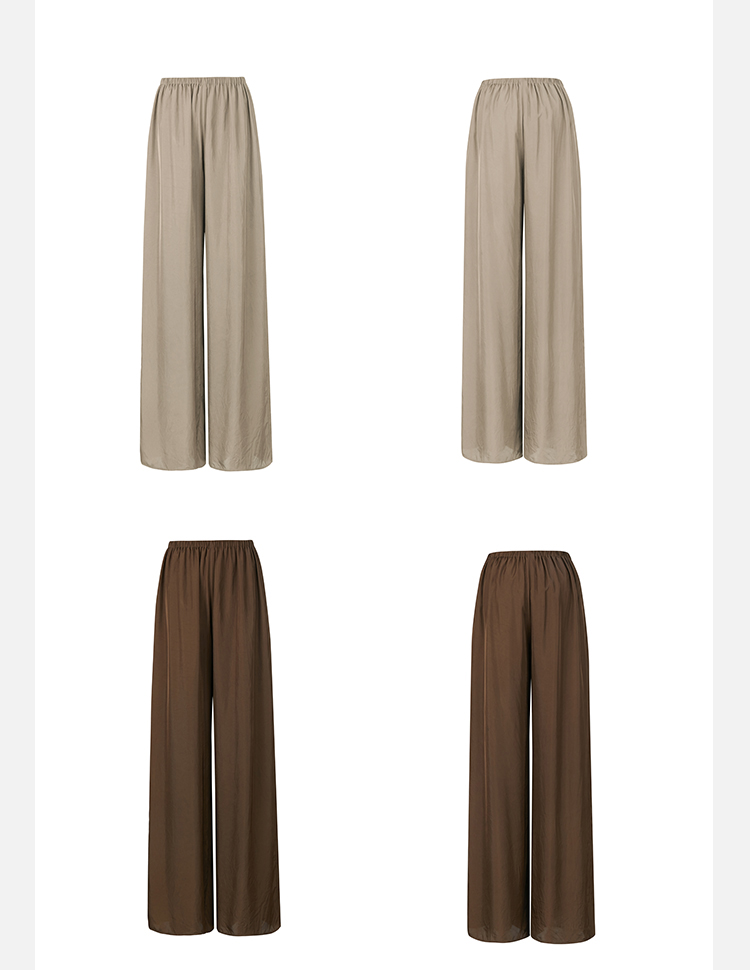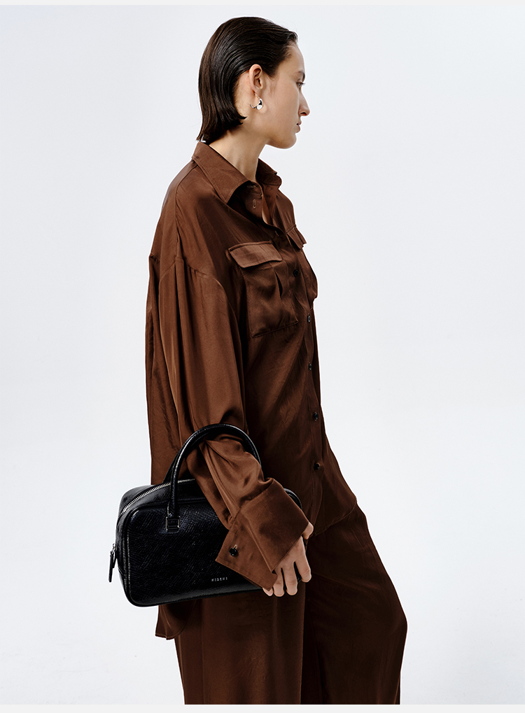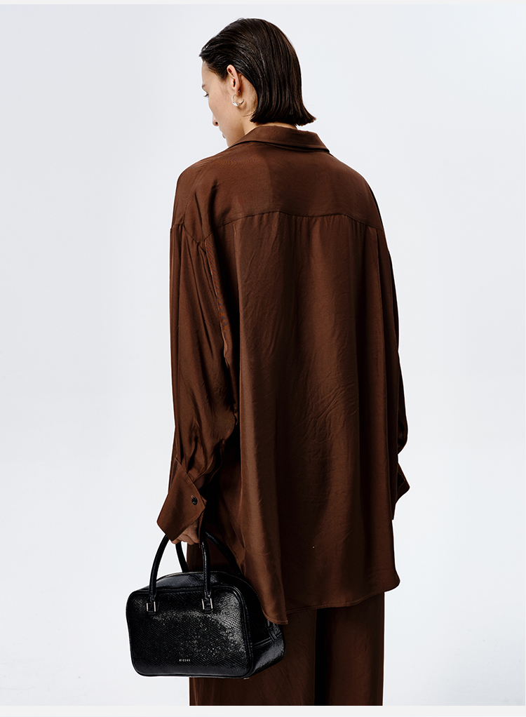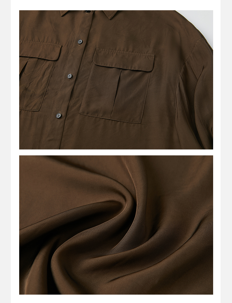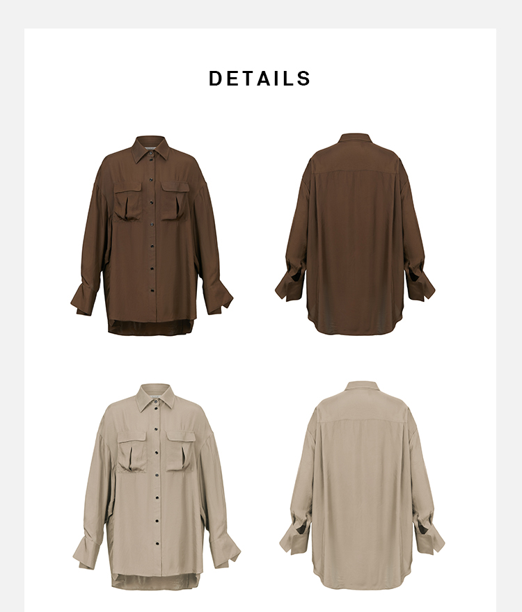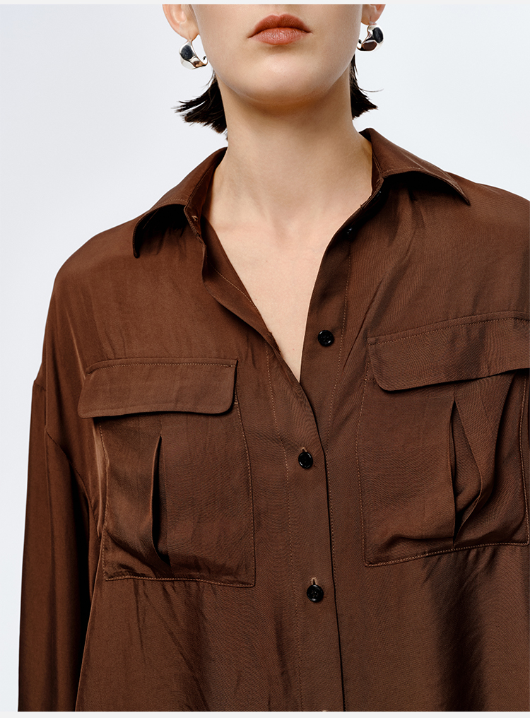 HIDEMI口袋工装感极简大廓形慵懒醋酸套装 衬衫/长裤 巧克力色/香草燕麦