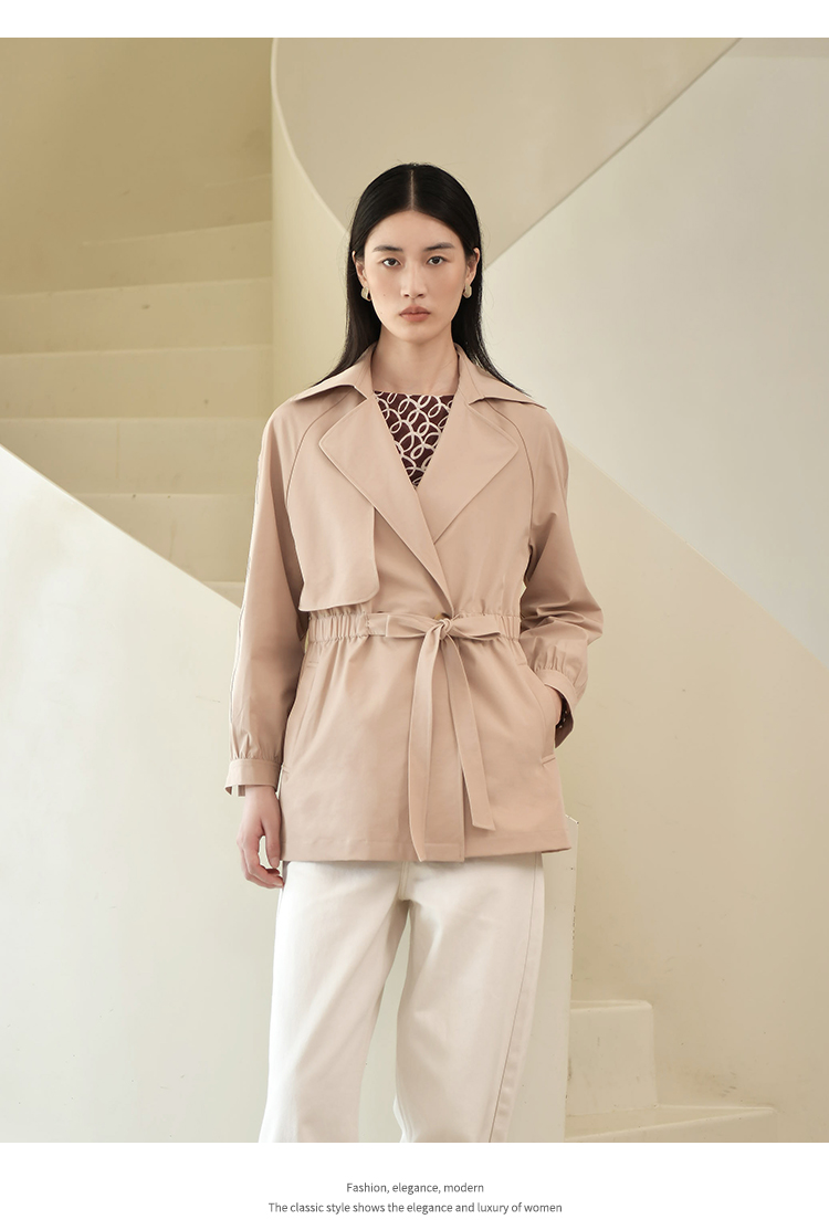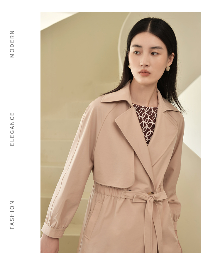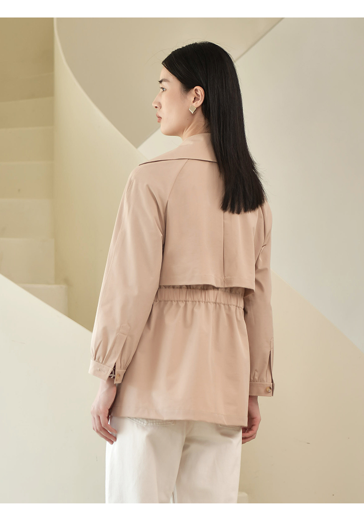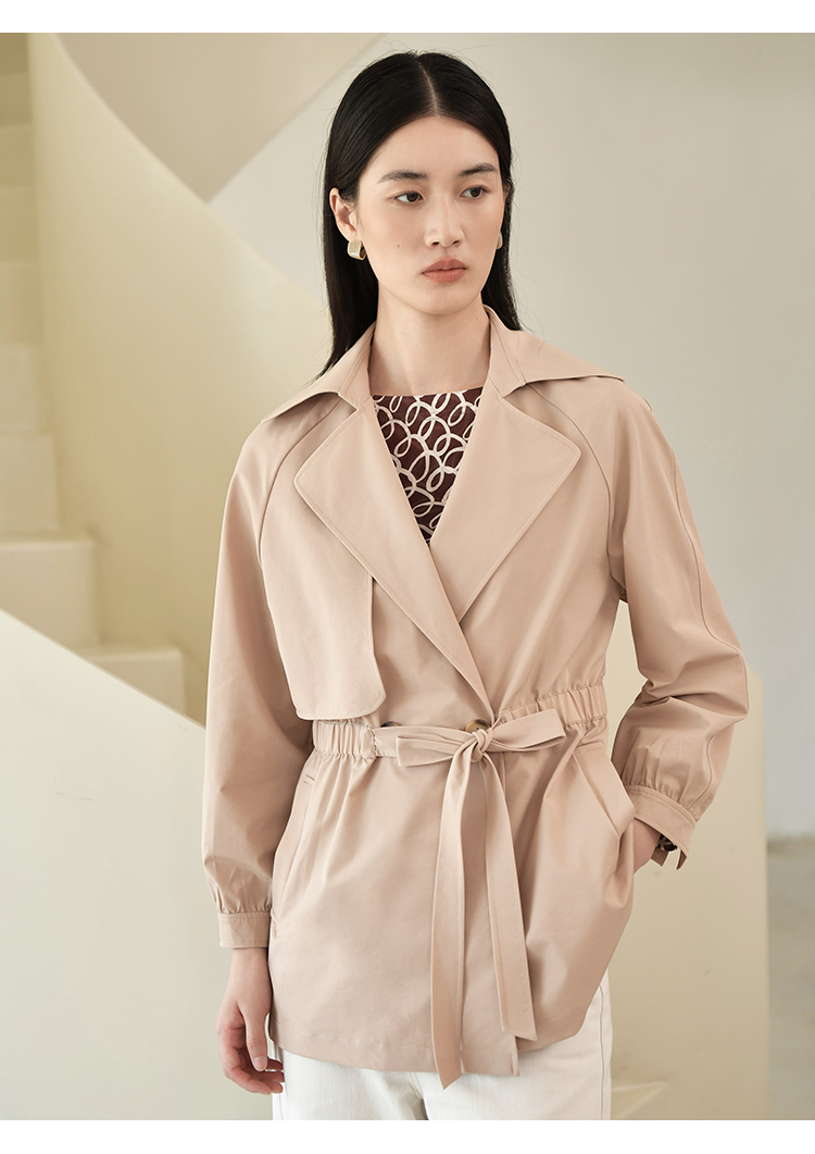 佐尔美2022秋季新款 气质时奶茶色系松紧腰短风衣上衣女E23FD05