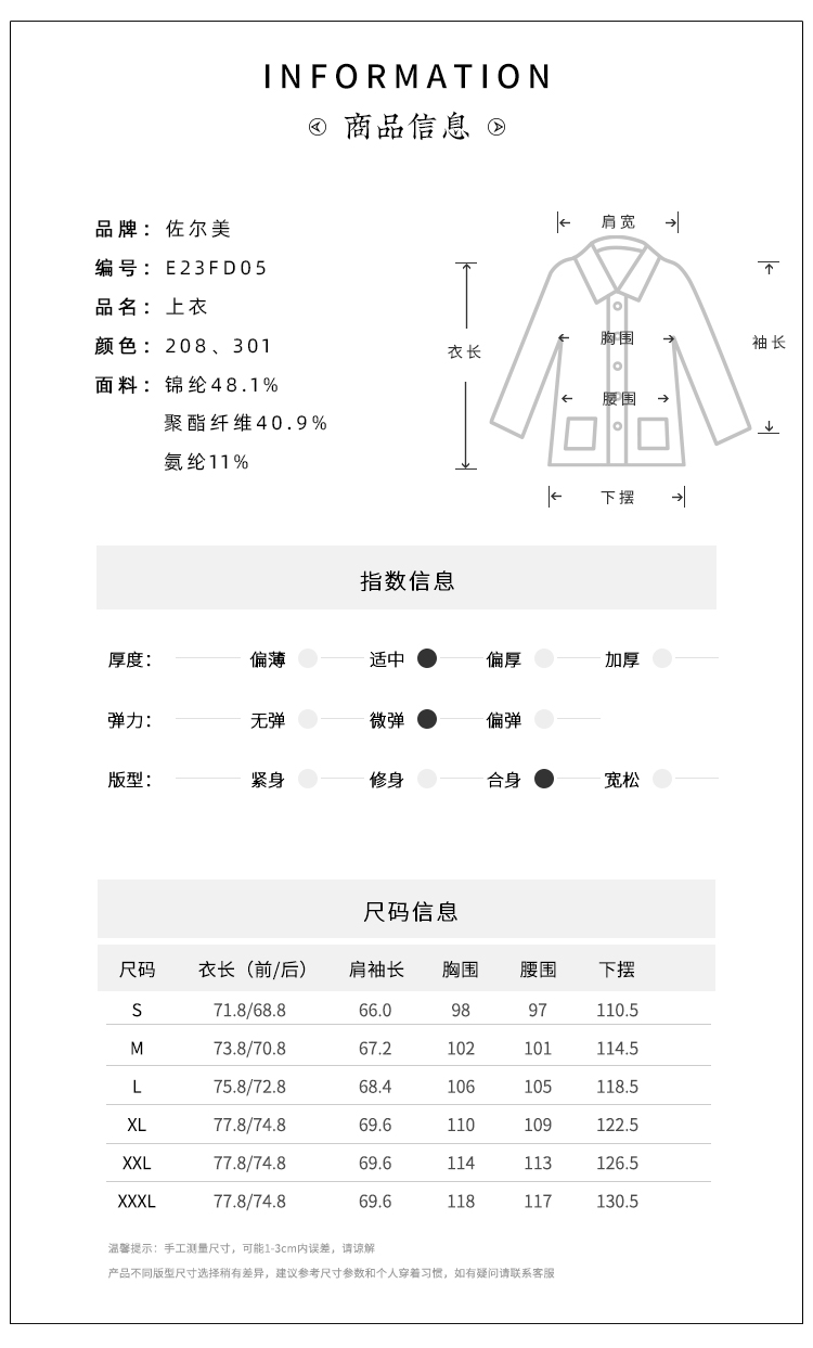 佐尔美春秋季女装纯色印花修身显瘦七分袖风衣外套E71SO20