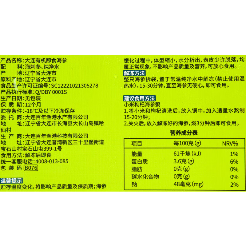大连有机即食海参250g/盒