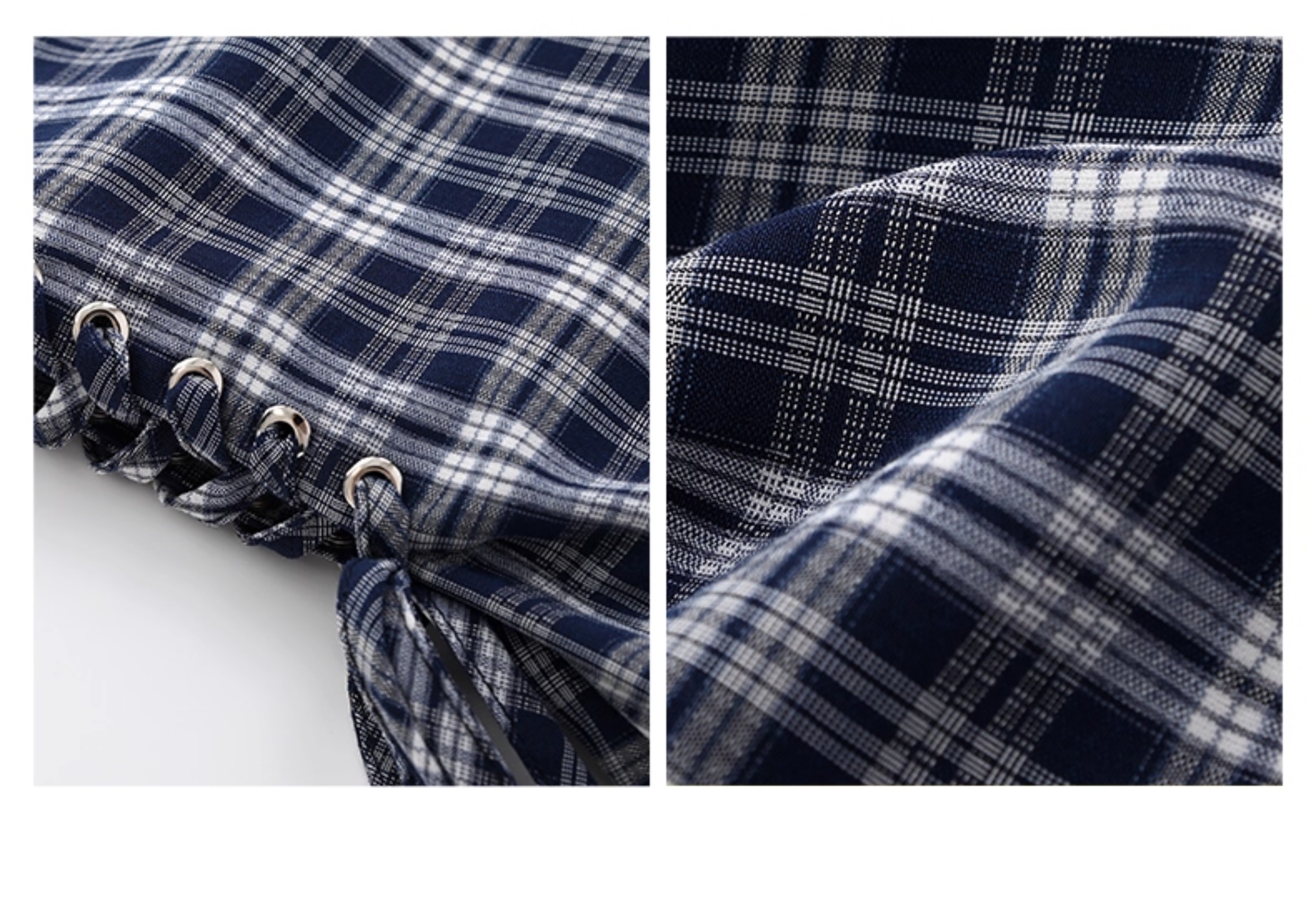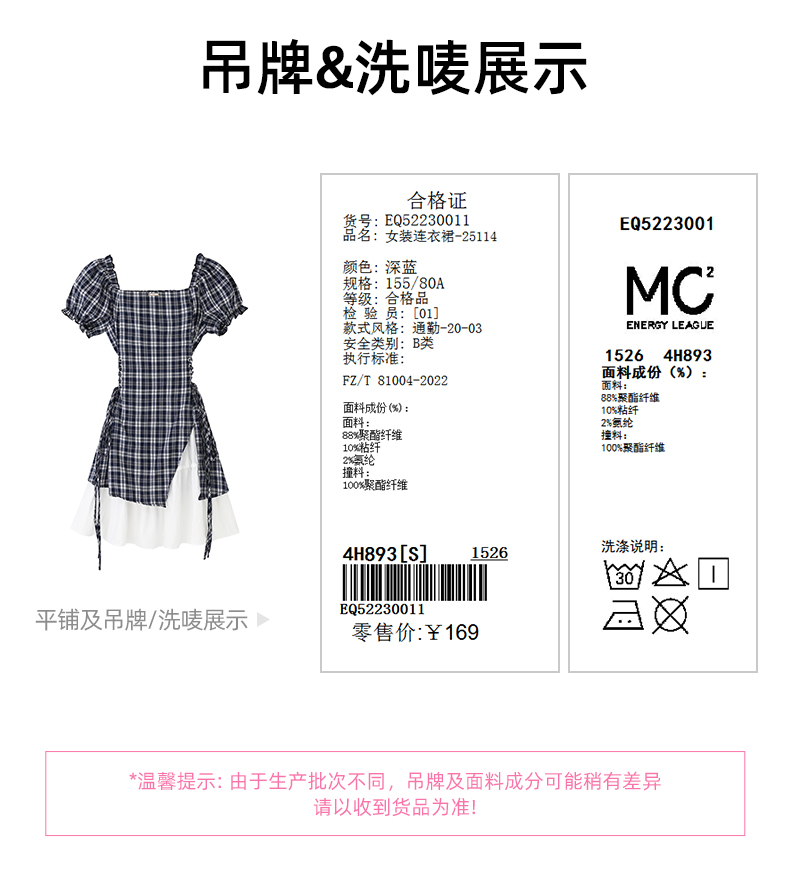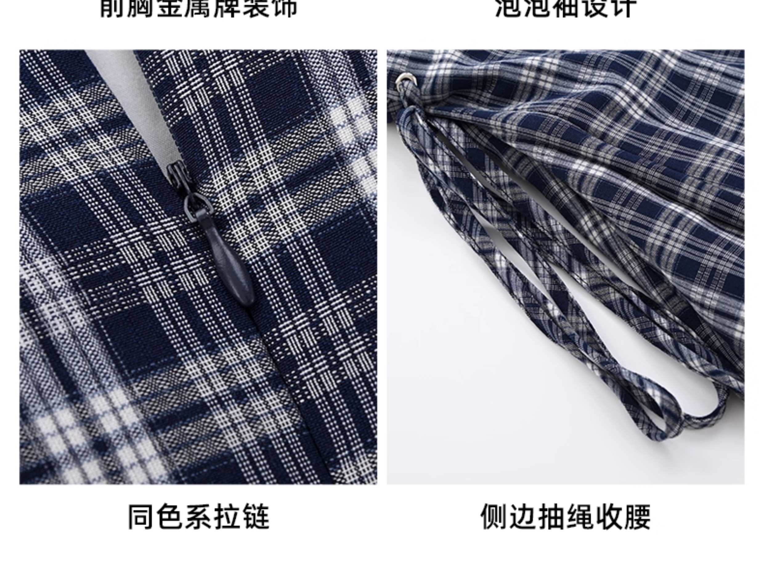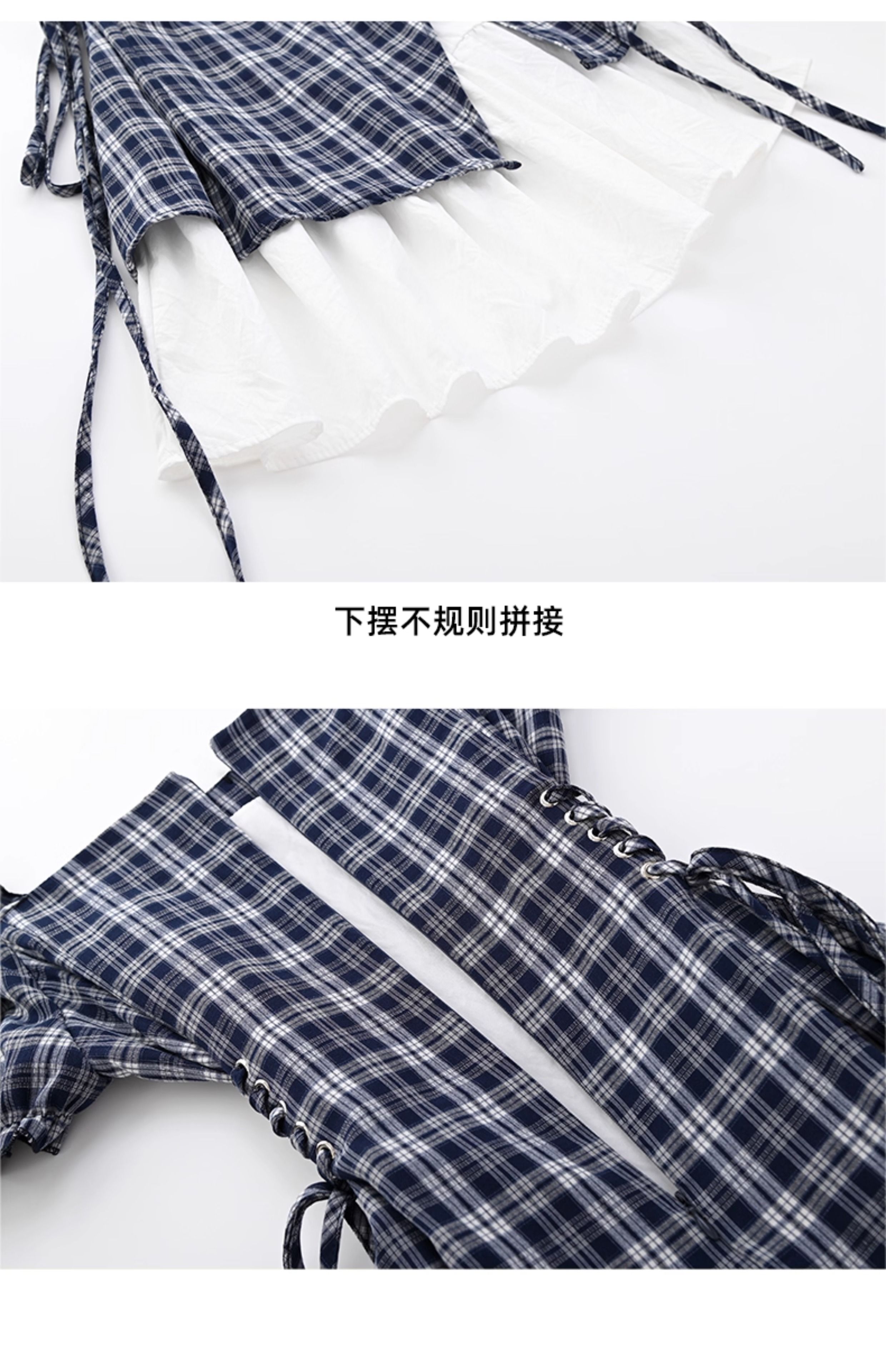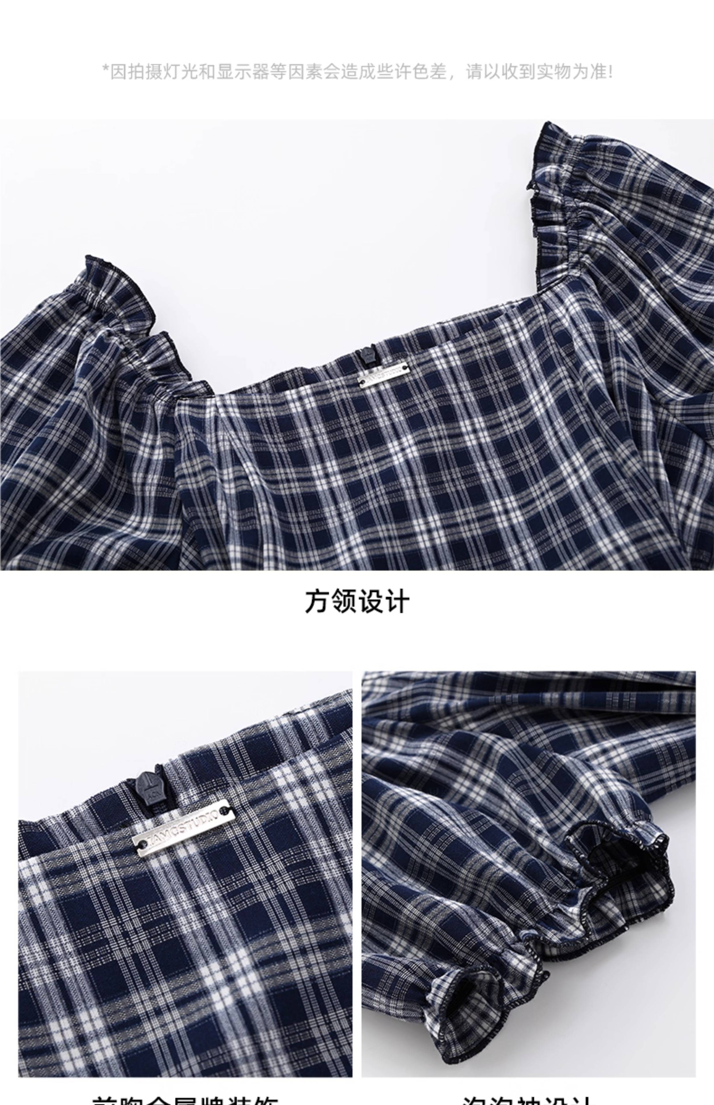 mc2女装方领腰节绑带格子拼接连衣裙夏季新款小个子时尚收腰好看