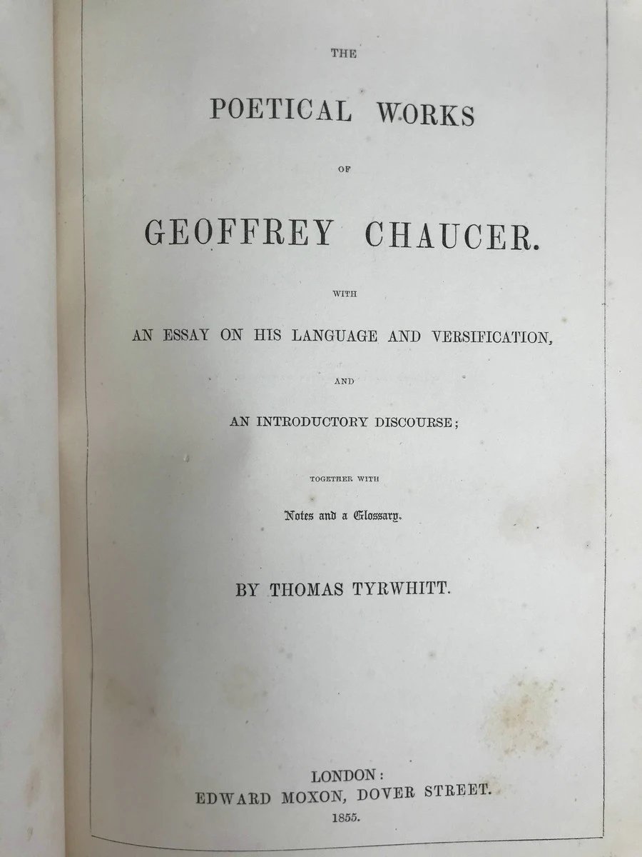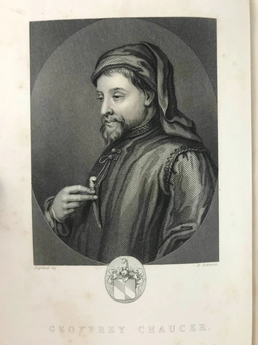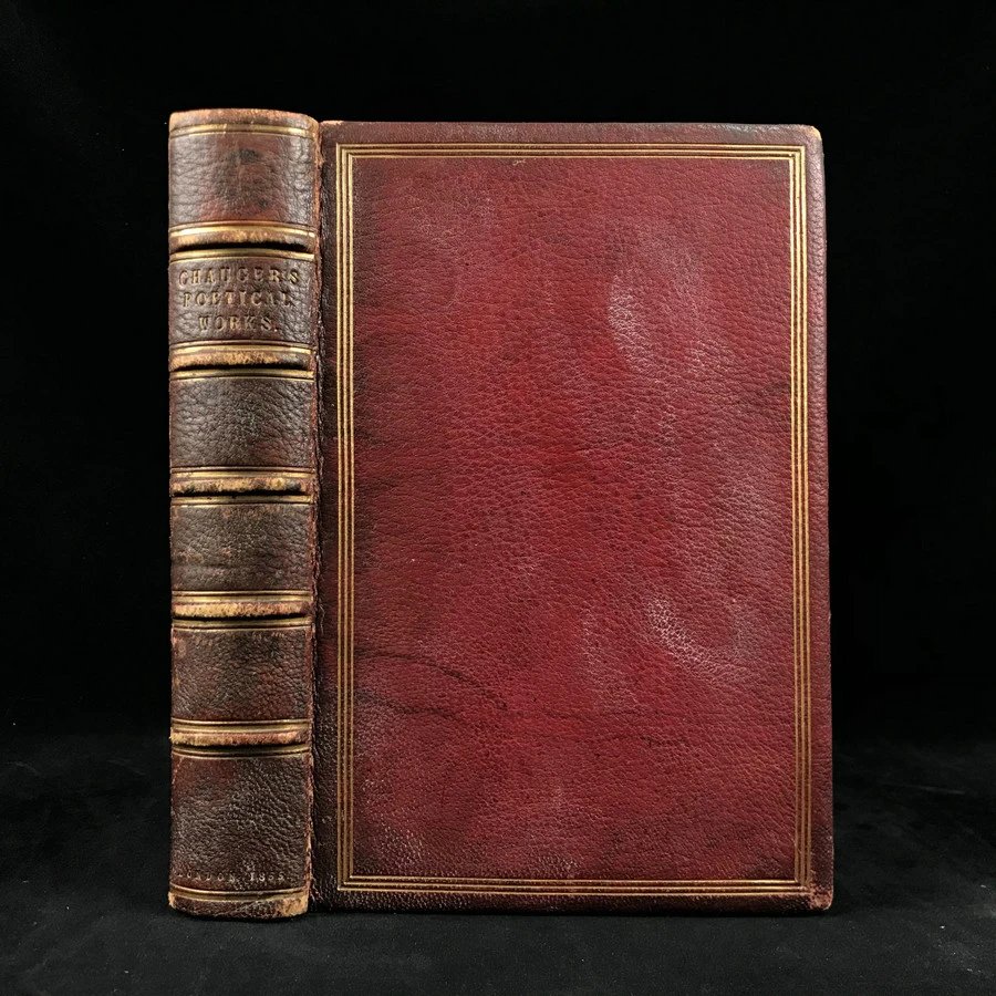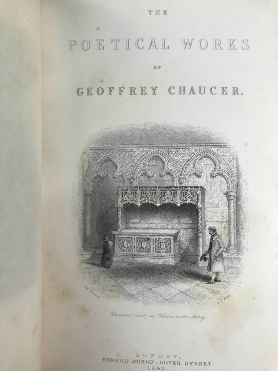含藏书票!1843年 乔叟诗集 1幅肖像插图 全真皮精装18开