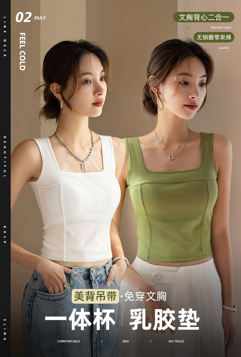 超值2件任选【透气纯棉0束缚,舒爽不粘一整夏!】U型美背文胸背心一体式吊带,免穿文胸打底抹胸,百搭背心女士内衣无钢圈无缝裹胸,文胸夏季带胸垫固定杯垫外穿,清爽不粘身ry